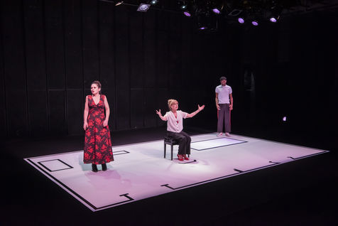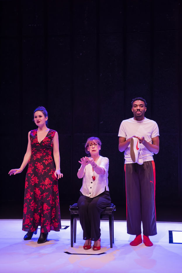 L HOMME QUI DORMAIT SOUS MON LIT text, music and directing by Pierre Notte with Muriel Gaudin, Silvie Laguna and Clyde Yeguete at the Theatre du Rond-Point in Paris. Photography by Pascal Gely / Hans Lucas