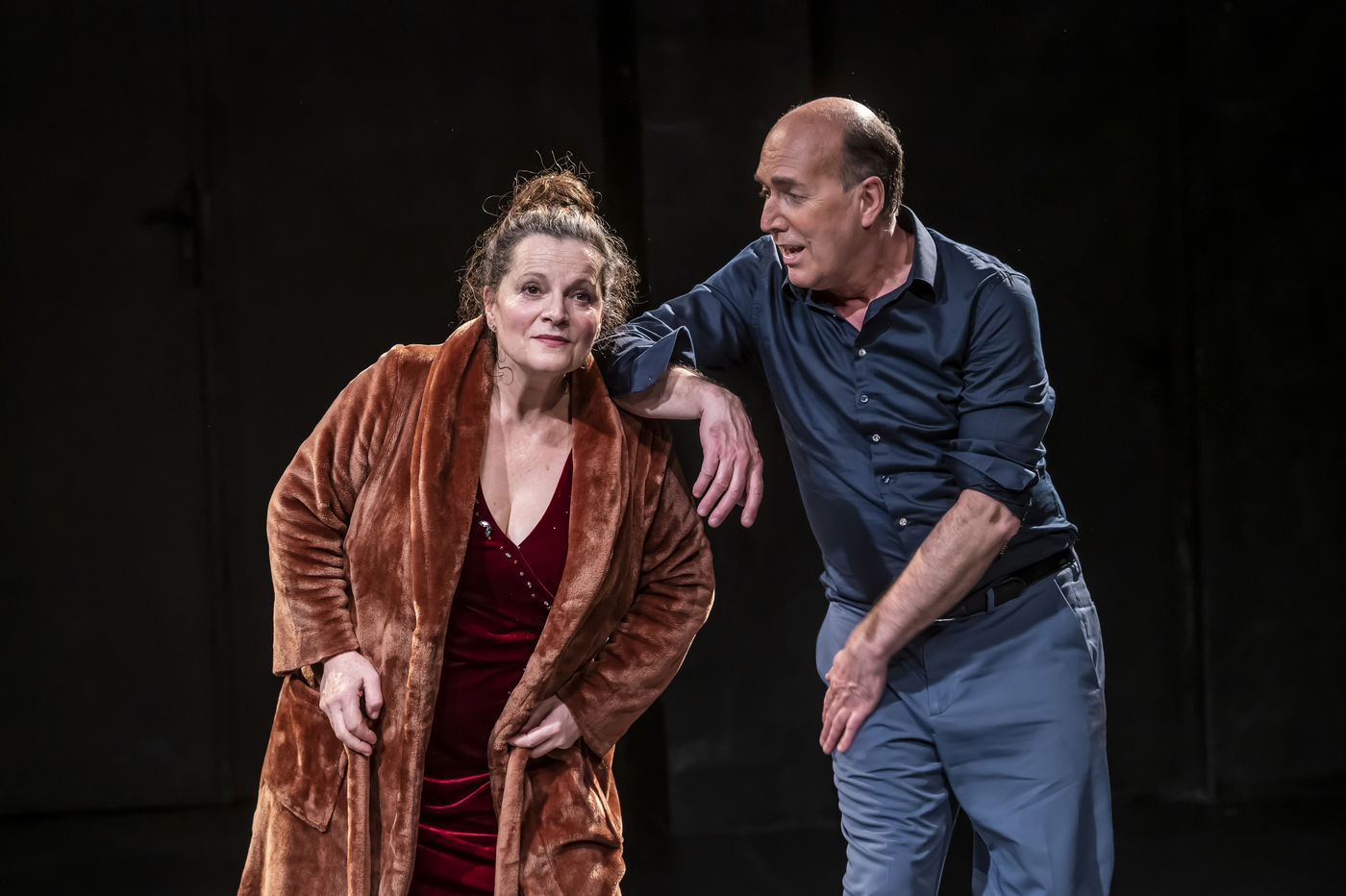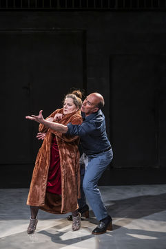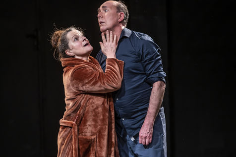PATINAGE text by Damien Dutrait directed by Nelson-Rafaell Madel with Astrid Bayiha (Glorya), Julien Masson (Micael l'Encagoule), Gilles Nicolas (le President Michel) and Emmanuelle Ramu (Mom) at the Theatre de la Tempete in Paris Photography by Pascal Gely / Hans Lucas