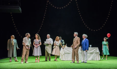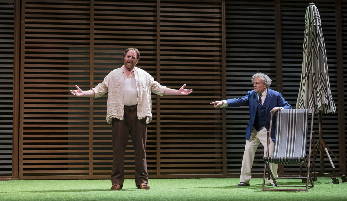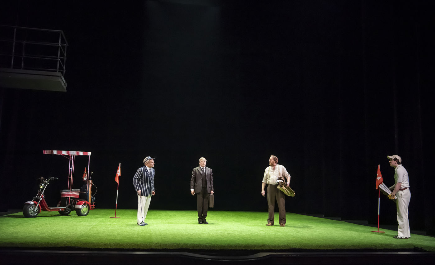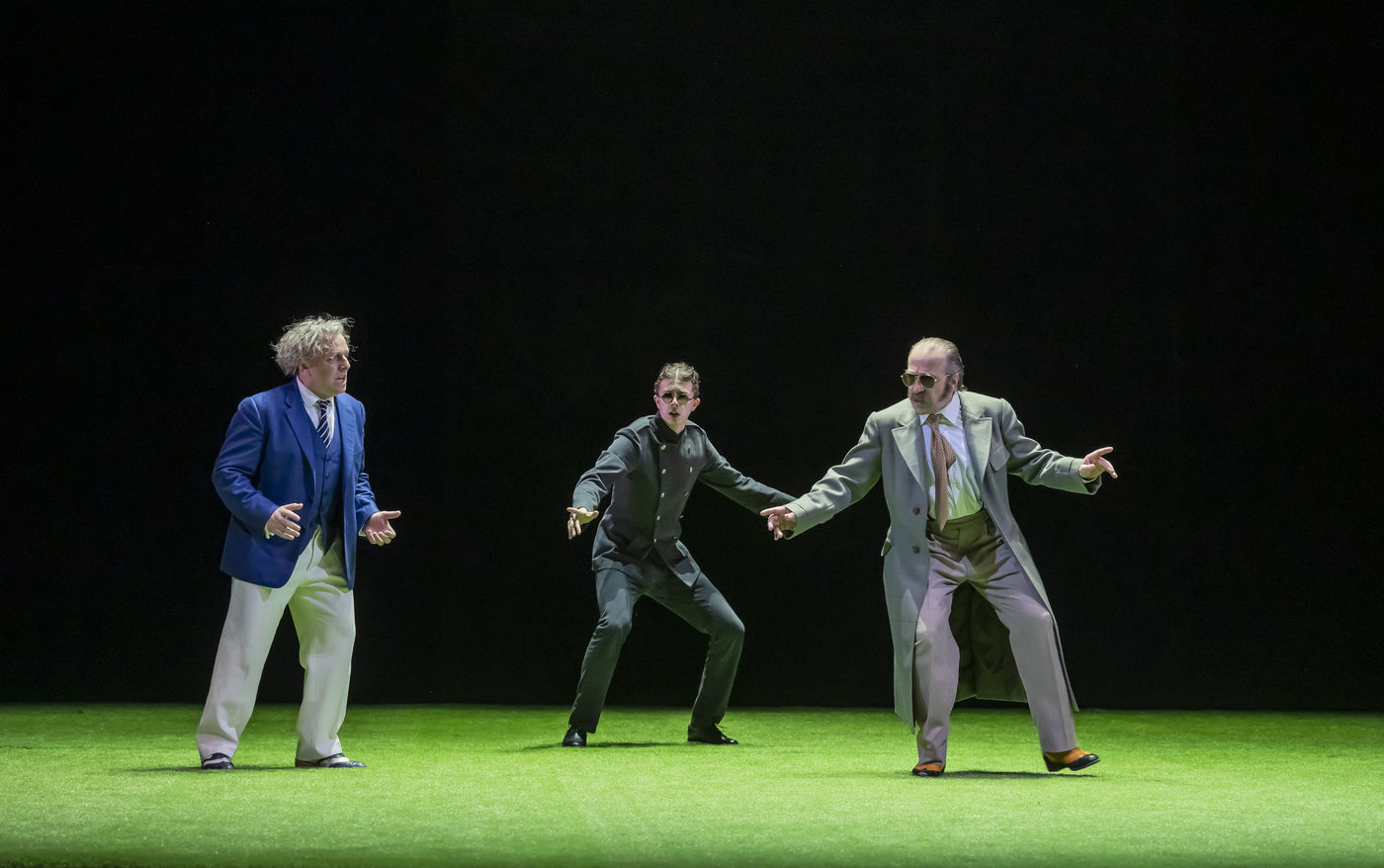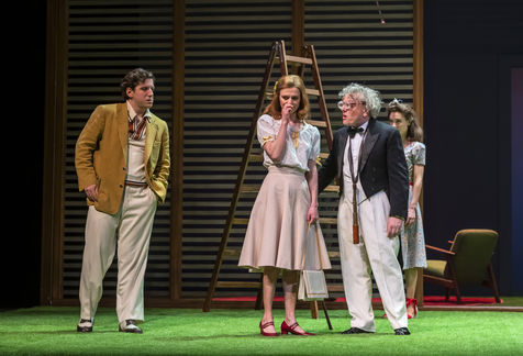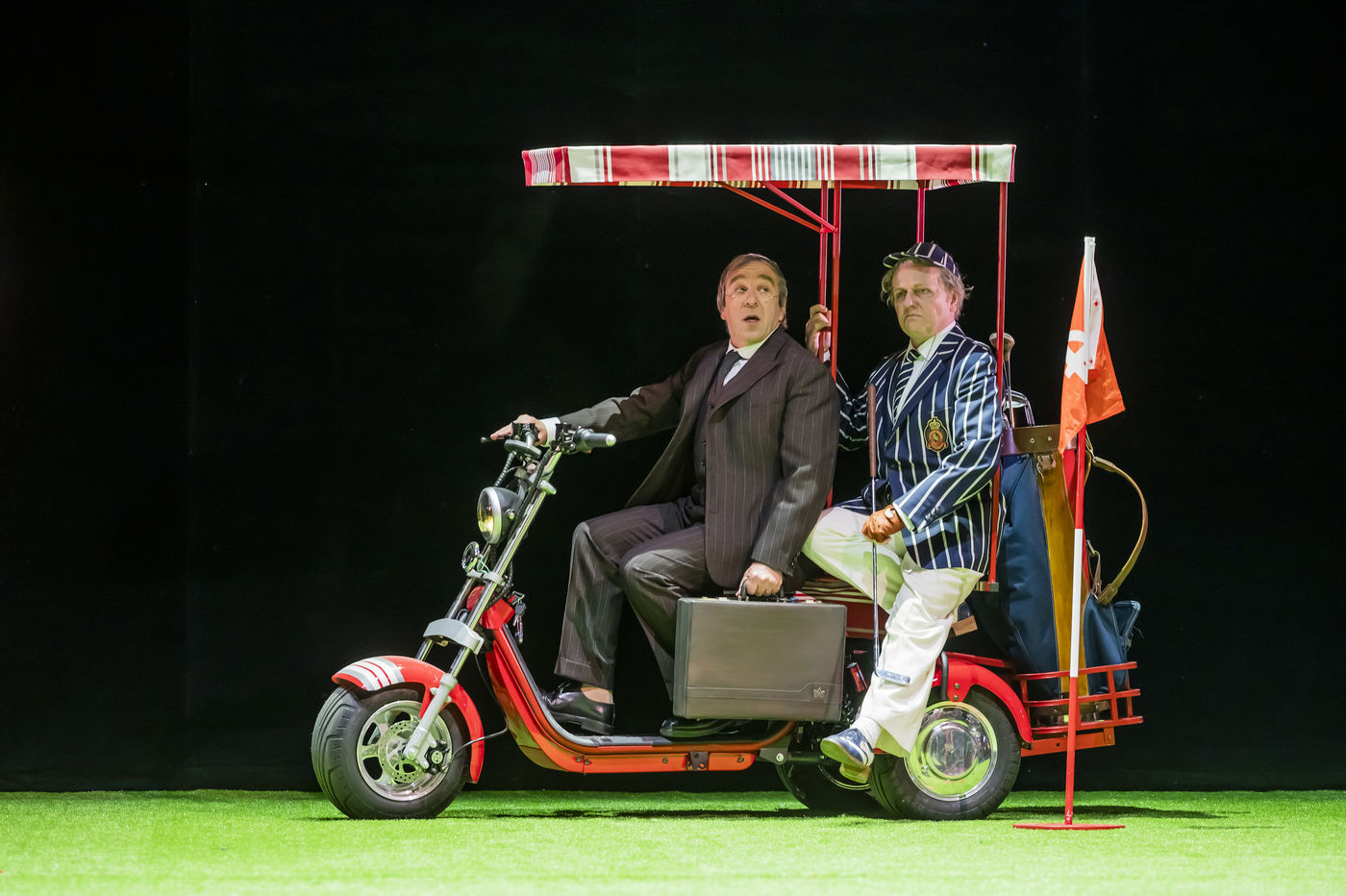 L AVARE text by Moliere directed by Lilo Baur with Alain Lenglet (Anselme), Francoise Gillard (Frosine), Jerome Pouly (La Fleche), Laurent Stocker (Harpagon), Serge Bagdassarian (Maitre Jacques), Nicolas Lormeau (Maitre Simon), Anna Cervinka (Mariane), Jean Chevalier (Cleante), Elise Lhomeau (Elise), Clement Bresson (Valere), Adrien Simion (La Merluche) and Jeremy Berthoud comedien de l academie (Brindavoine) at the Comedie Francaise. Photograph by Pascal Gely / Hans Lucas