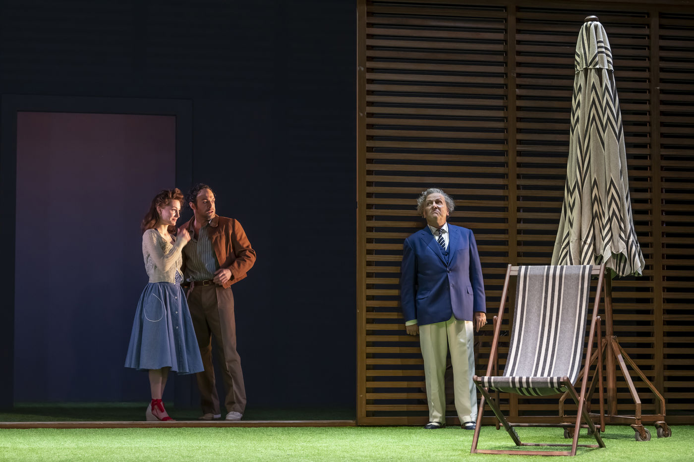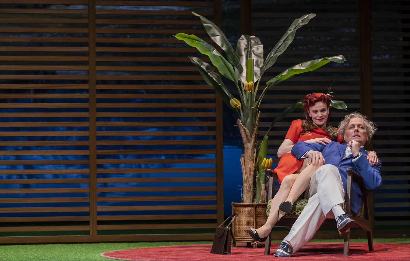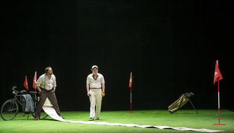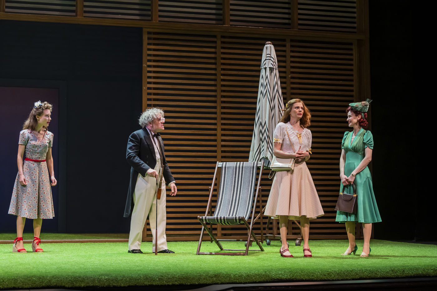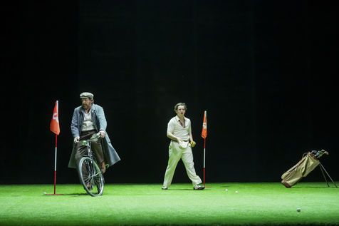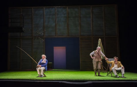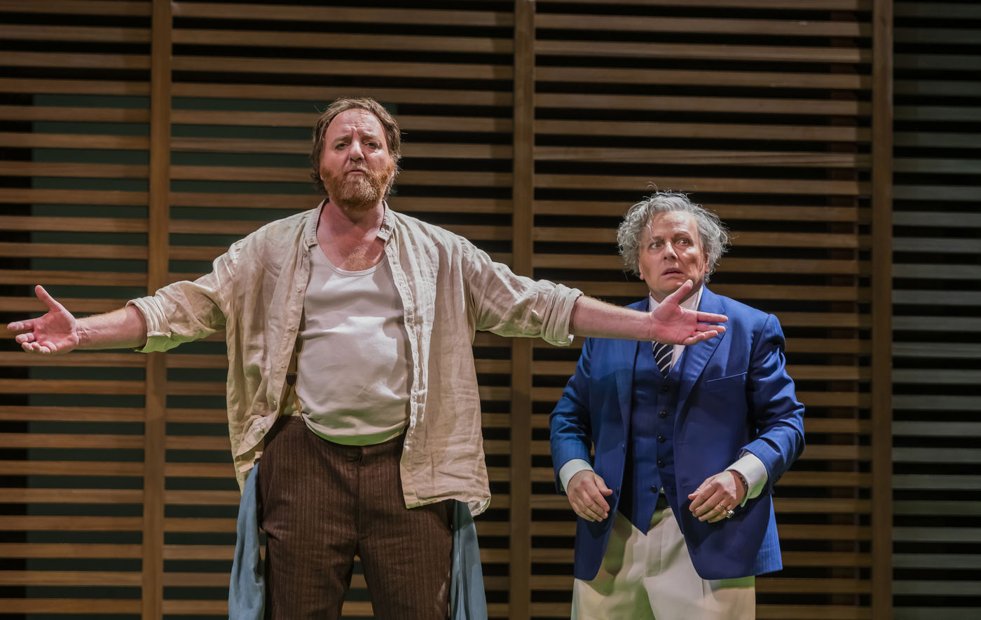 L AVARE text by Moliere directed by Lilo Baur with Alain Lenglet (Anselme), Francoise Gillard (Frosine), Jerome Pouly (La Fleche), Laurent Stocker (Harpagon), Serge Bagdassarian (Maitre Jacques), Nicolas Lormeau (Maitre Simon), Anna Cervinka (Mariane), Jean Chevalier (Cleante), Elise Lhomeau (Elise), Clement Bresson (Valere), Adrien Simion (La Merluche) and Jeremy Berthoud comedien de l academie (Brindavoine) at the Comedie Francaise. Photograph by Pascal Gely / Hans Lucas
