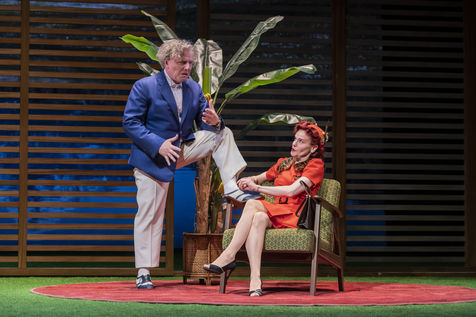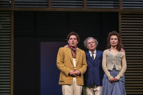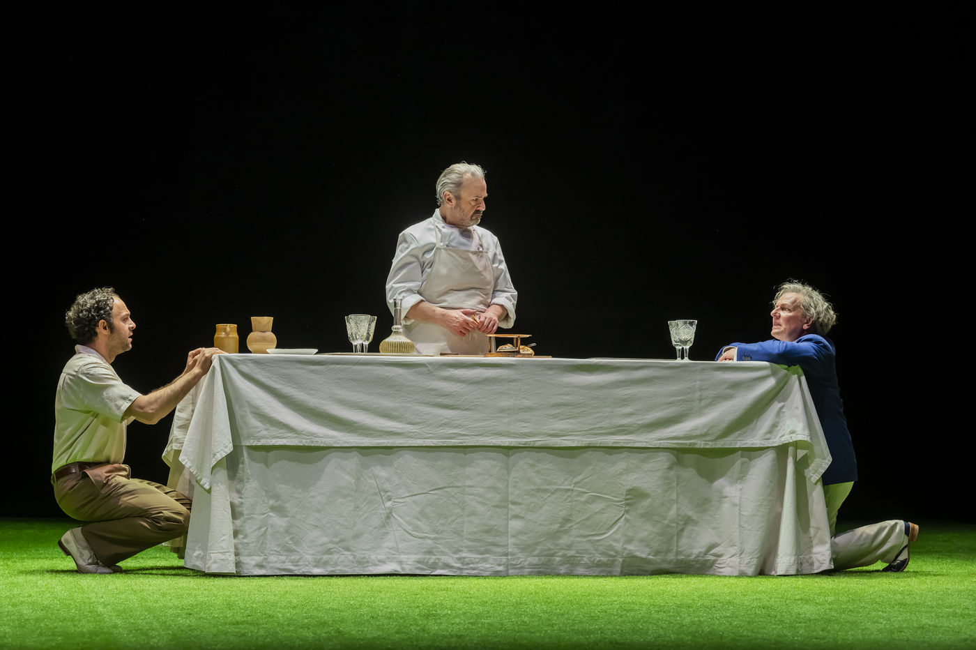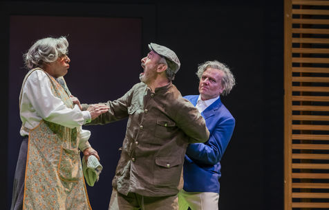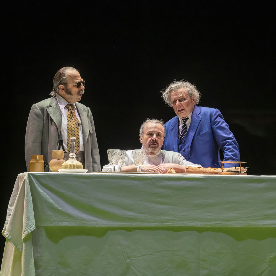 L AVARE texte de Moliere mise en scene de Lilo Baur avec Alain Lenglet (Anselme), Francoise Gillard (Frosine), Jerome Pouly (La Fleche), Laurent Stocker (Harpagon), Serge Bagdassarian (Maitre Jacques), Nicolas Lormeau (Maitre Simon), Anna Cervinka (Mariane), Jean Chevalier (Cleante), Elise Lhomeau (Elise), Clement Bresson (Valere), Adrien Simion (La Merluche) et Jeremy Berthoud comedien de l academie (Brindavoine) a la Comedie Francaise. Photographie de Pascal Gely / Hans Lucas