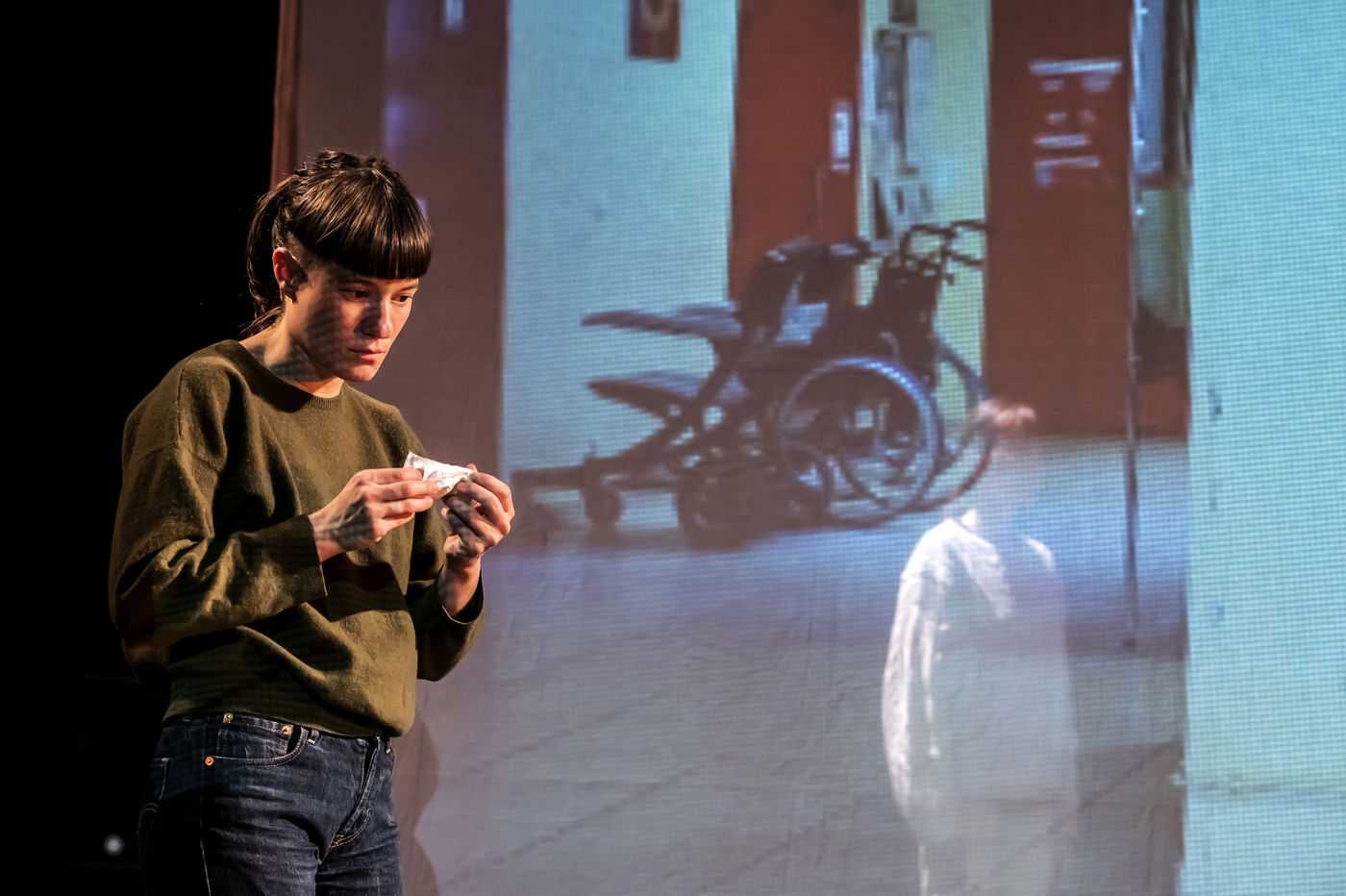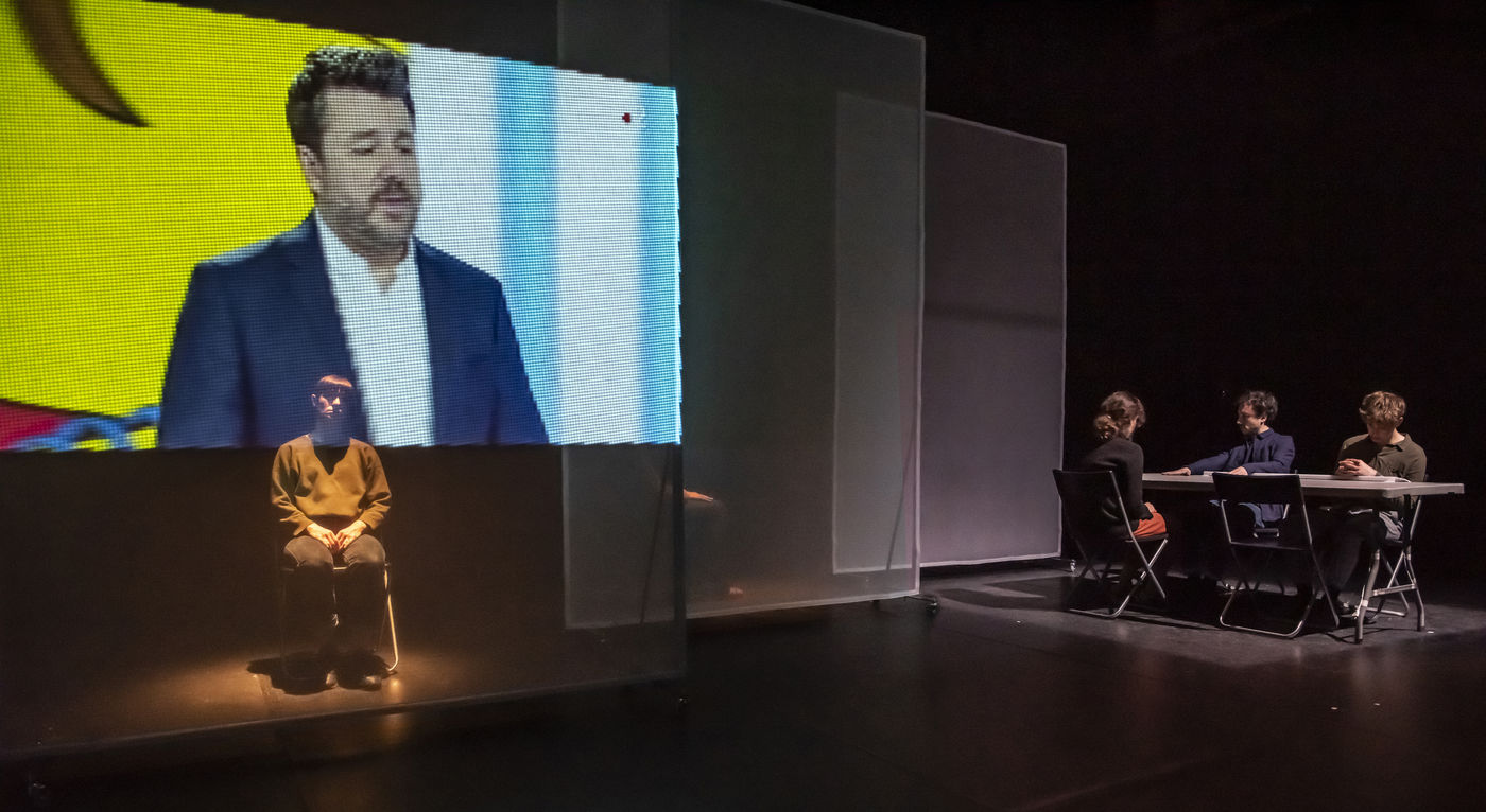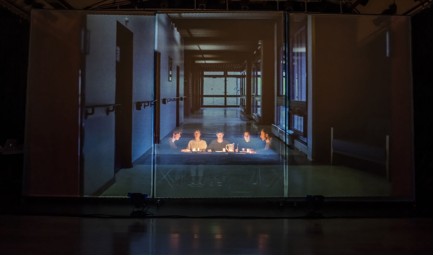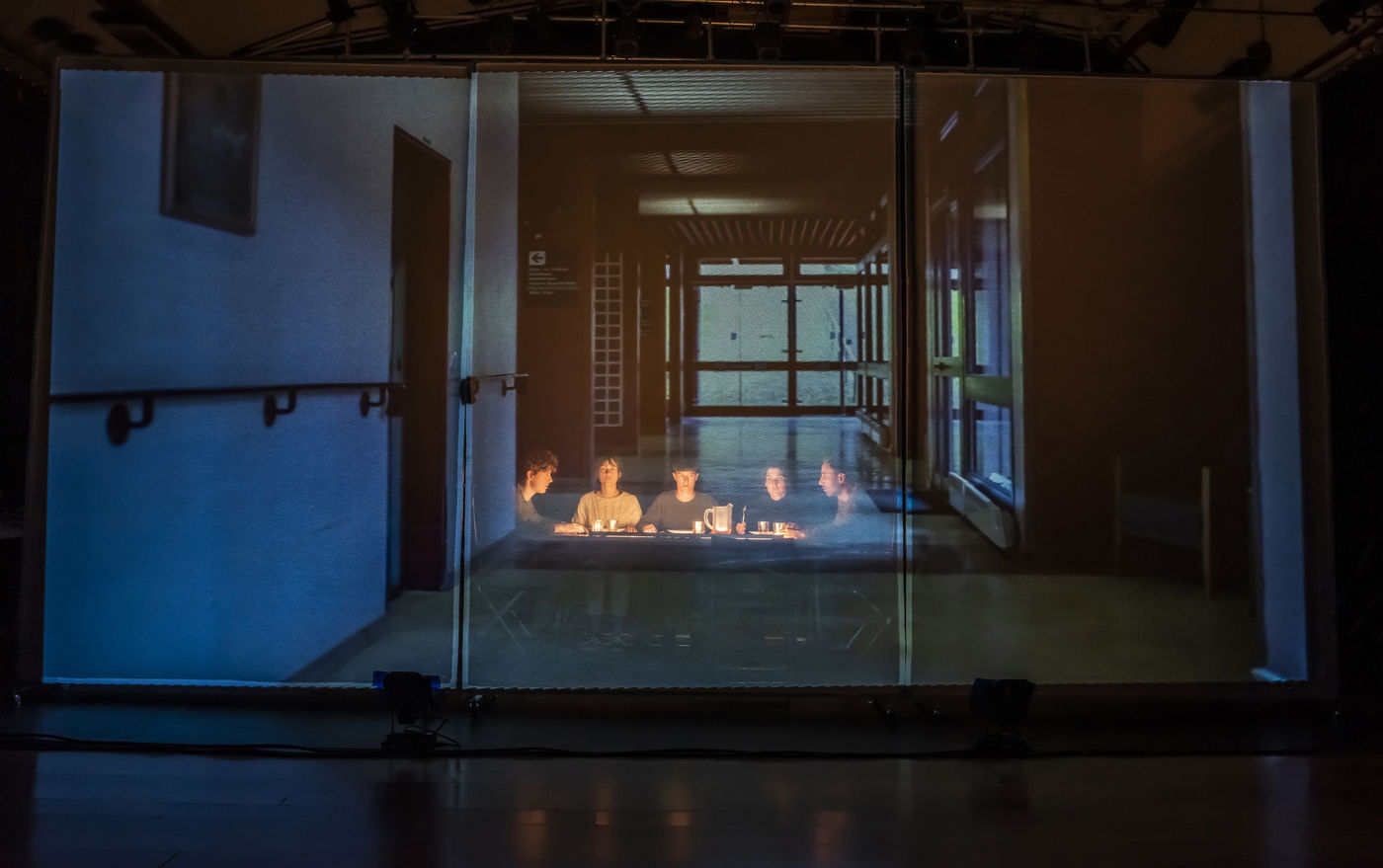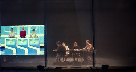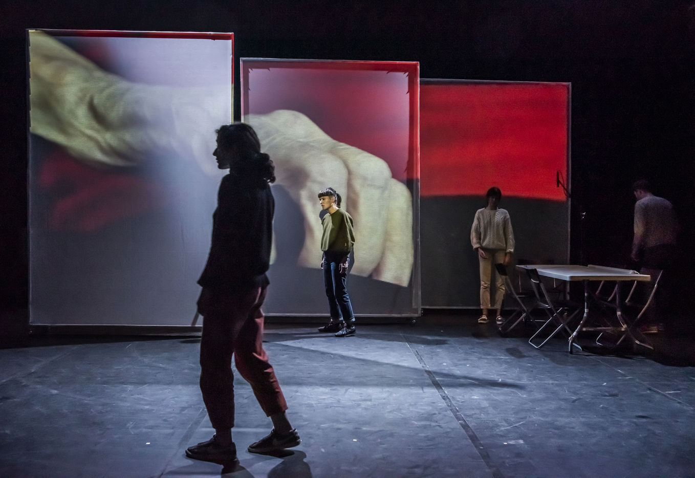 PROJET V A creation by the Diptyque Collectif with Anna Agostini, Tessa Bazin, Caroline Cristofili, Maxime Denis, Ines Fakhet and Louis Vasquez at the Nouveau Gare au Theatre. Photograph by Pascal Gely / Hans Lucas