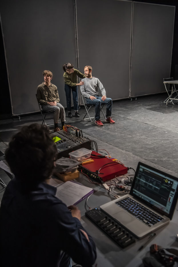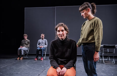 PROJET V Une creation du Diptyque Collectif avec Anna Agostini, Tessa Bazin, Caroline Cristofili, Maxime Denis, Ines Fakhet et Louis Vasquez au Nouveau Gare au Theatre. Photographie de Pascal Gely / Hans Lucas