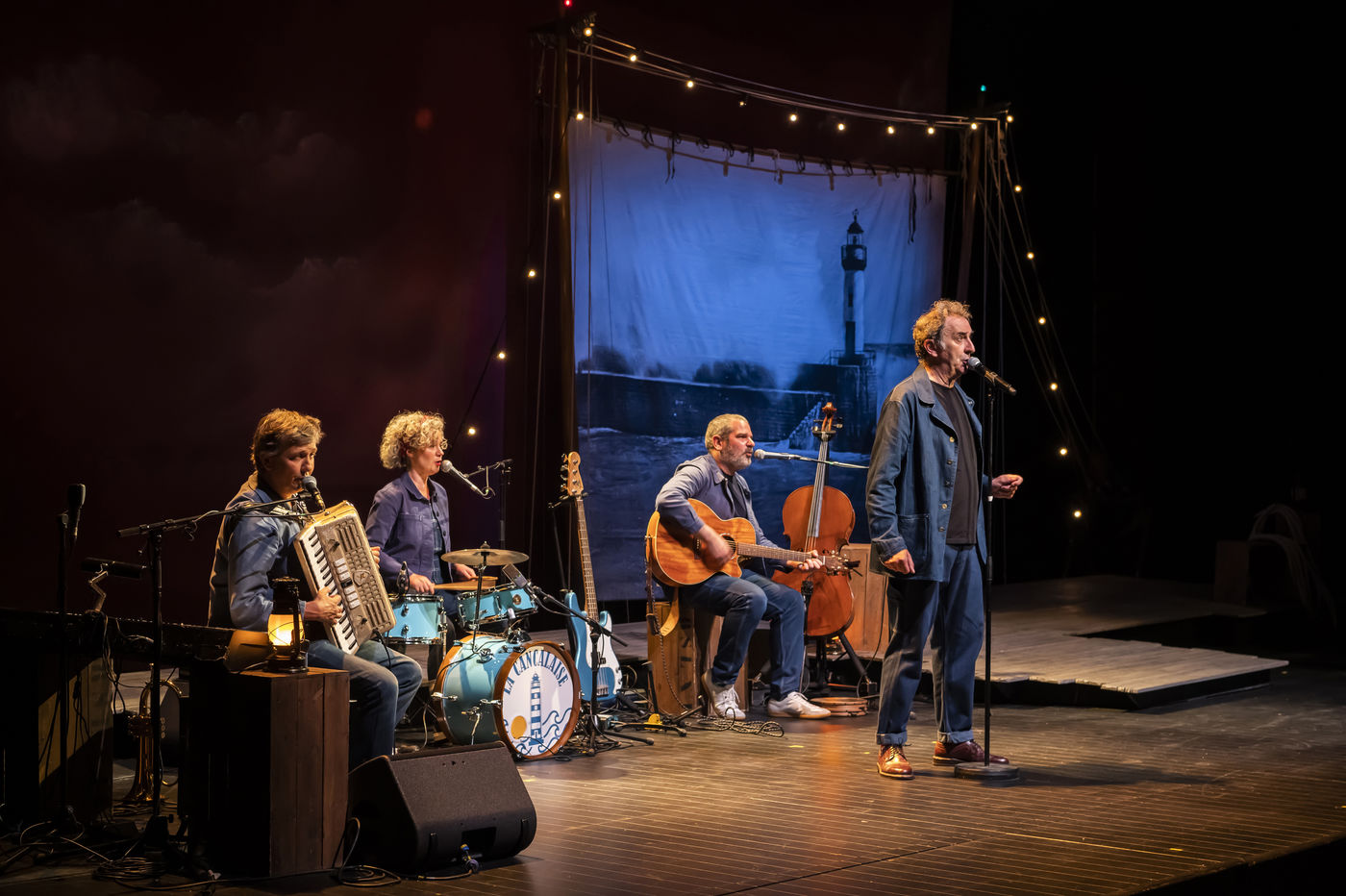 TOUS LES MARINS SONT DES CHANTEURS chansons de Yves-Marie Le Guilvinec avec Francois Morel, Muriel Gastebois, Gerard Mordillat, Antoine Sahler et Romain Lemire au Theatre du Rond-Point. Photographie de Pascal Gely / Hans Lucas
