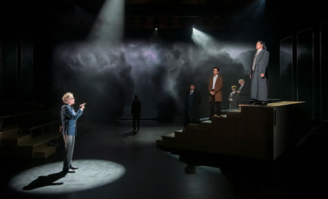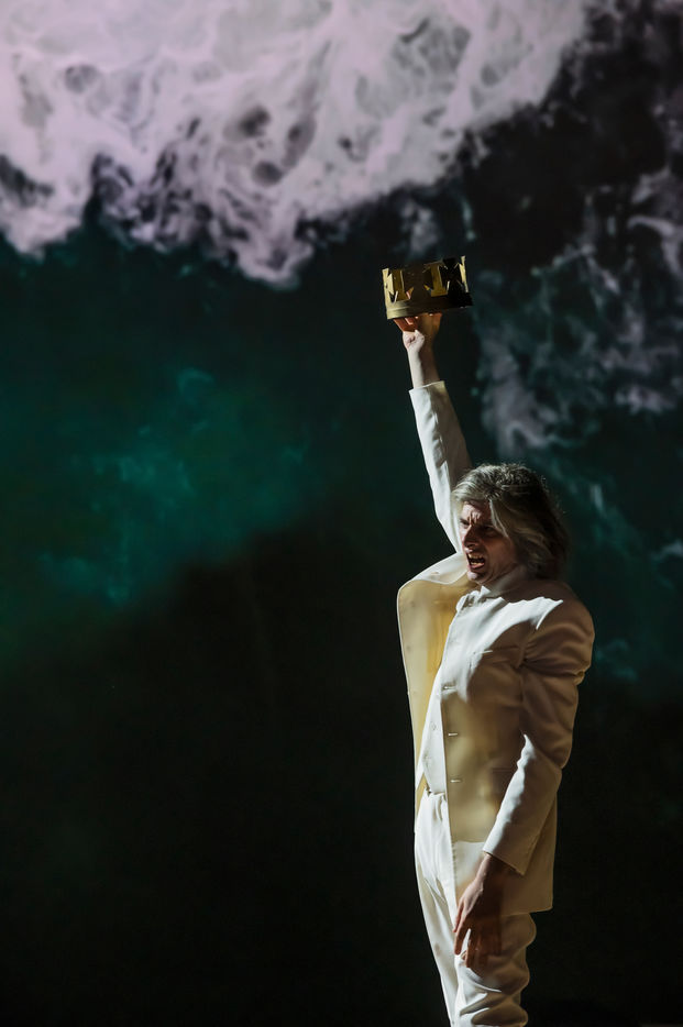 RICHARD II texte de William Shakespeare mise en scene de Christophe Rauck avec Micha Lescot (Richard II), Louis Albertosi, Thierry Bosc (Jean de Gand, York), Eric Challier (Bolingbroke), Murielle Colvez, Cecile Garcia Fogel (La Reine), Pierre-Thomas Jourdan, Guillaume Leveque, Emmanuel Noblet (Aumerle), Pierre-Henri Puente et Adrien Rouyard au Gymnase Aubanel Festival d Avignon 2022. Photographie de Pascal Gely / Hans Lucas