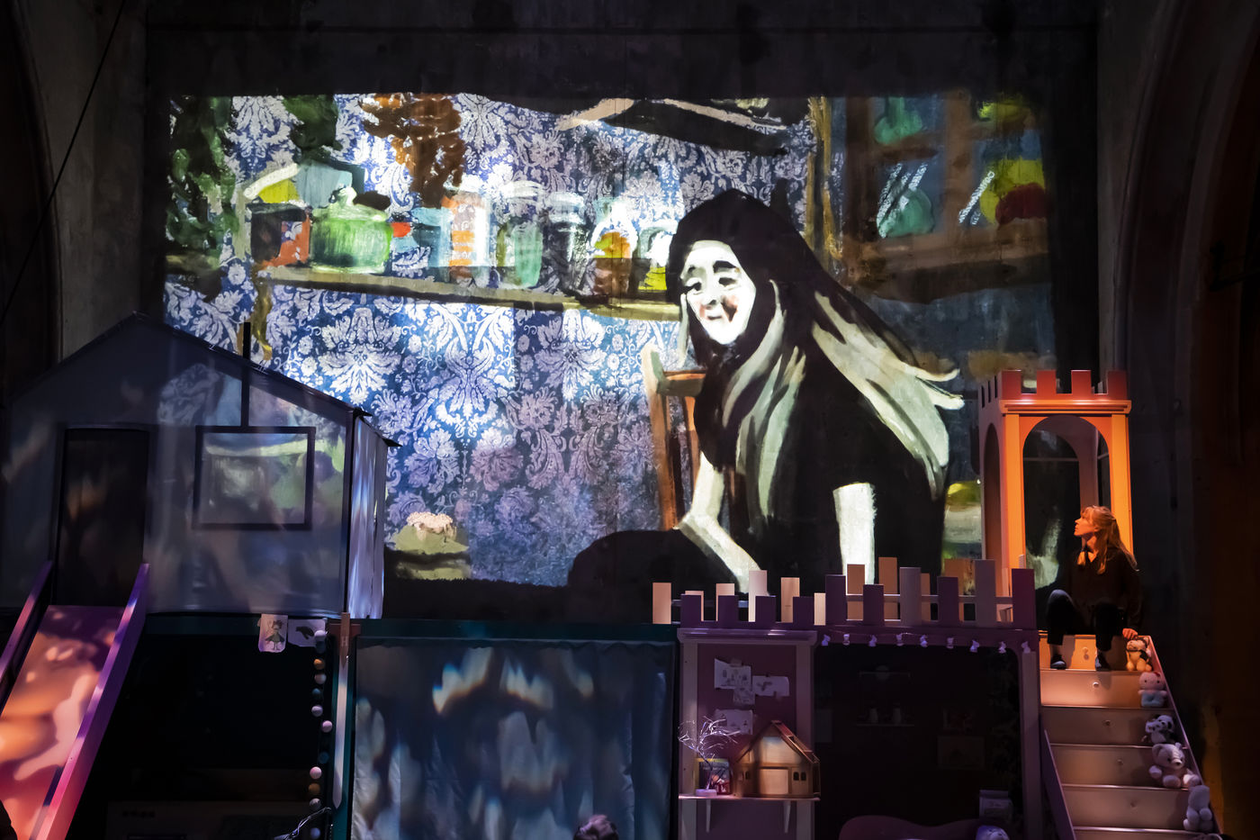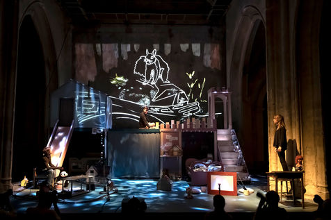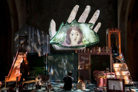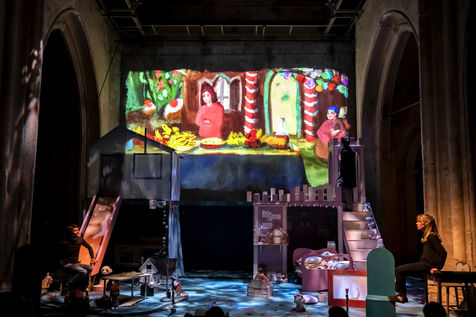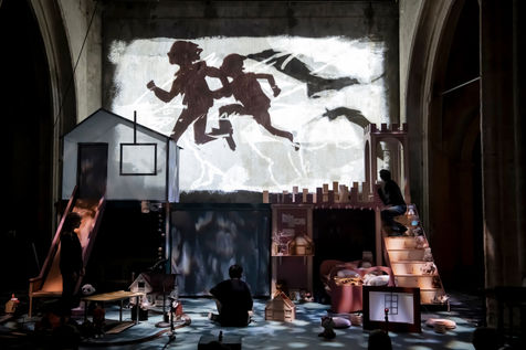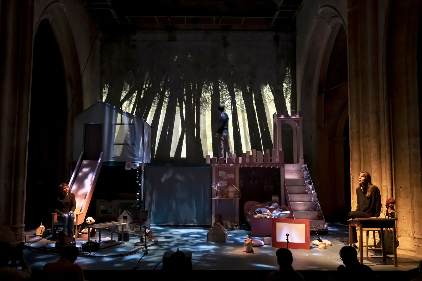 GRETEL HANSEL ET LES AUTRES text and directed by Igor Mendjisky with Sylvain Debry, Igor Mendjisky and Esther Van Den Driessche at the chapelle des Penitents Blancs Avignon Festival d Avignon 2022. Photographie de Pascal Gely / Hans Lucas