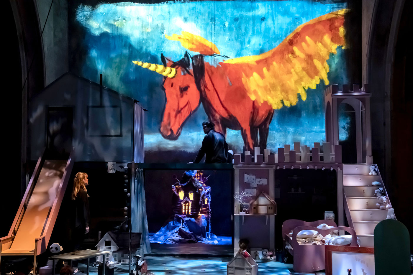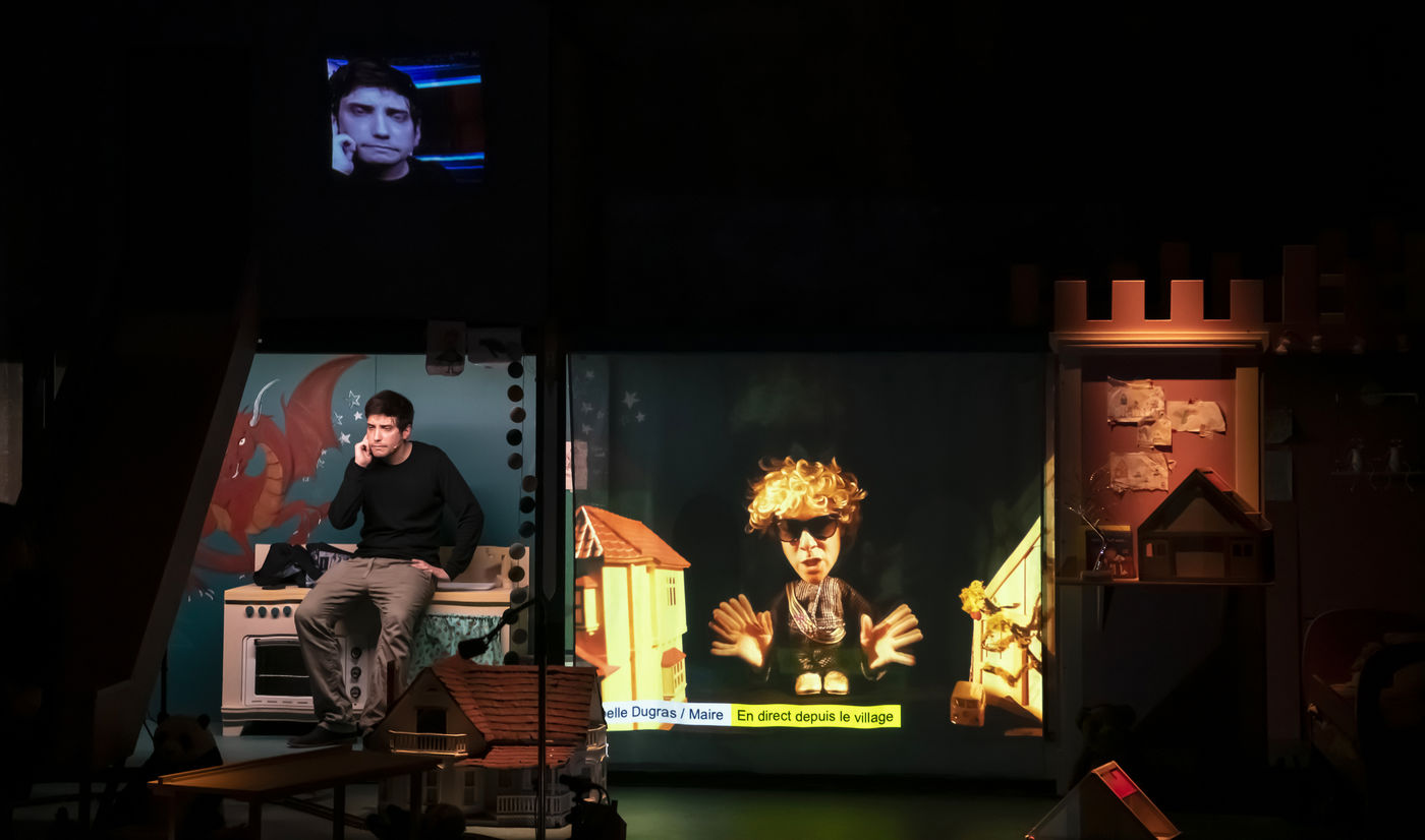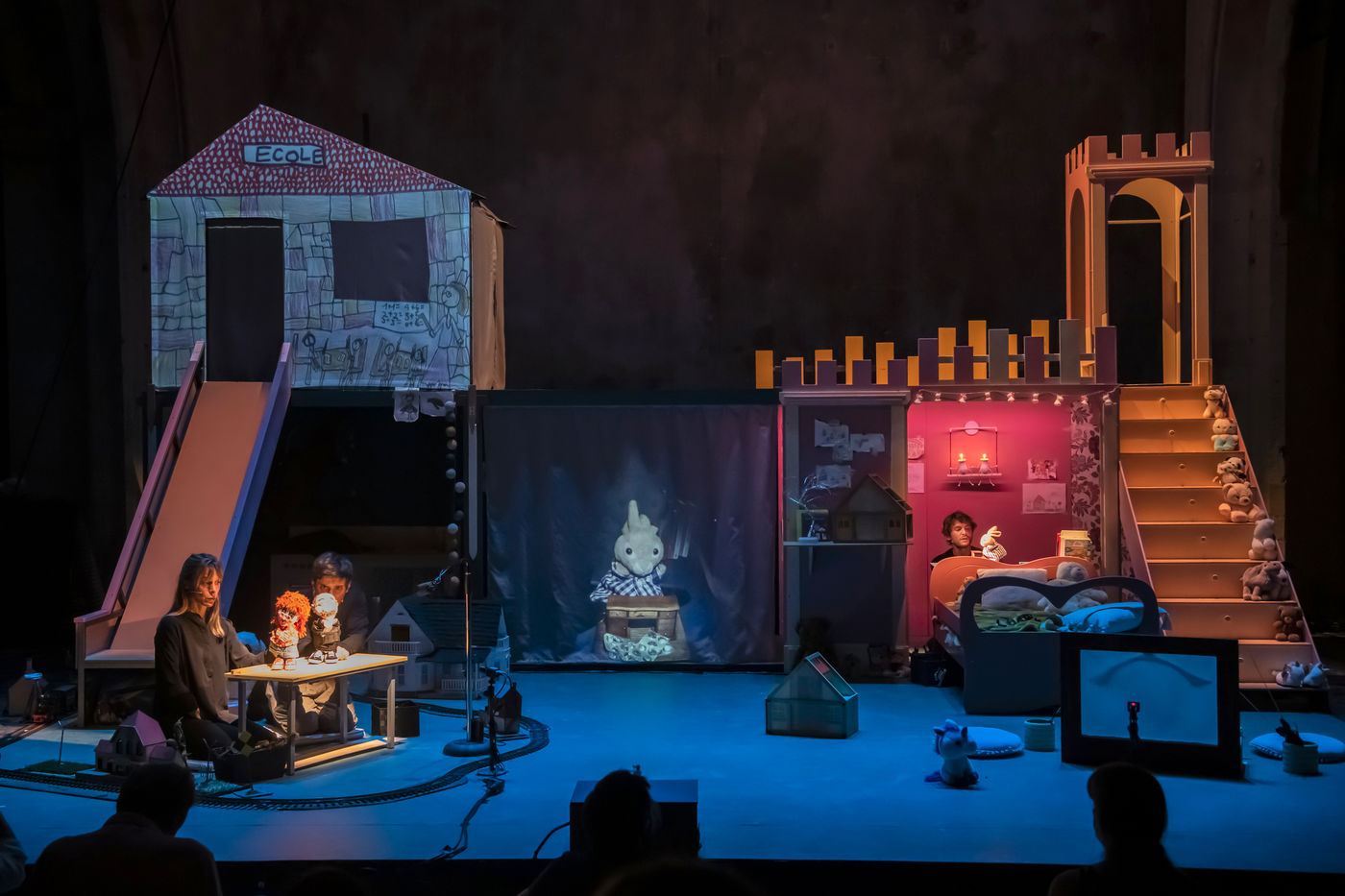 GRETEL HANSEL ET LES AUTRES text and directed by Igor Mendjisky with Sylvain Debry, Igor Mendjisky and Esther Van Den Driessche at the chapelle des Penitents Blancs Avignon Festival d Avignon 2022. Photograph by Pascal Gely / Hans Lucas