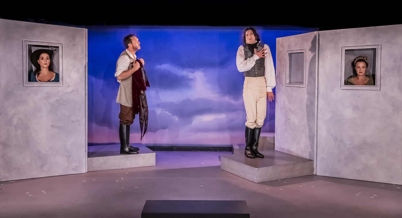 LE MENTEUR texte de Corneille adaptation et mise en scene de Marion Bierry avec Alexandre Bierry, Benjamin Boyer, Brice Hillairet, Anne-Sophie Nallino, Serge Noel et Mathilde Rieyau Theatre de Poche-Montparnasse. Photographie de Pascal Gely / Hans Lucas