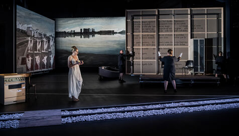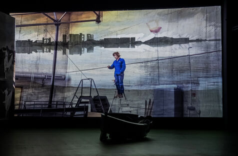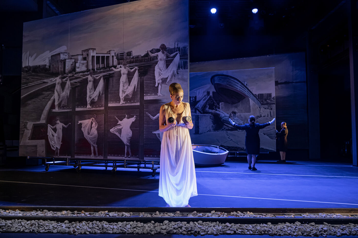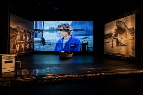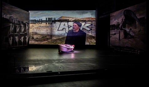 RIVAGE A L ABANDON / MEDEE-MATERIAU / PAYSAGE AVEC ARGONAUTES Text by Heiner Muller Directed by Matthias Langhoff decor and painting by Catherine Rankl with Marcial Di Fonzo Bo, Frederique Lolie, Laura Lemaitre and Claudio Codemo at the Comedie de Caen. Photograph by Pascal Gely / Hans Lucas