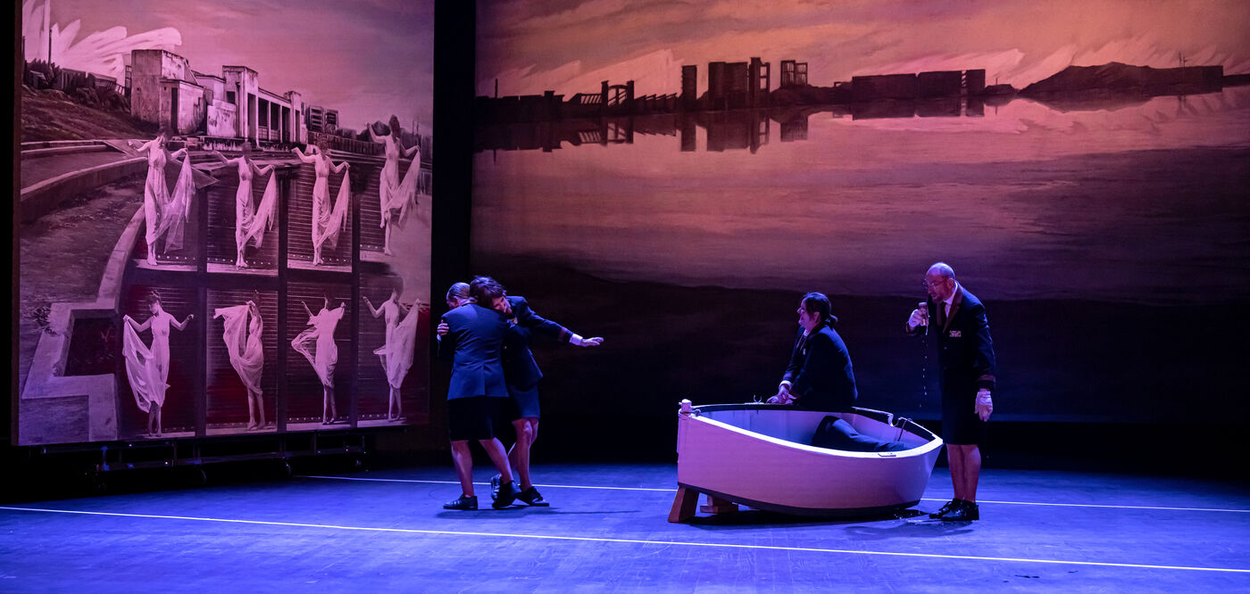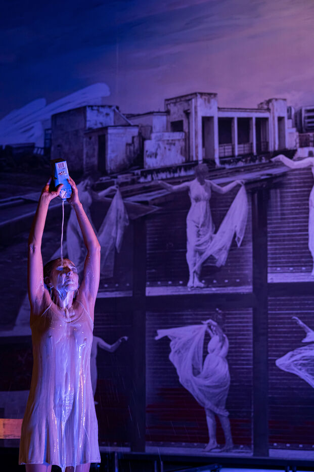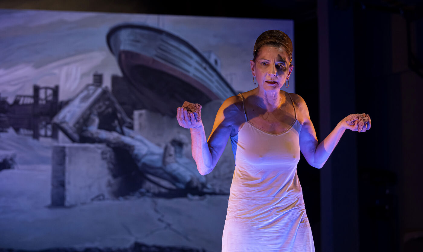 RIVAGE A L ABANDON / MEDEE-MATERIAU / PAYSAGE AVEC ARGONAUTES Texte de Heiner Muller Mise en scene de Matthias Langhoff Decor et peinture de Catherine Rankl avec Marcial Di Fonzo Bo, Frederique Lolie, Laura Lemaitre et Claudio Codemo a la Comedie de Caen. Photographie de Pascal Gely / Hans Lucas