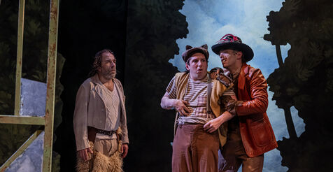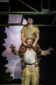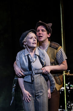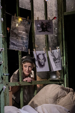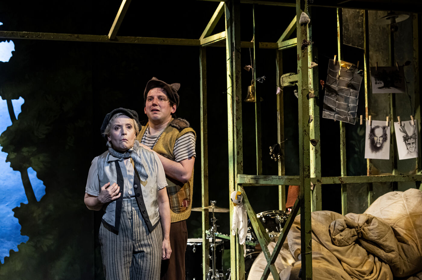 LE CHIEN - LES CONTES DU CHAT PERCHE Texte de Marcel Ayme Mise en scene de Raphaelle Saudinos et Veronique Vella avec Veronique Vella (la souris), Thierry Hancisse (le pere), Sylvia Berge (la mere), Florence Viala (Delphine), Elsa Lepoivre (Marinette), Nicolas Lormeau (le chien), Yoann Gasiorowski (le maitre et le musicien) et Jean Chevalier (le chat) au Studio-Theatre de la Comedie Francaise. Photographie de Pascal Gely / Hans Lucas