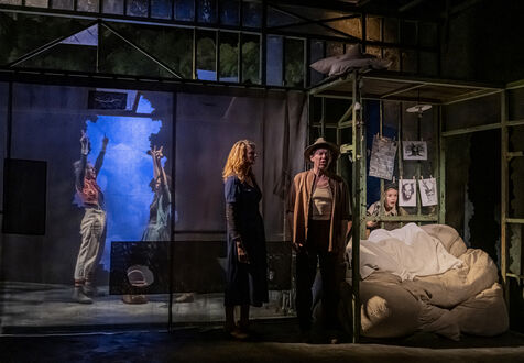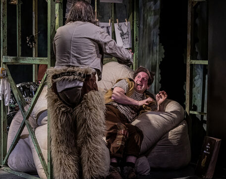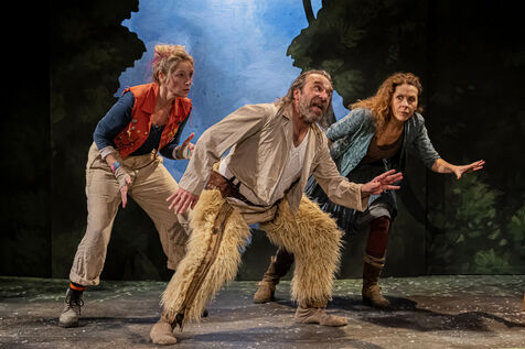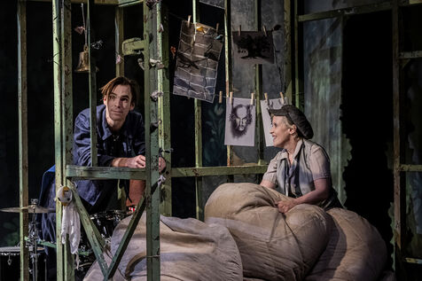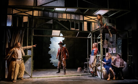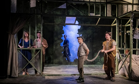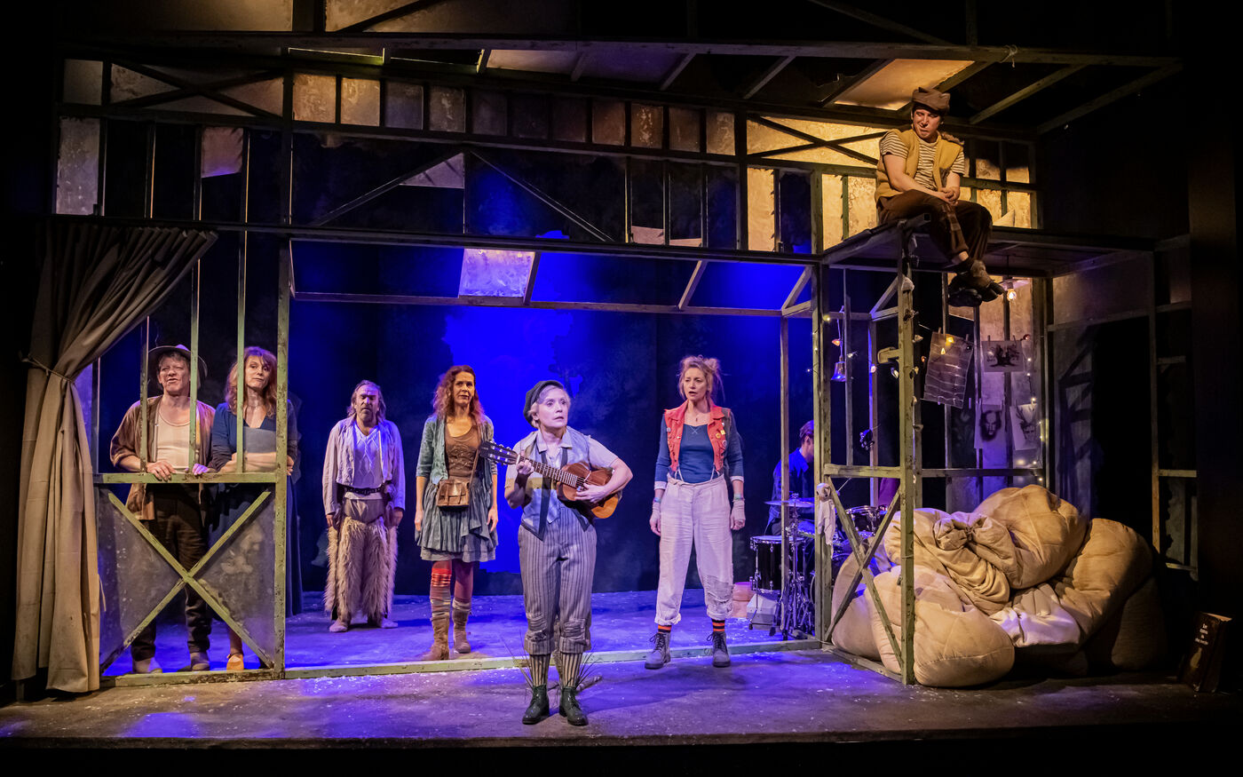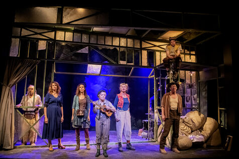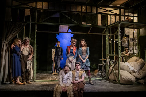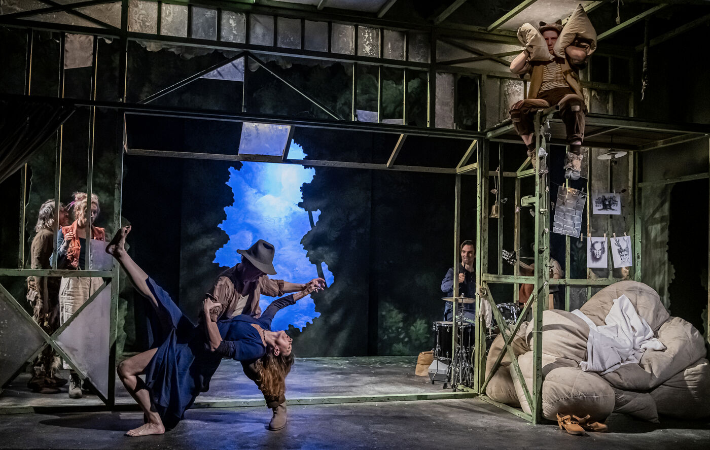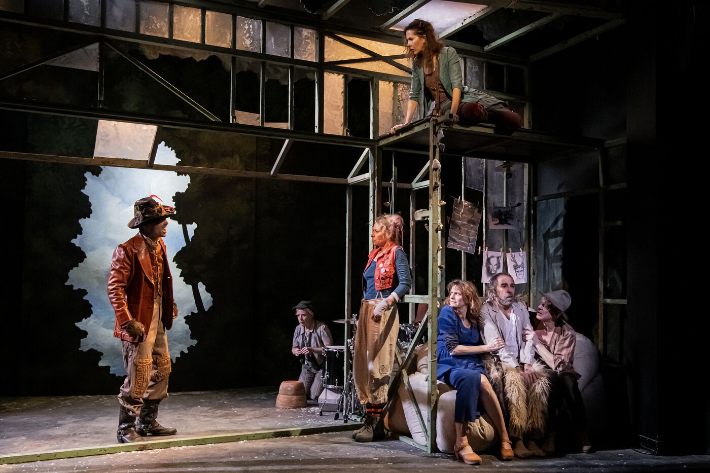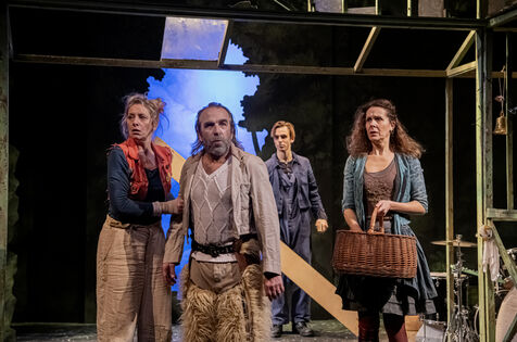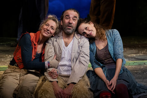 LE CHIEN - LES CONTES DU CHAT PERCHE Text by Marcel Ayme Directed by Raphaelle Saudinos and Veronique Vella with Veronique Vella (la souris), Thierry Hancisse (le pere), Sylvia Berge (la mere), Florence Viala (Delphine), Elsa Lepoivre (Marinette), Nicolas Lormeau (le chien), Yoann Gasiorowski (le maitre et le musicien) and Jean Chevalier (le chat) at the Studio-Theatre de la Comedie Francaise. Photograph by Pascal Gely / Hans Lucas