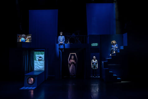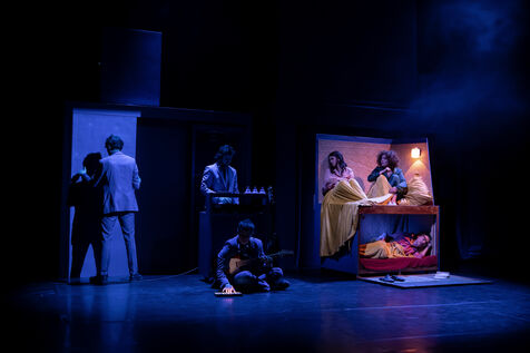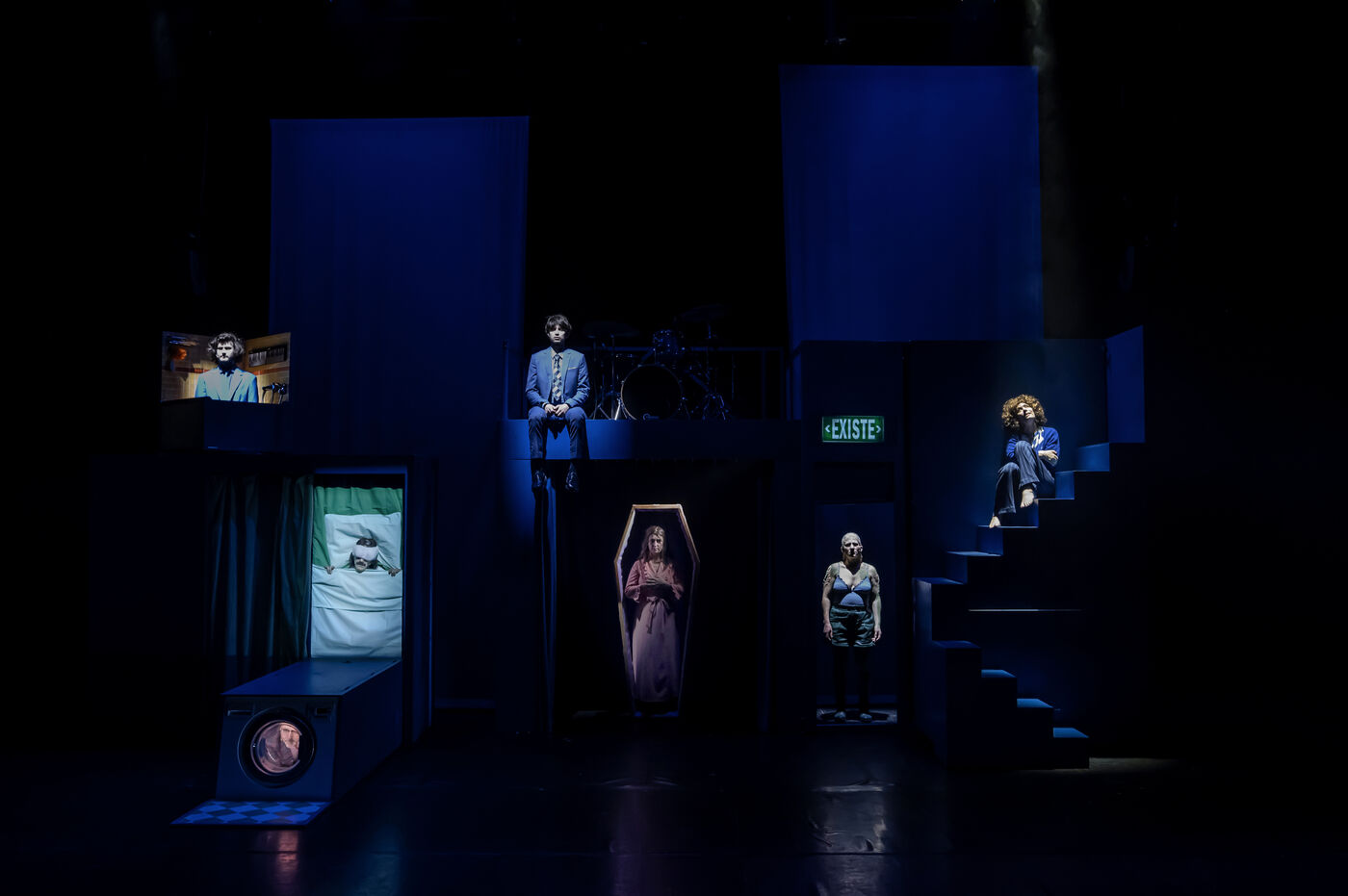 HAPPY APOCALYPSE Creation de la compagnie FOUIC Mise en scene de Clotilde Morgieve et Jean-Christophe Dolle avec Sol Espeche, Yann de Monterno, Geraldine Roguez, Clotilde Morgieve et Jean-Christophe Dolle Musique de Noe Dolle, Laurent Guillet et Pierre Martin-Danos Scenographie et costumes de Marie Herve Lumieres de Simon Demeslay Son de Georges Hubert au Theatre Antoine Watteau. Photographie de Pascal Gely / Hans Lucas