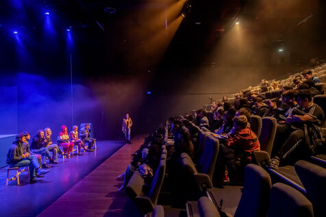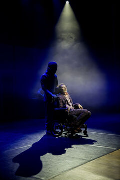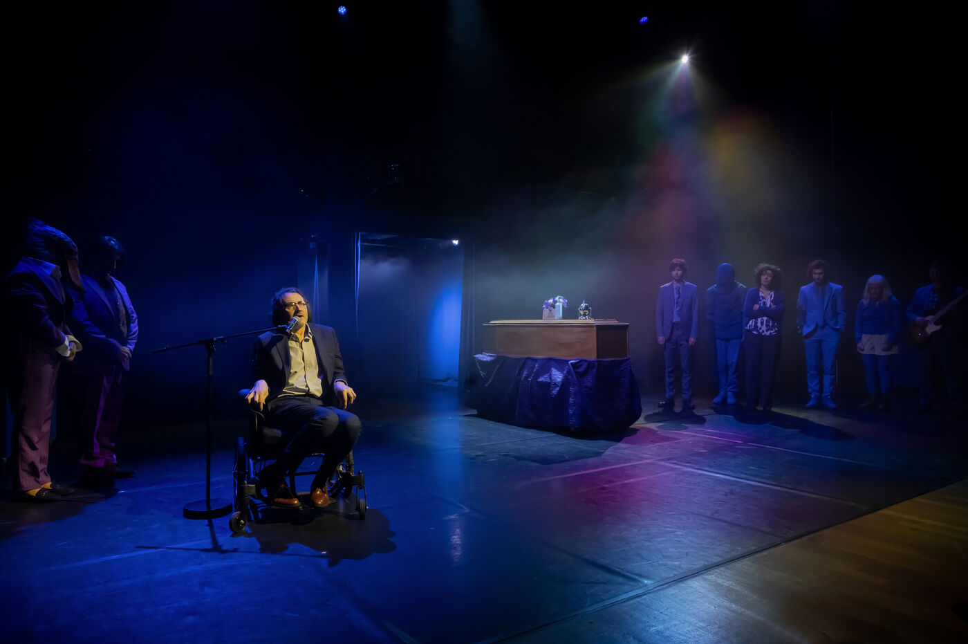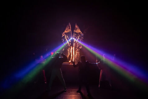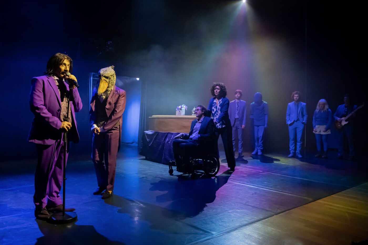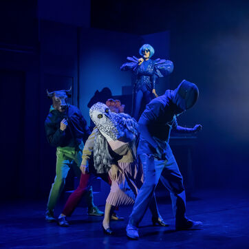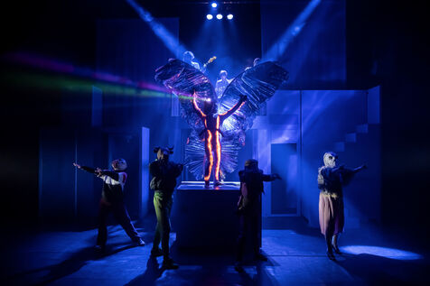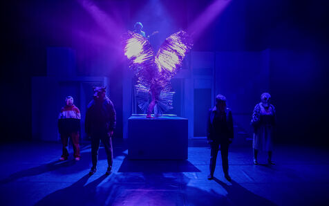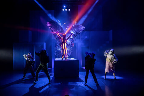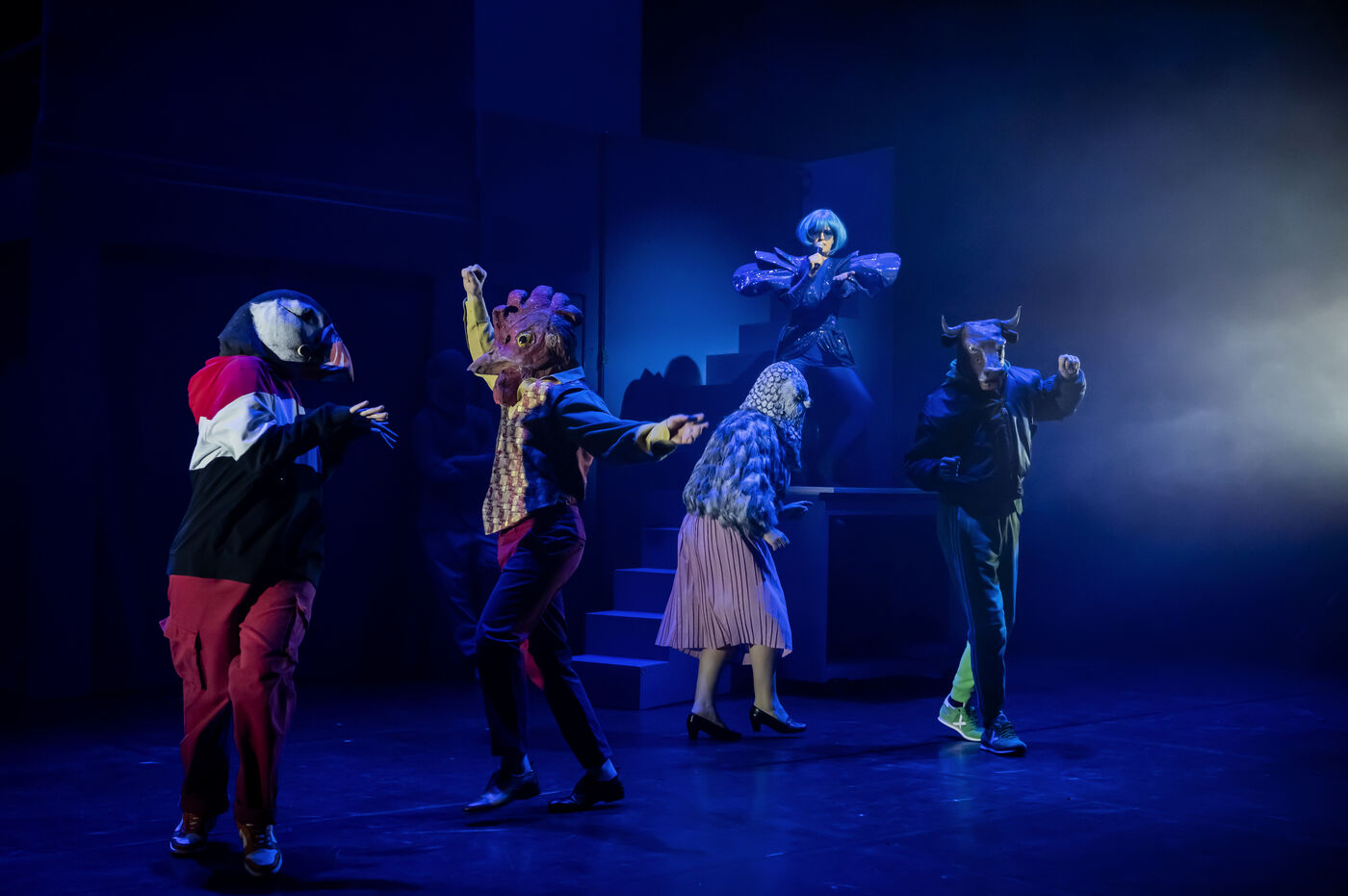 HAPPY APOCALYPSE Creation by FOUIC Company Staging by Clotilde Morgieve and Jean-Christophe Dolle with Sol Espeche, Yann de Monterno, Geraldine Roguez, Clotilde Morgieve and Jean-Christophe Dolle Music by Noe Dolle, Laurent Guillet and Pierre Martin-Danos Scenography and suits by Marie Herve Lights by Simon Demeslay Sound by Georges Hubert at the Theatre Antoine Watteau. Photograph by Pascal Gely / Hans Lucas