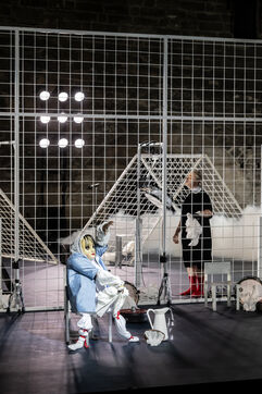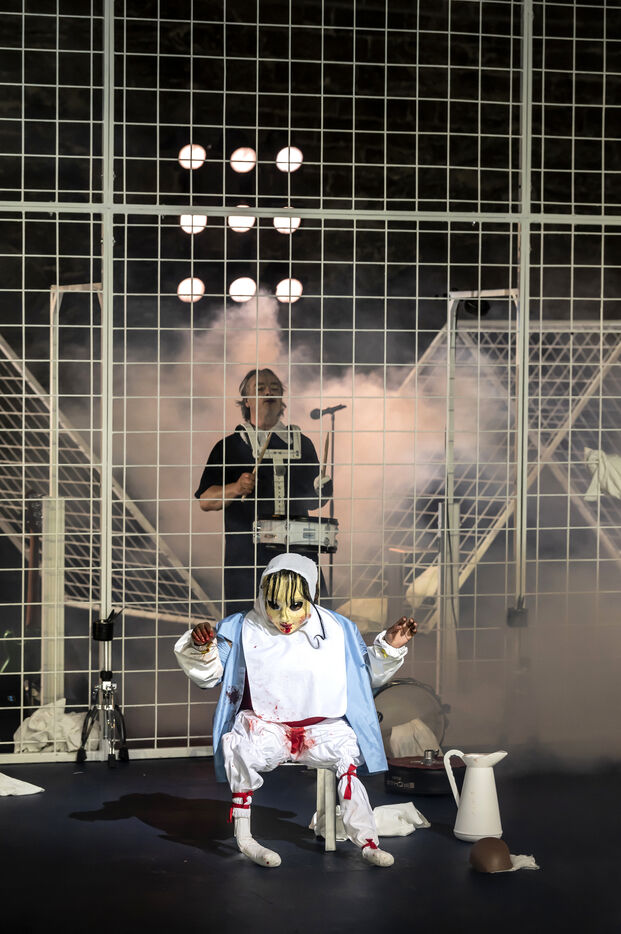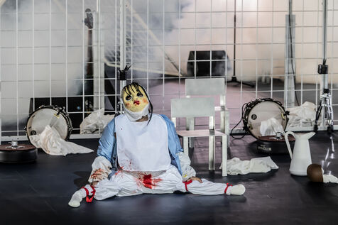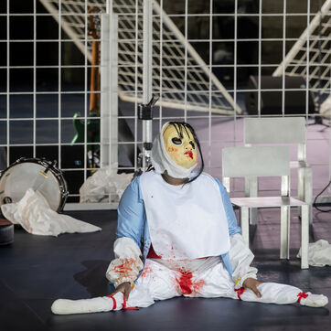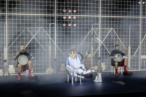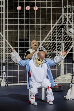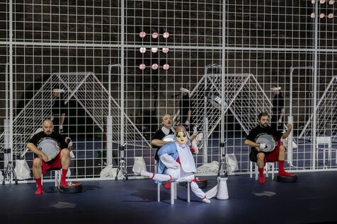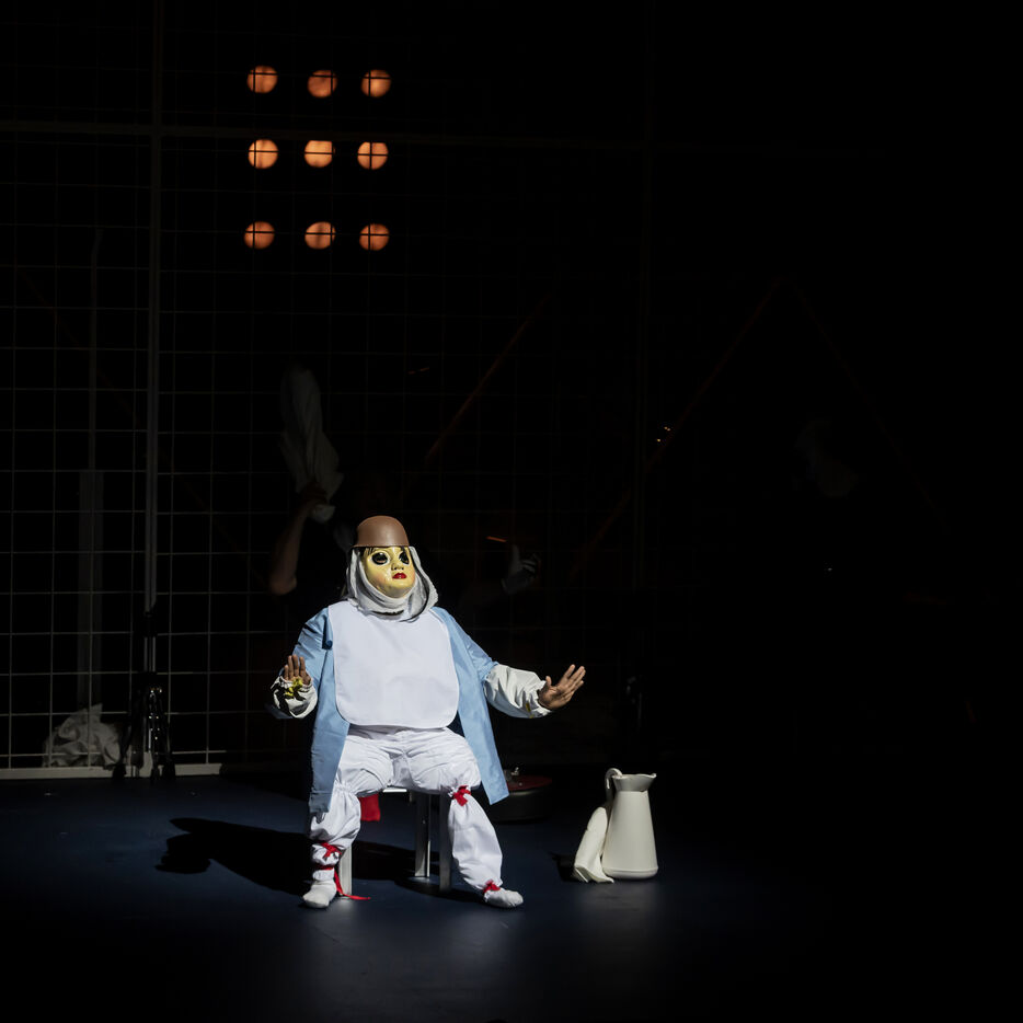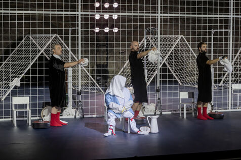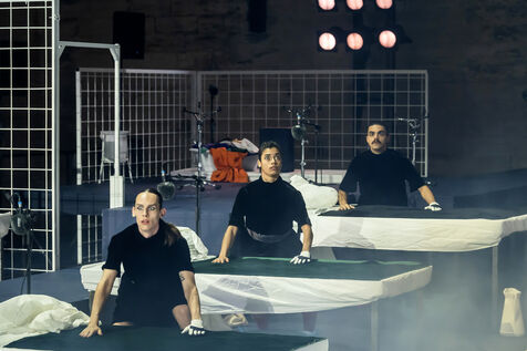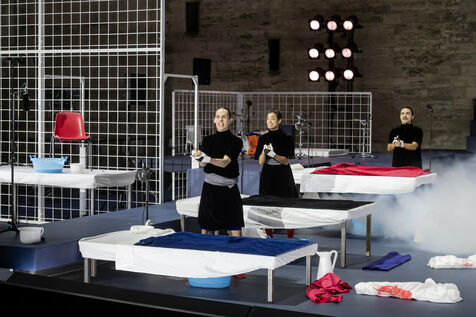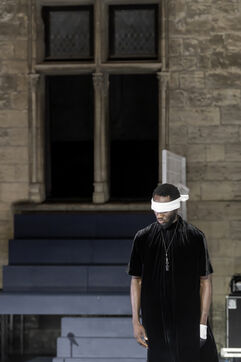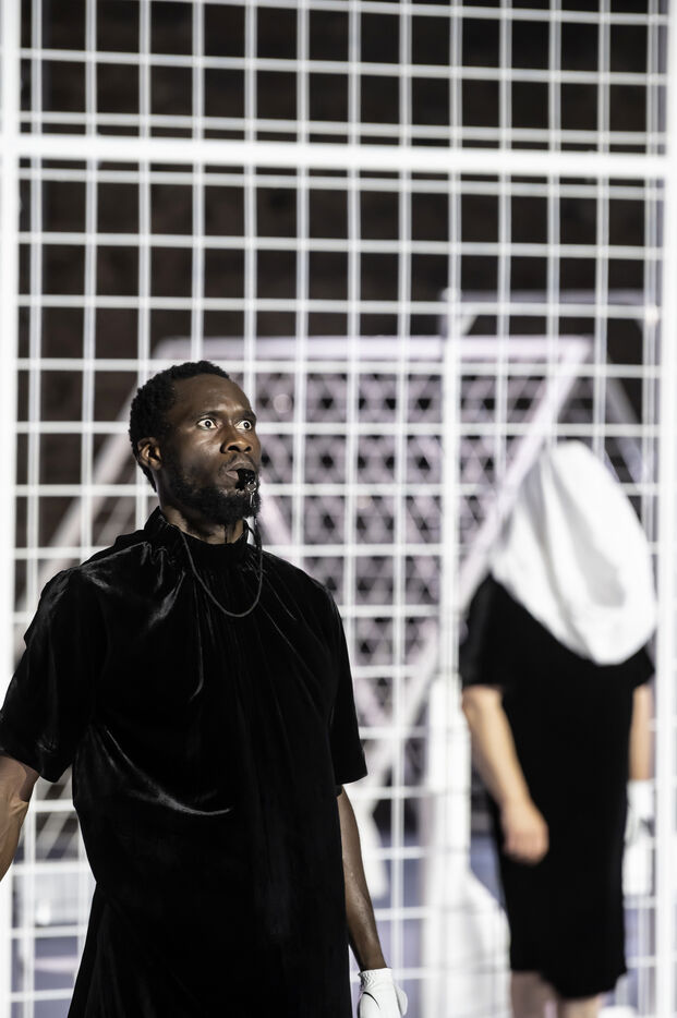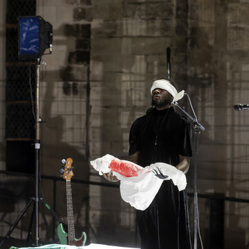 NOT Choregraphie de Marlene Monteiro Freitas avec Marie Albert, Joaozinho da Costa, Miguel Filipe, Ben Green, Henri « Cookie » Lesguillier, Tomas Boital, Rui Paixao et Marian Freitas a la Cour d Honneur du Palais des Papes Avignon. Photographie de Pascal Gely / Hans Lucas