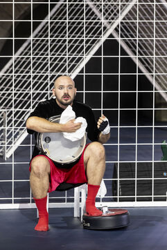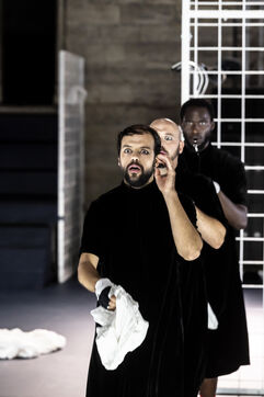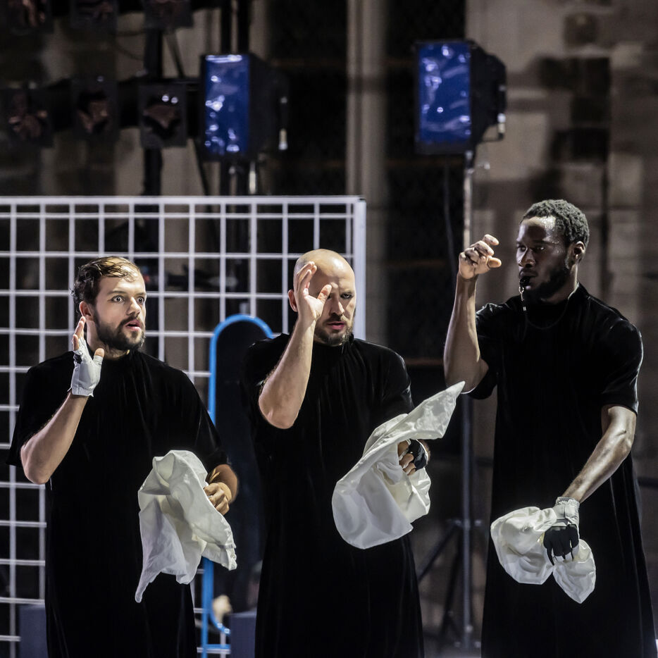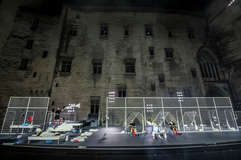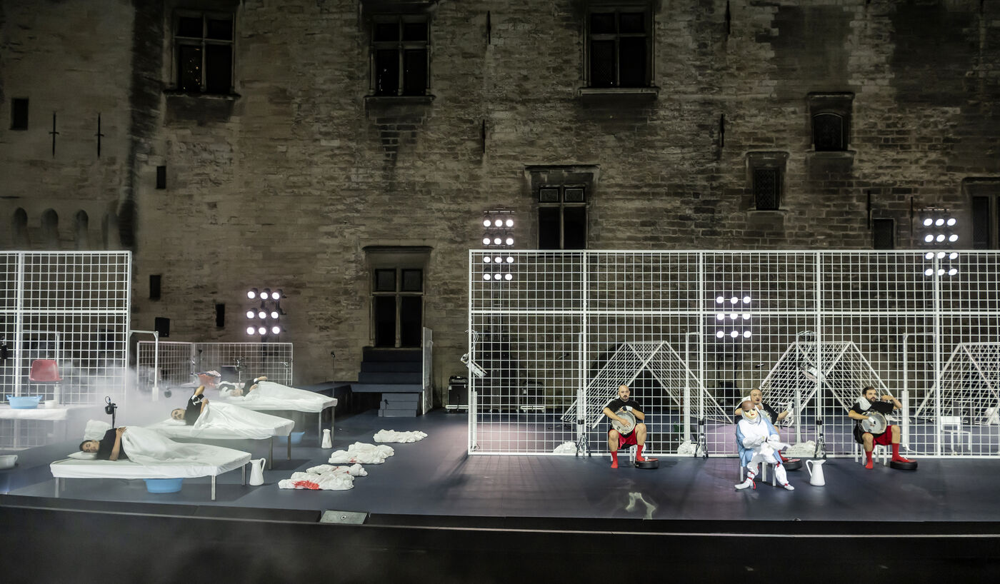 NOT Choreography by Marlene Monteiro Freitas with Marie Albert, Joaozinho da Costa, Miguel Filipe, Ben Green, Henri « Cookie » Lesguillier, Tomas Boital, Rui Paixao and Marian Freitas at the Cour d Honneur du Palais des Papes Avignon. Photograph by Pascal Gely / Hans Lucas