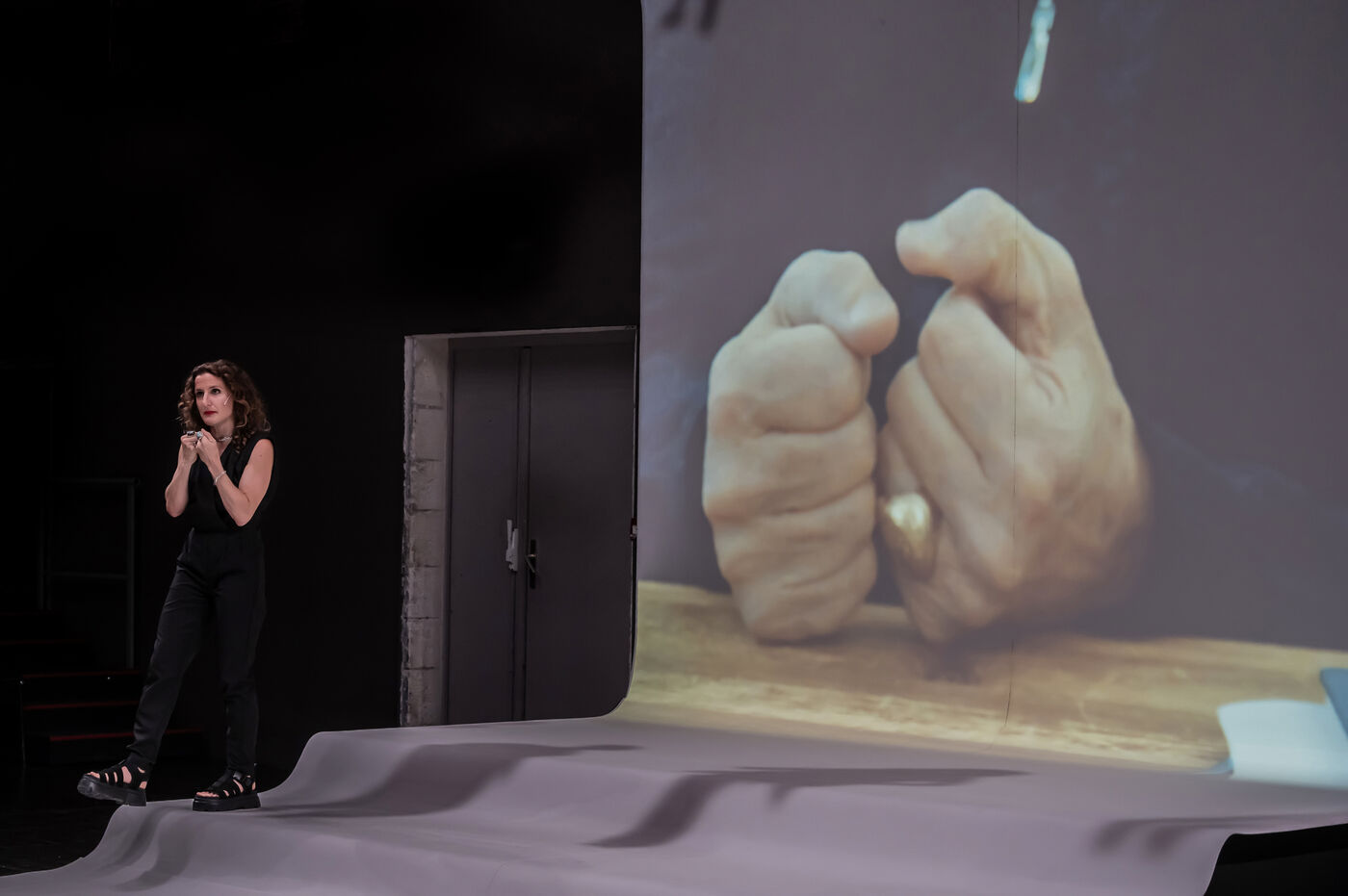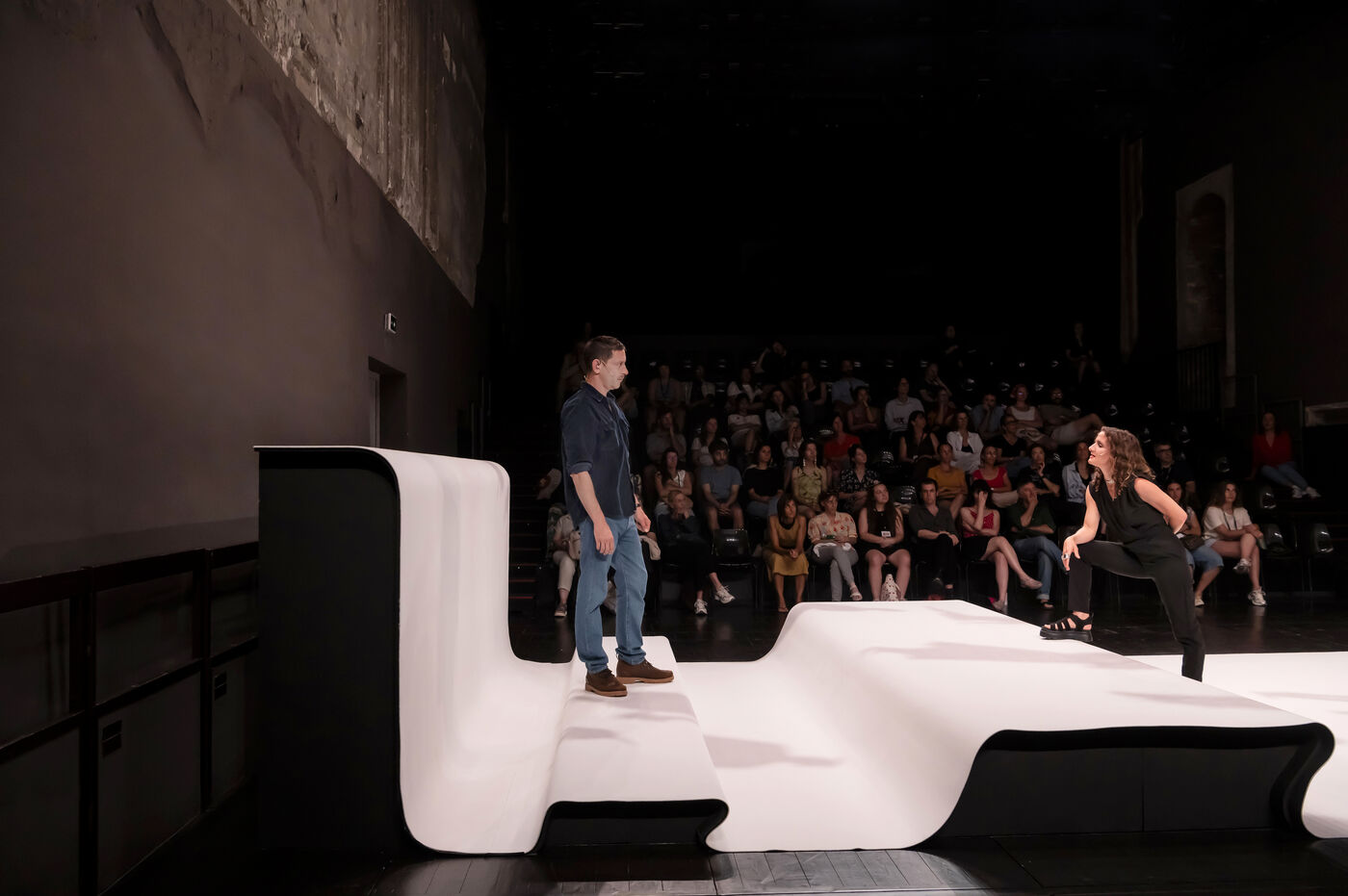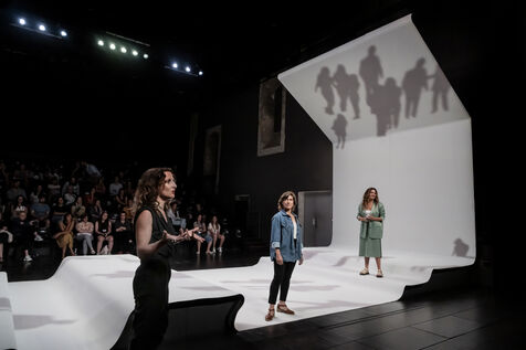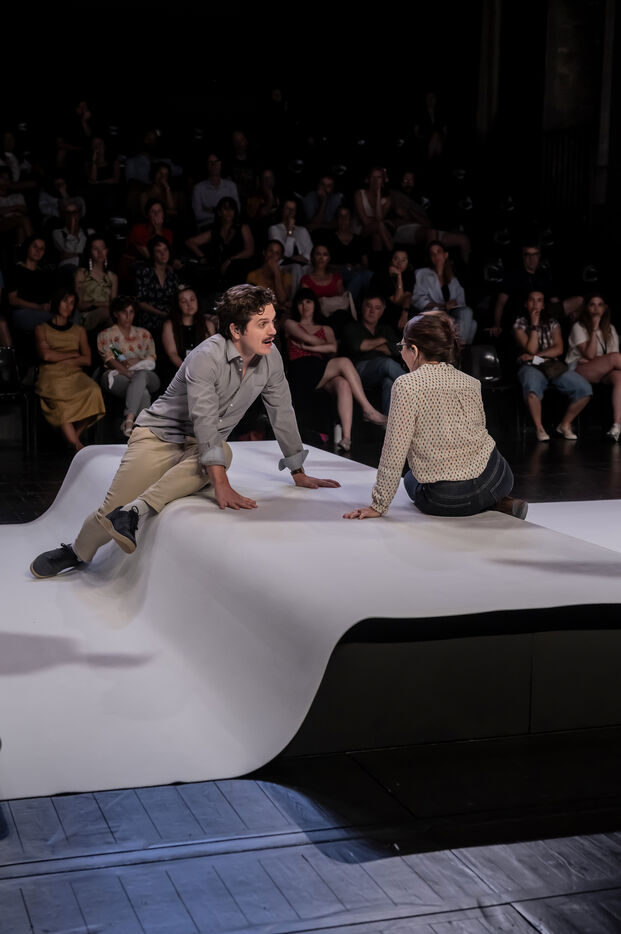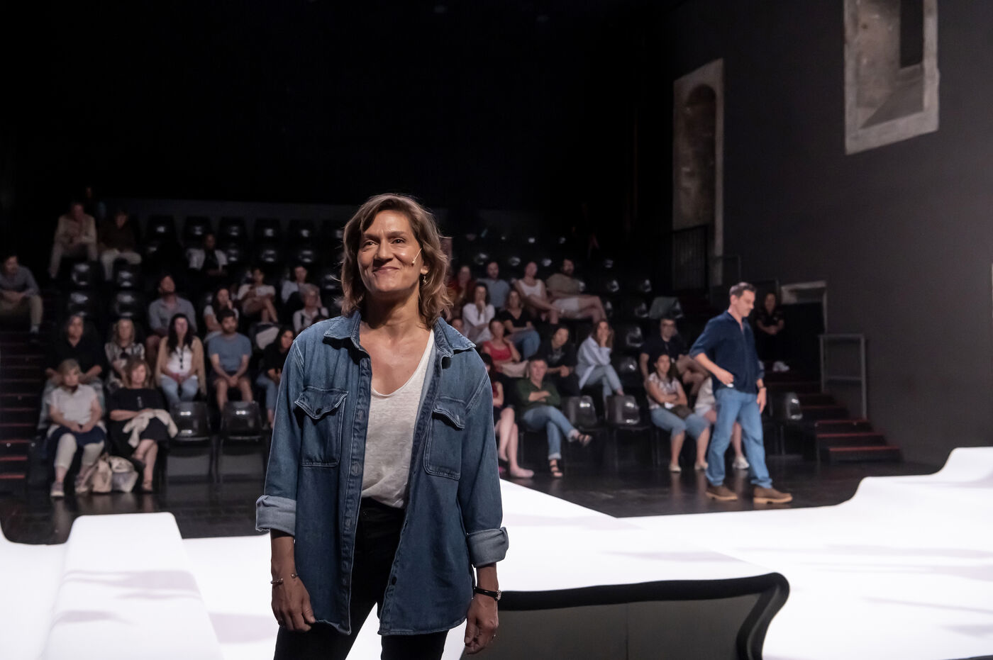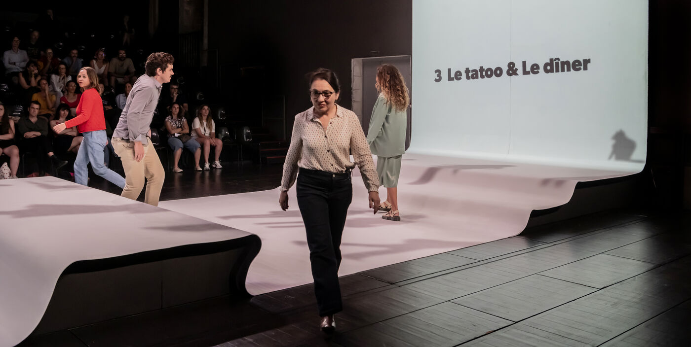 AFFAIRES FAMILIALES Conception, texte et mise en scene de Emilie Rousset avec Saadia Bentaieb, Antonia Buresi, Teresa Coutinho, Ruggero Franceschini, Emmanuelle Lafon, Nuria Lloansi et Manuel Vallade au Tinel de la chartreuse de Villeneuve lez Avignon.Photographie de Pascal Gely / Hans Lucas