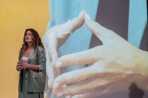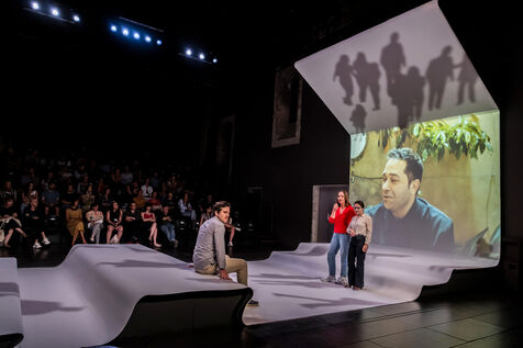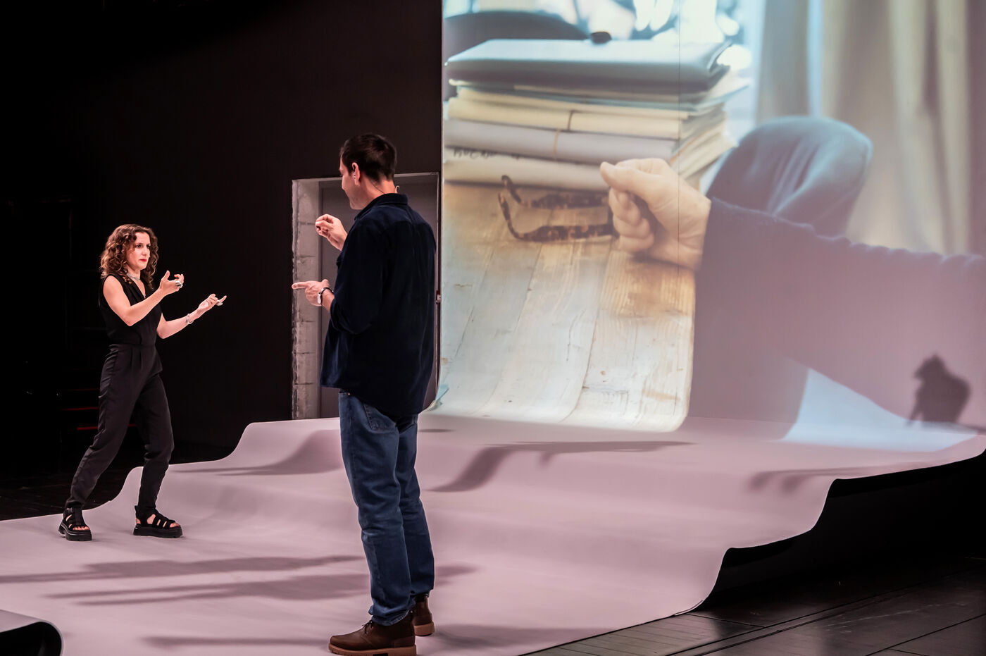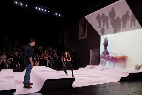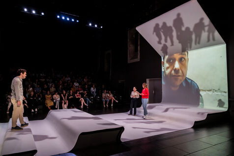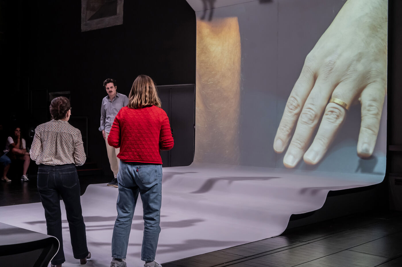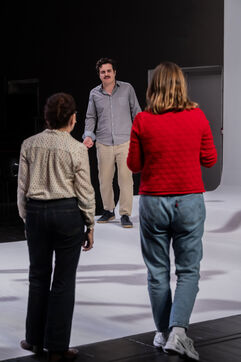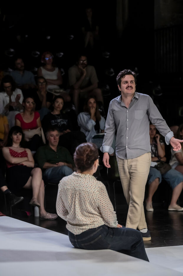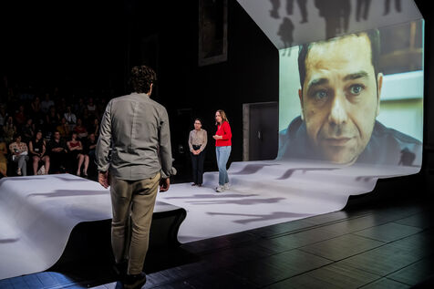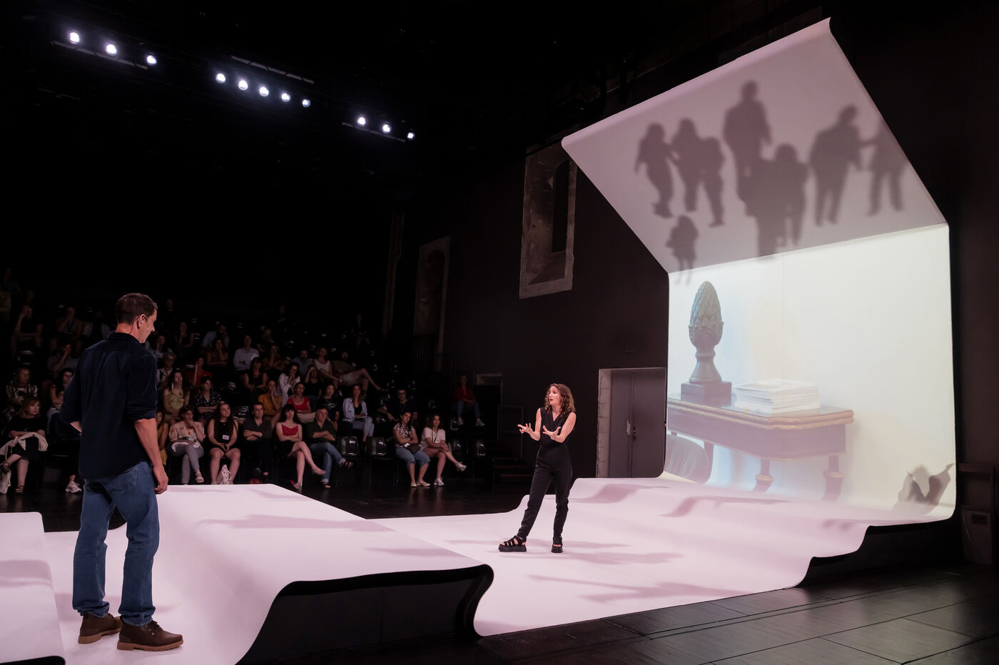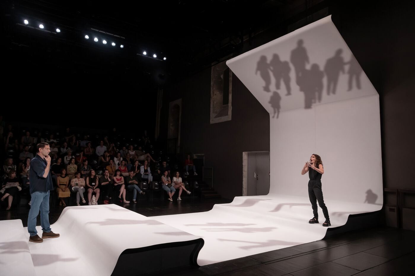 AFFAIRES FAMILIALES Conception, texte et mise en scene de Emilie Rousset avec Saadia Bentaieb, Antonia Buresi, Teresa Coutinho, Ruggero Franceschini, Emmanuelle Lafon, Nuria Lloansi et Manuel Vallade au Tinel de la chartreuse de Villeneuve lez Avignon.Photographie de Pascal Gely / Hans Lucas