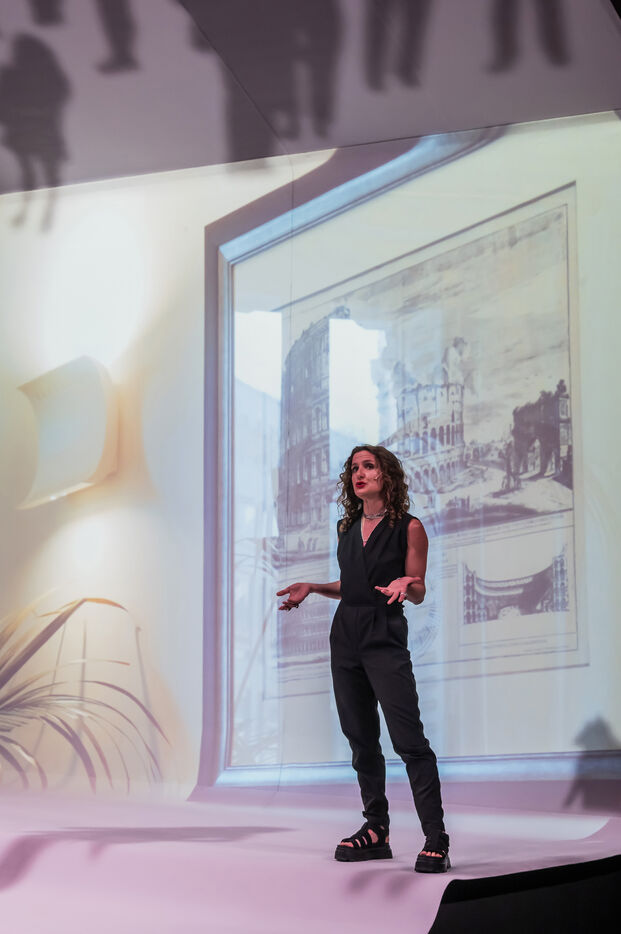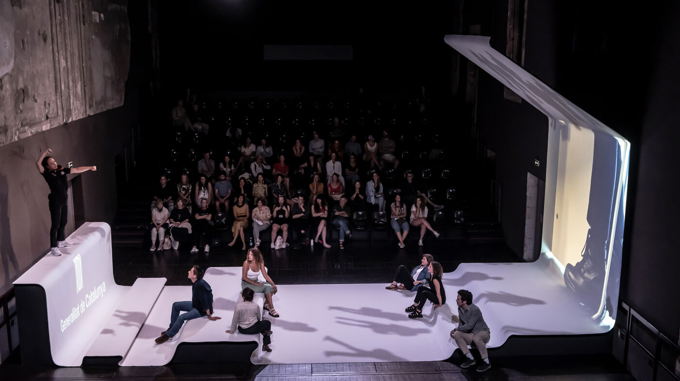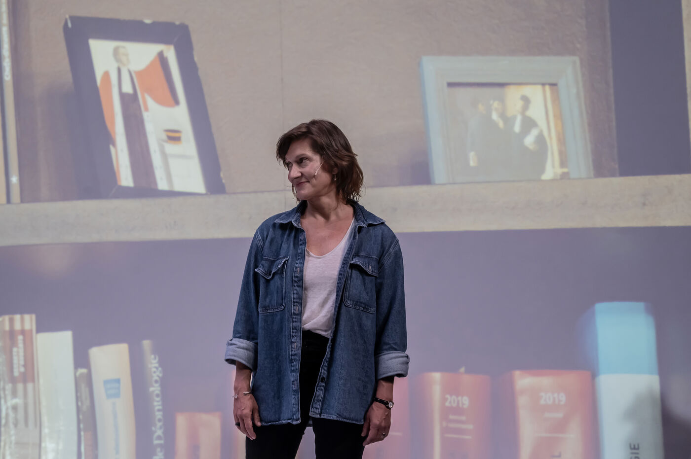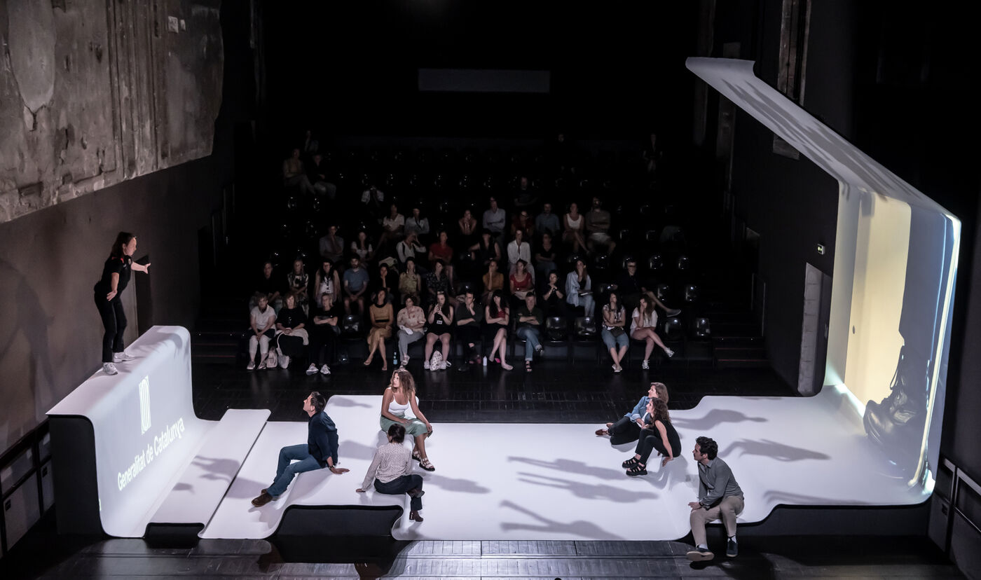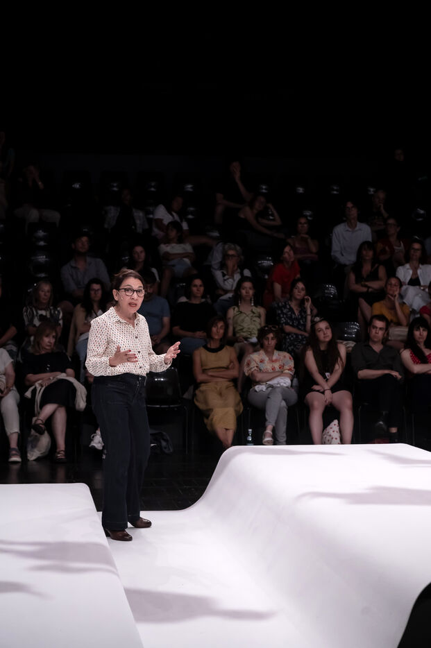 AFFAIRES FAMILIALES Conception, text and stage direction by Emilie Rousset with Saadia Bentaieb, Antonia Buresi, Teresa Coutinho, Ruggero Franceschini, Emmanuelle Lafon, Nuria Lloansi and Manuel Vallade at the Tinel de la chartreuse de Villeneuve lez Avignon. Photograph by Pascal Gely / Hans Lucas