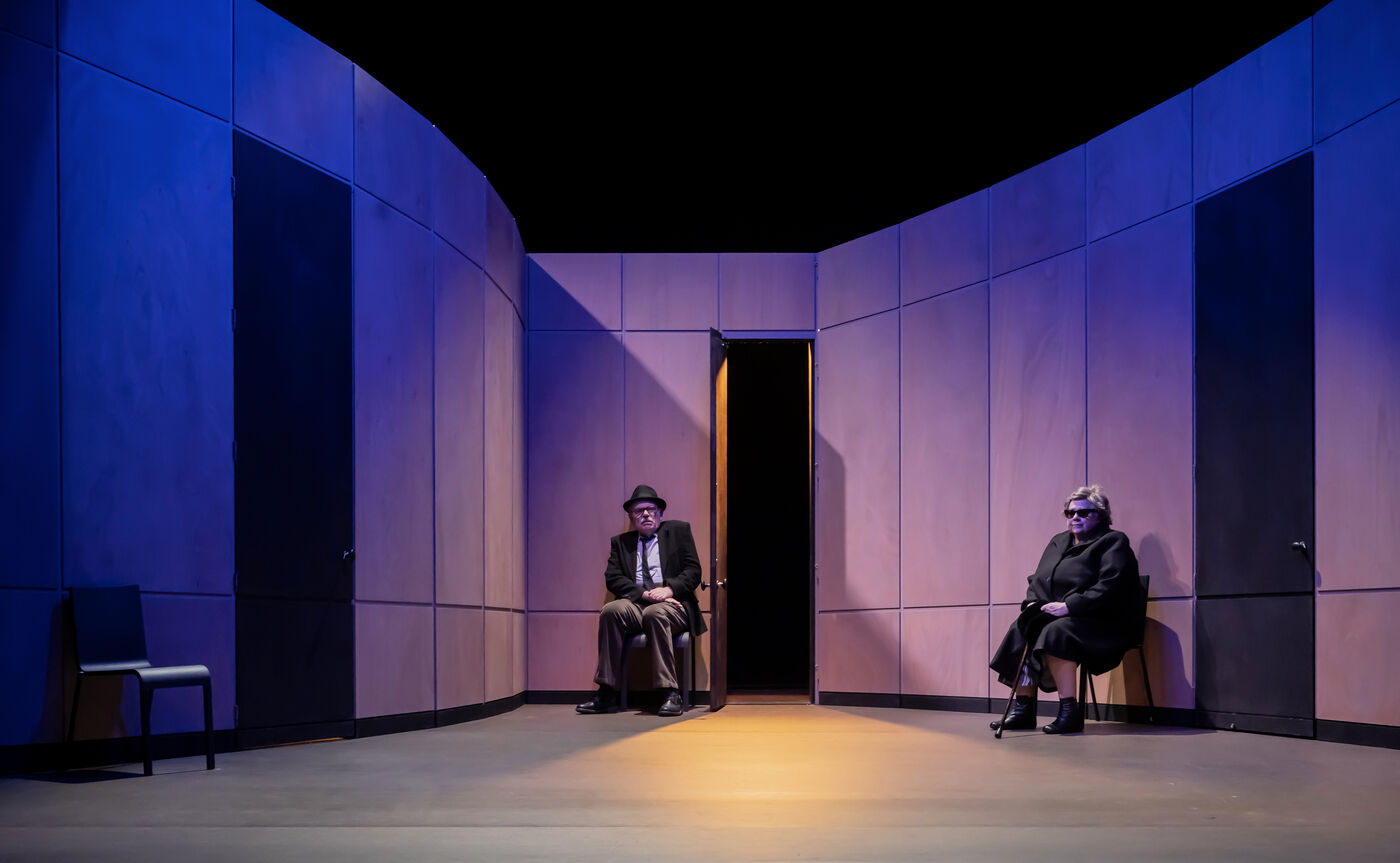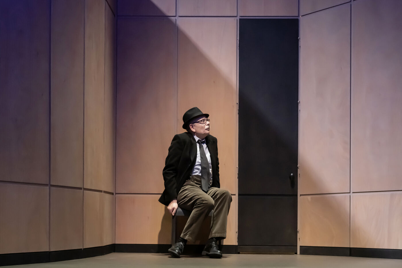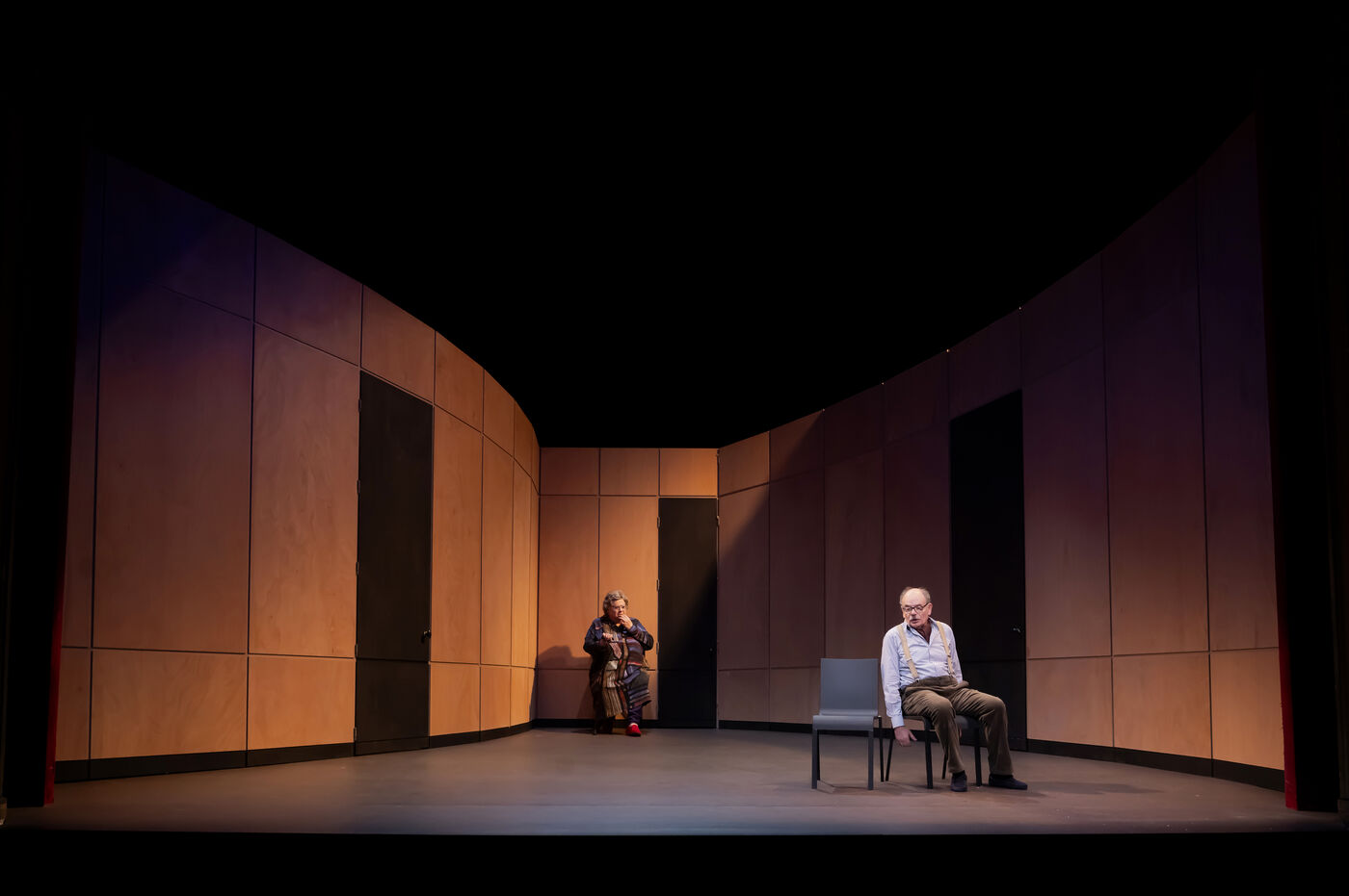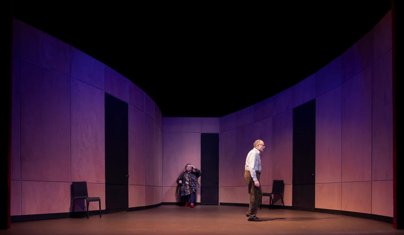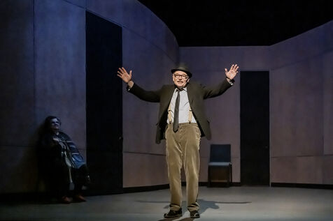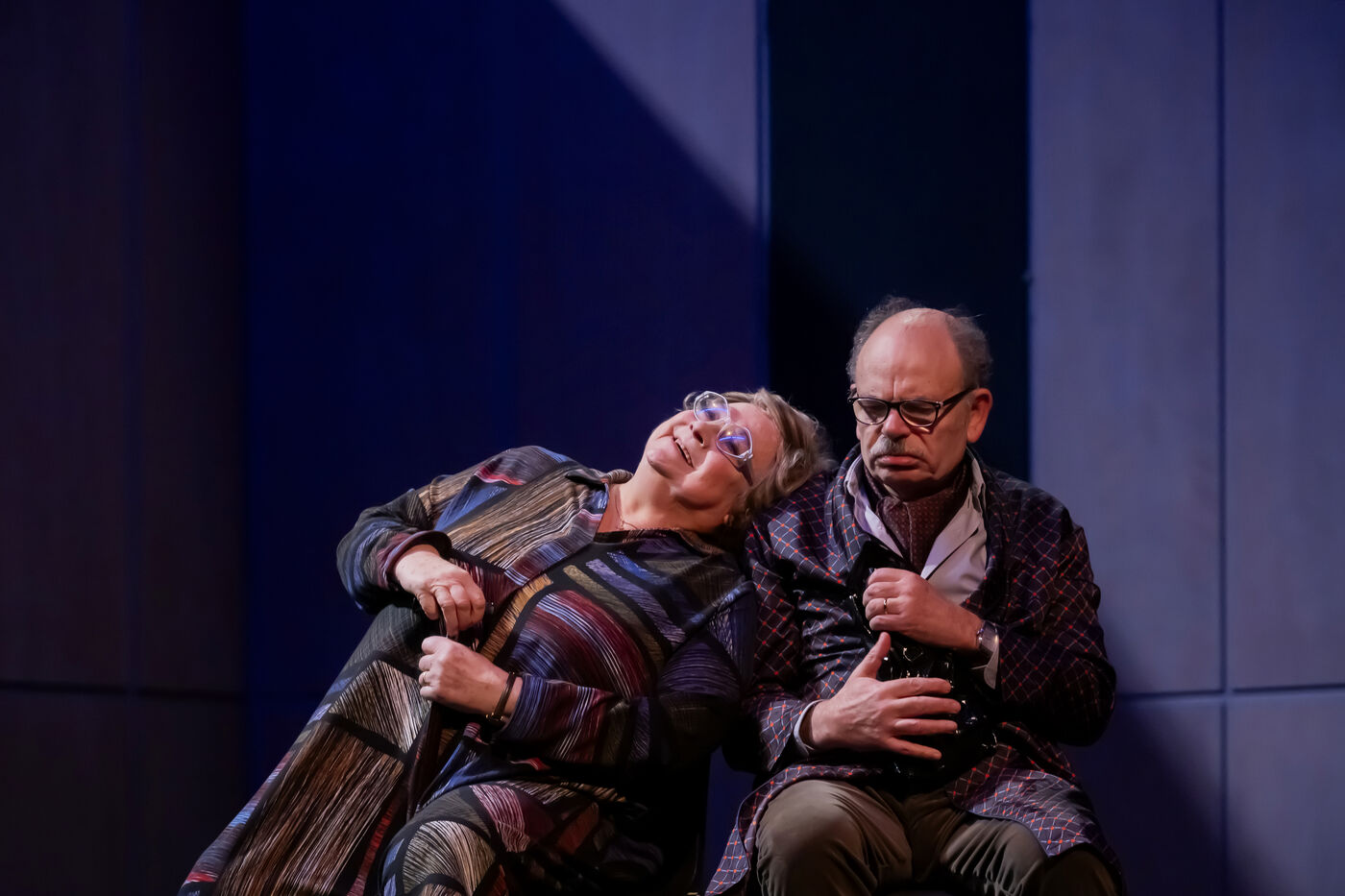 DANS LE COULOIR Text Jean-Claude Grumberg Stage directing Charles Tordjman Assistant director Pauline MASSON Set design Vincent Tordjman Lighting Christian Pinaud Suits Anne Yarmola Music Vicnet with Christine Murillo and Jean-Pierre Darroussin at the Theatre Hebertot. Photograph by Pascal Gely / Hans Lucas
