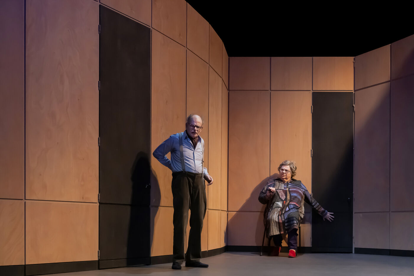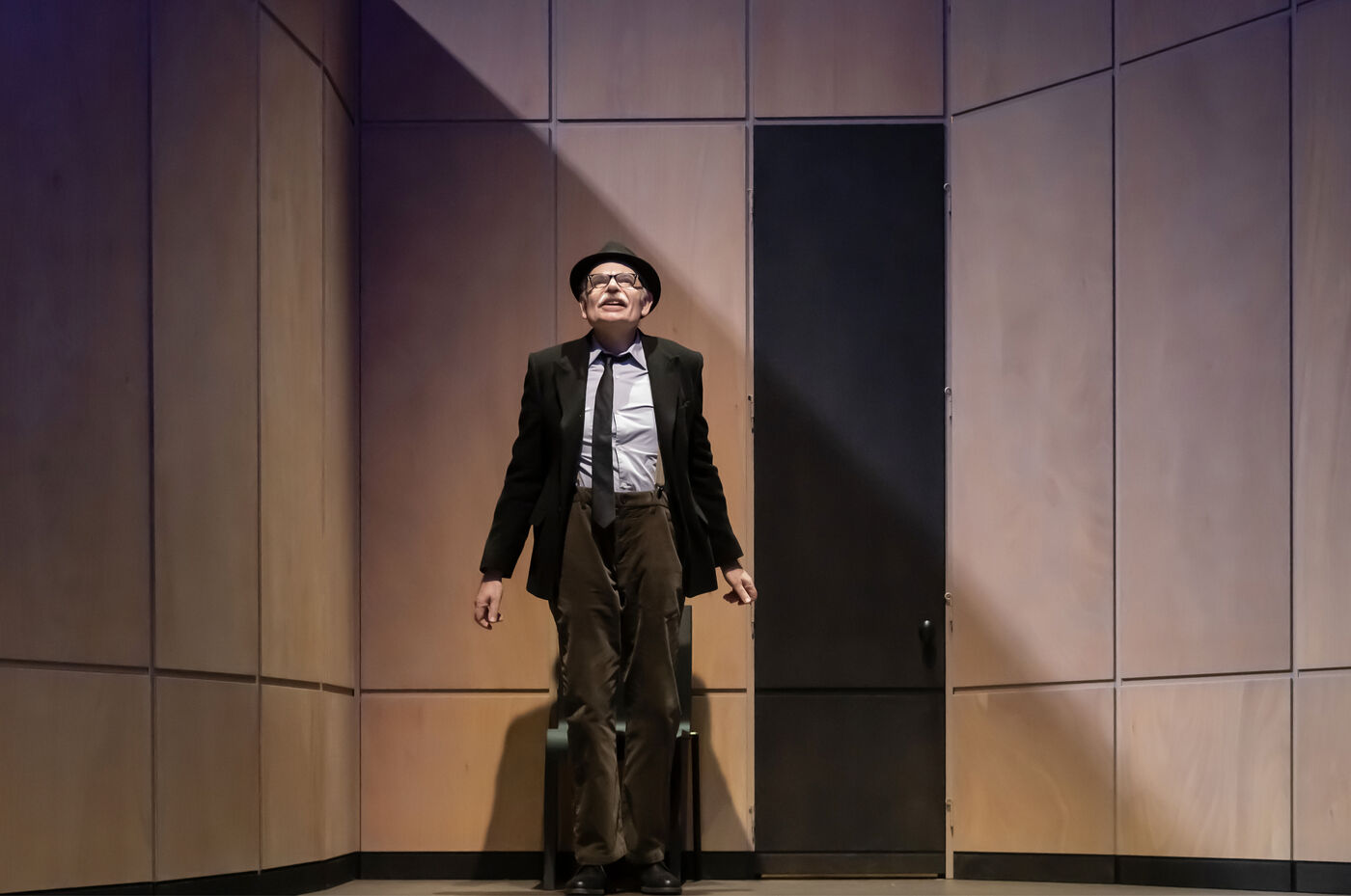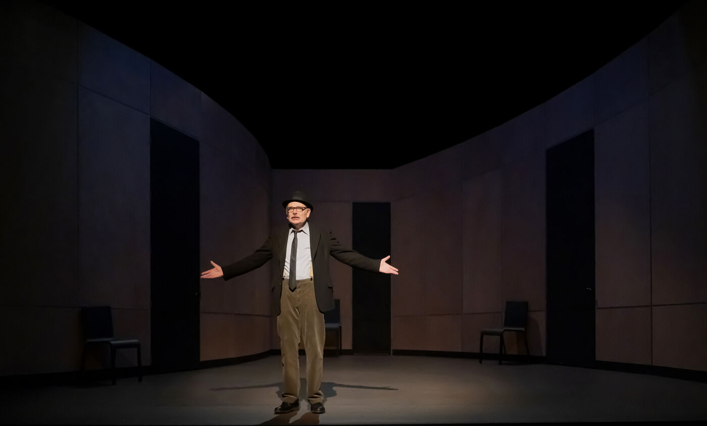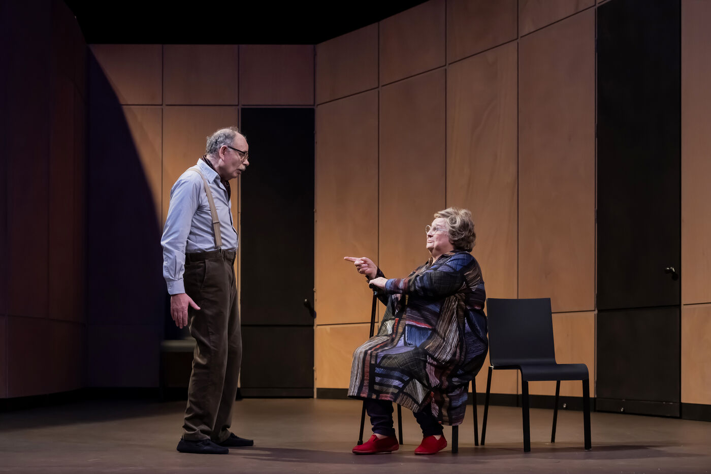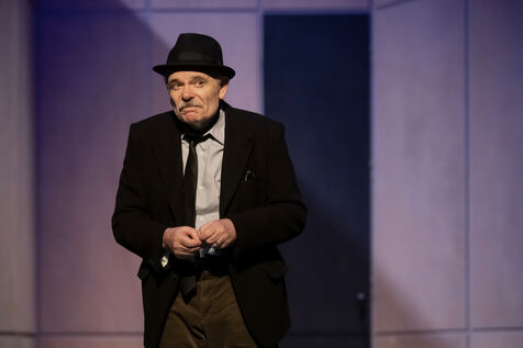 DANS LE COULOIR Texte Jean-Claude Grumberg Mise en scene de Charles Tordjman Assistante mise en scene Pauline Masson Decor Vincent Tordjman Lumiere Christian Pinaud Costumes Anne Yarmola Musique Vicnet avec Christine Murillo et Jean-Pierre Darroussin au Theatre Hebertot. Photographie de Pascal Gely / Hans Lucas