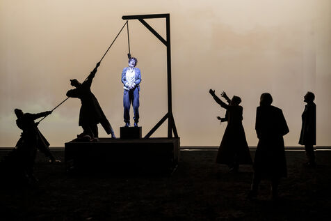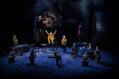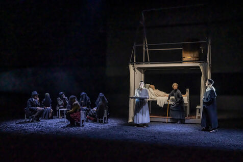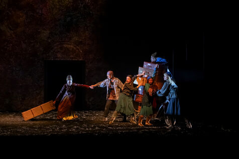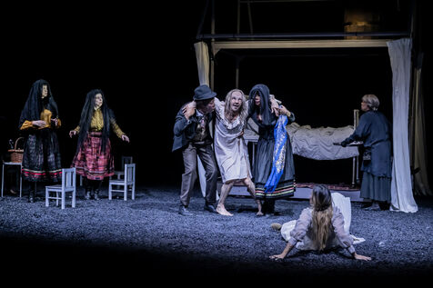 LE CERCLE DE CRAIE CAUCASIEN Texte de Bertolt Brecht Traduction de Georges Proser Mise en scene de Emmanuel Demarcy-Mota avec Marie-France Alvarez, Ilona Astoul, Elodie Bouchez, Celine Carrere, Jauris Casanova, Valerie Dashwood, Philippe Demarle, Edouard Eftimaiks, Sandra Faure, Gaelle Guillou, Sarah Karbasnikoff, Stephane Krahenbuhl, Gerald Maillet, Ludovic Parfait Goma et Jackee Toto au Theatre de la Ville. Photographie de Pascal Gely / Hans Lucas