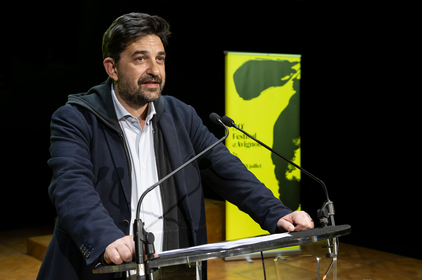 CONFERENCE DE PRESSE FESTIVAL D AVIGNON 2026 Tiago Rodrigues presents the program for the 2026 Avignon Festival at the Theatre du Rond-Point. Photography by Pascal Gely / Hans Lucas