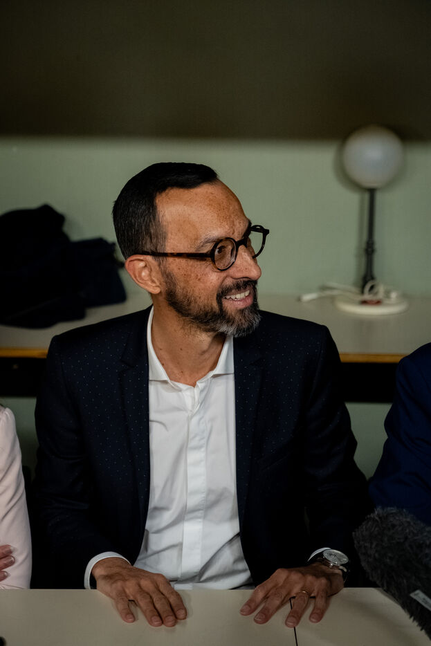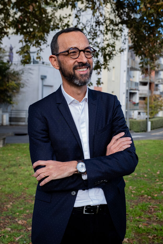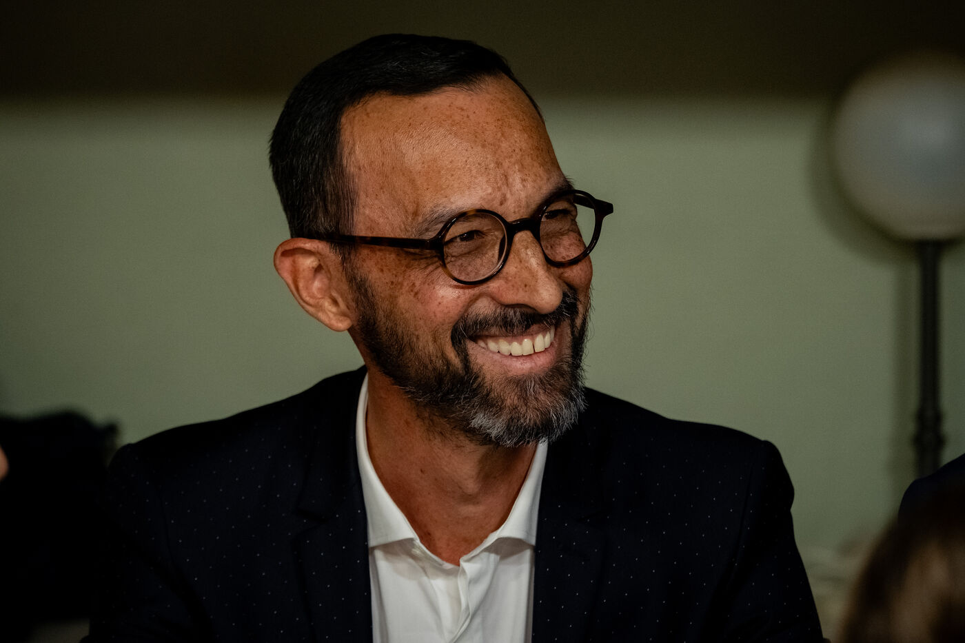 Jérôme Marbot candidate heading the left and ecologist list during the communist party banquet in Pau