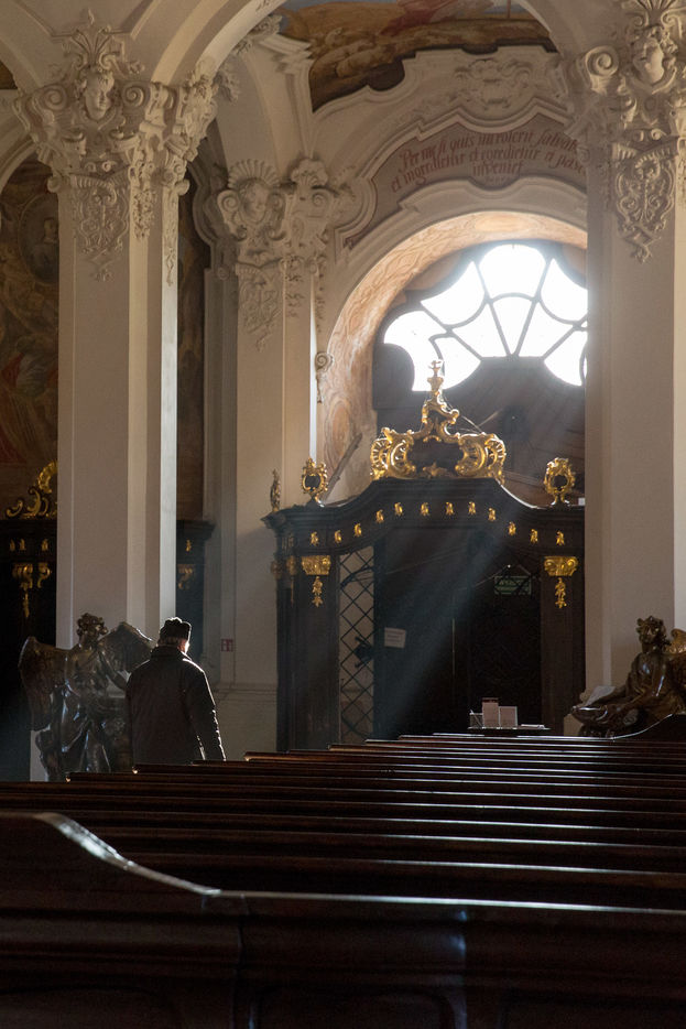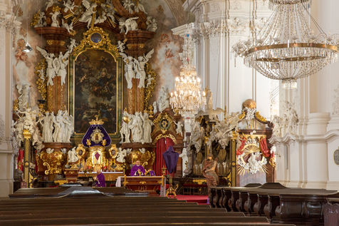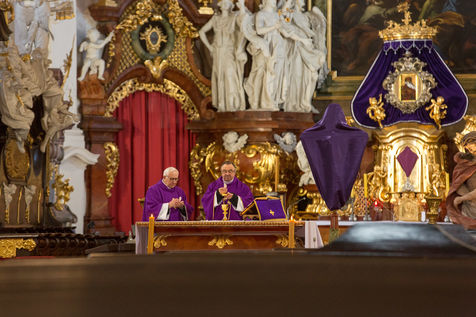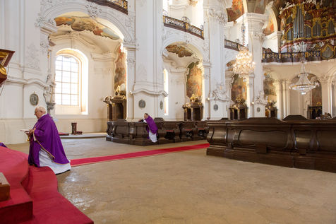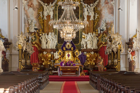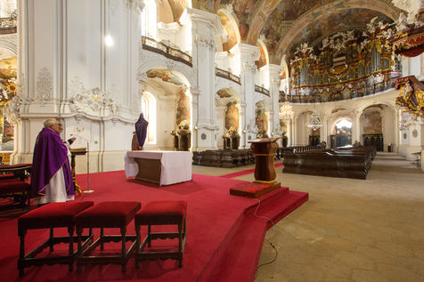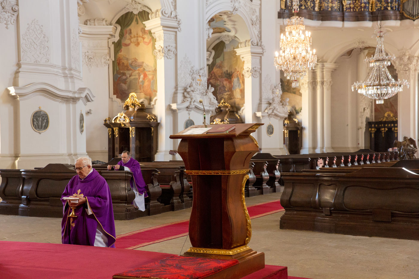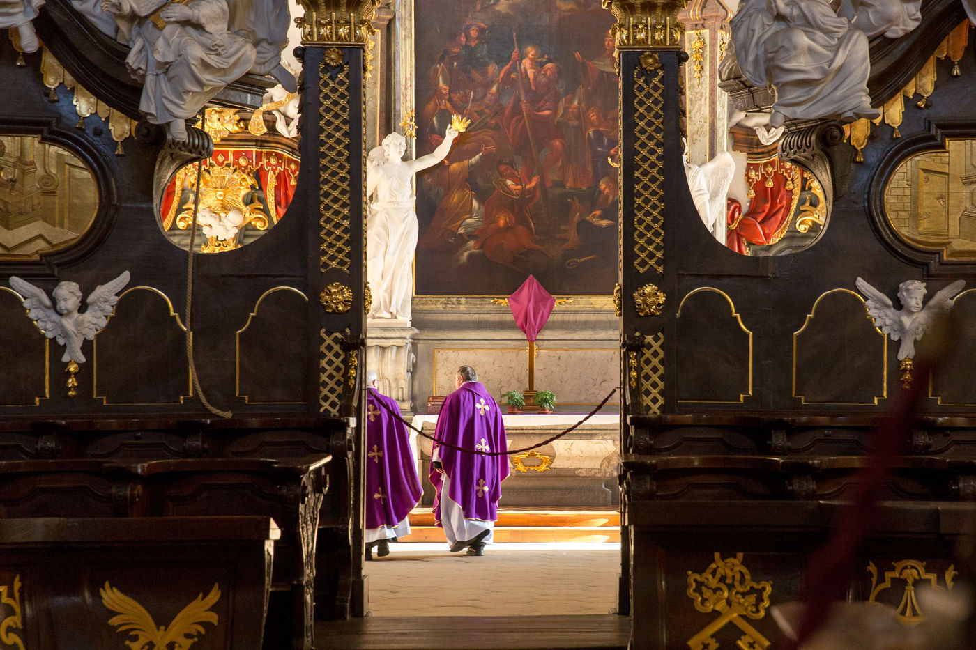 Covid-19. Empty Mass in Krzeszow Basilica. Poland