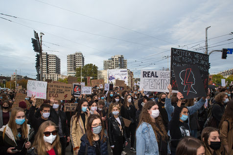 Septième jour de manifestation contre le durcissement de la loi sur l'avortement en Pologne. Dans un contexte d'explosion des cas de Covid-19, plus de 500000 manifestants dans au moins 400 villes du pays, selon la police, ont bravés l'interdiction de rassemblement de plus de cinq personne pour protester contre ce qui devient une quasi-interdiction de l'avortement.