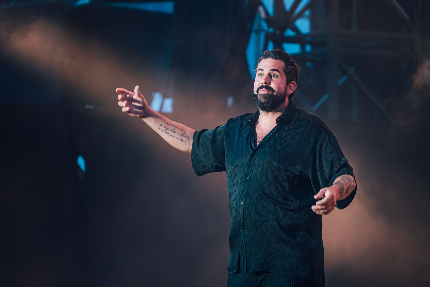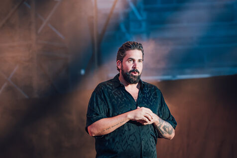 Le comédien Artus dans les arènes de Nîmes ce 18 juillet 2025