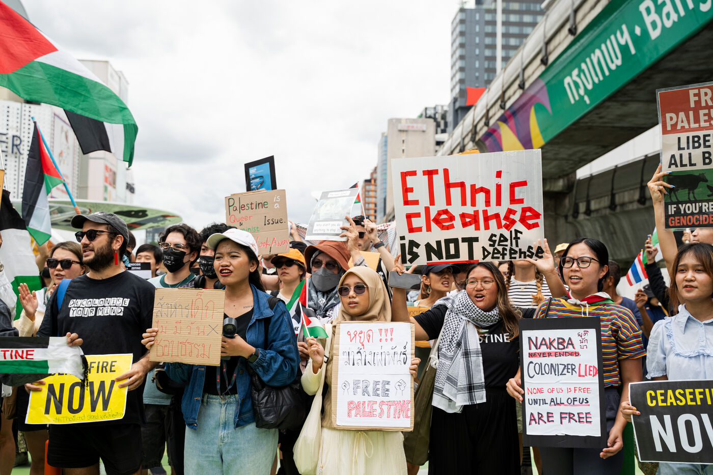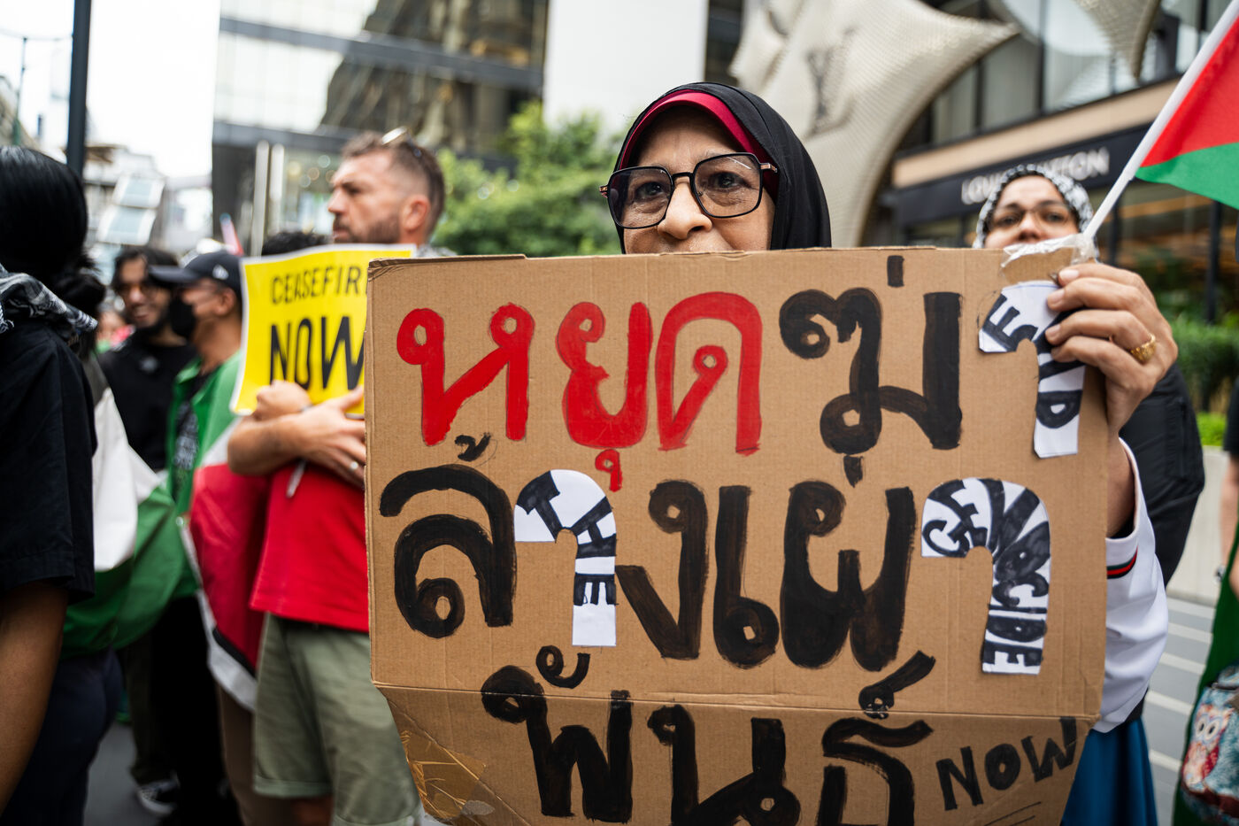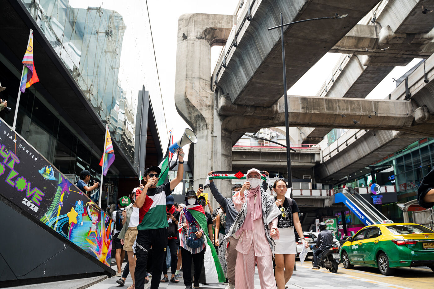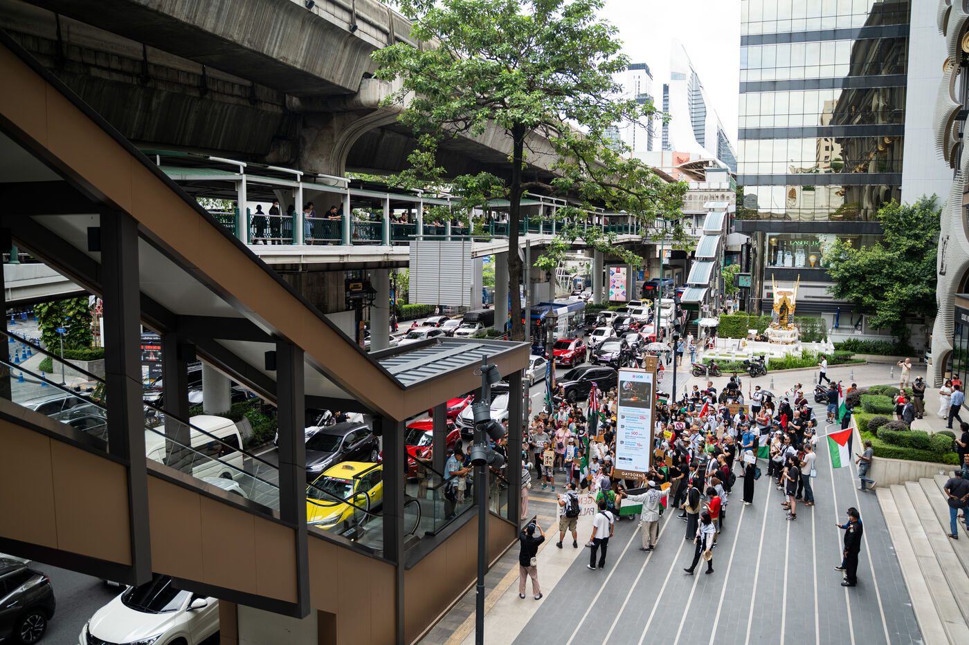 Le 15 juin 2025, une marche de solidarité s’est déroulée à Bangkok, en Thaïlande, organisée par le Palestine Solidarity Campaign (PSC). Les manifestants se sont réunis à la station BTS Chidlom avant de se diriger vers le MBK Center. La marche s’inscrivait dans un mouvement mondial de soutien à la "Global March to Gaza", arrivée le même jour à la frontière de Rafah. Les manifestants brandissaient des pancartes et scandaient des slogans appelant à la fin du génocide, de l’apartheid et de l’occupation en Palestine. Ils ont exigé un cessez-le-feu immédiat et l’entrée de l’aide humanitaire à Gaza. La manifestation pacifique visait à exprimer la solidarité internationale avec le peuple palestinien et à relayer les appels mondiaux à la justice et à l’action humanitaire.