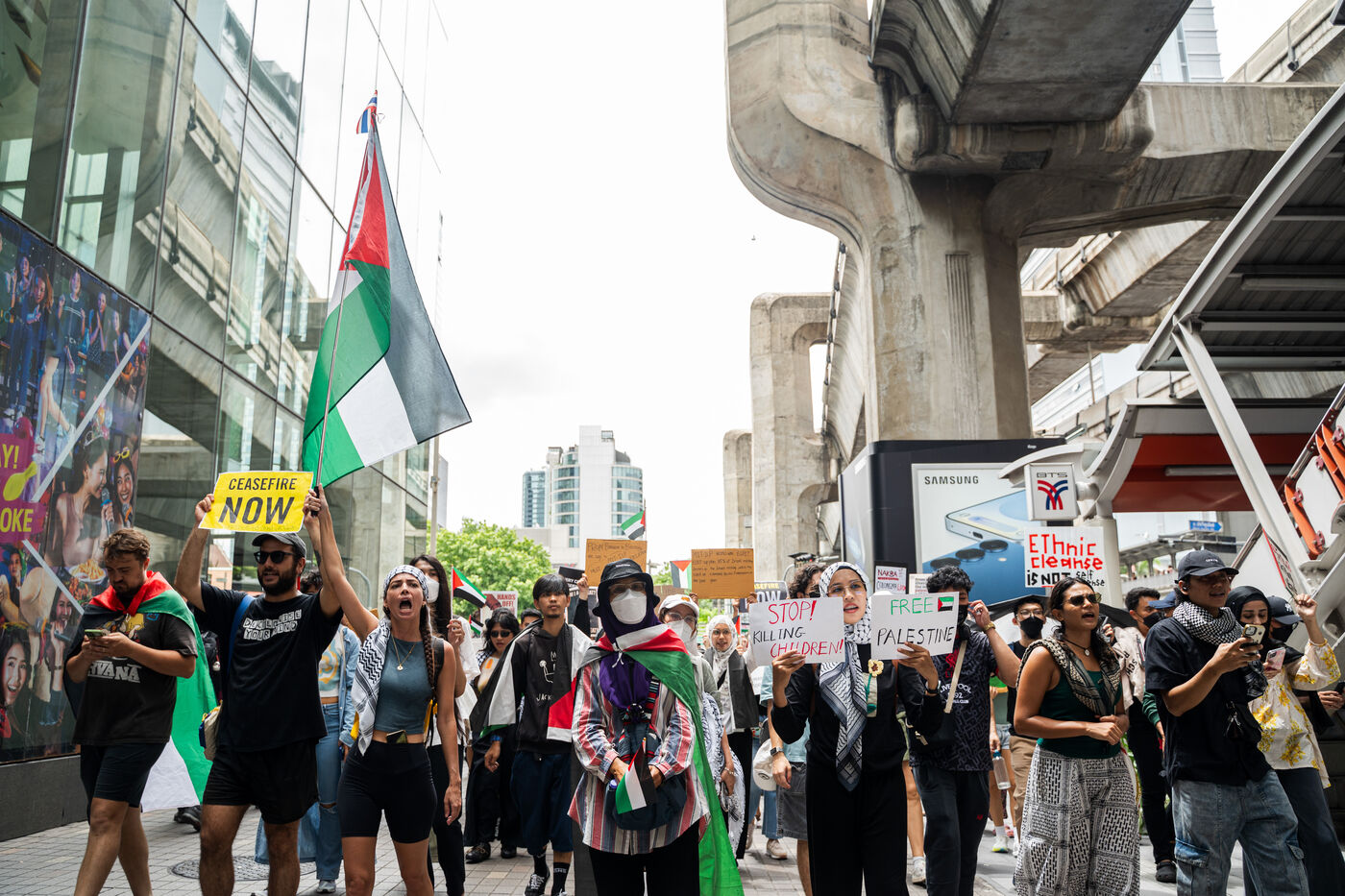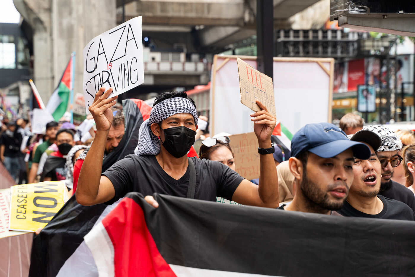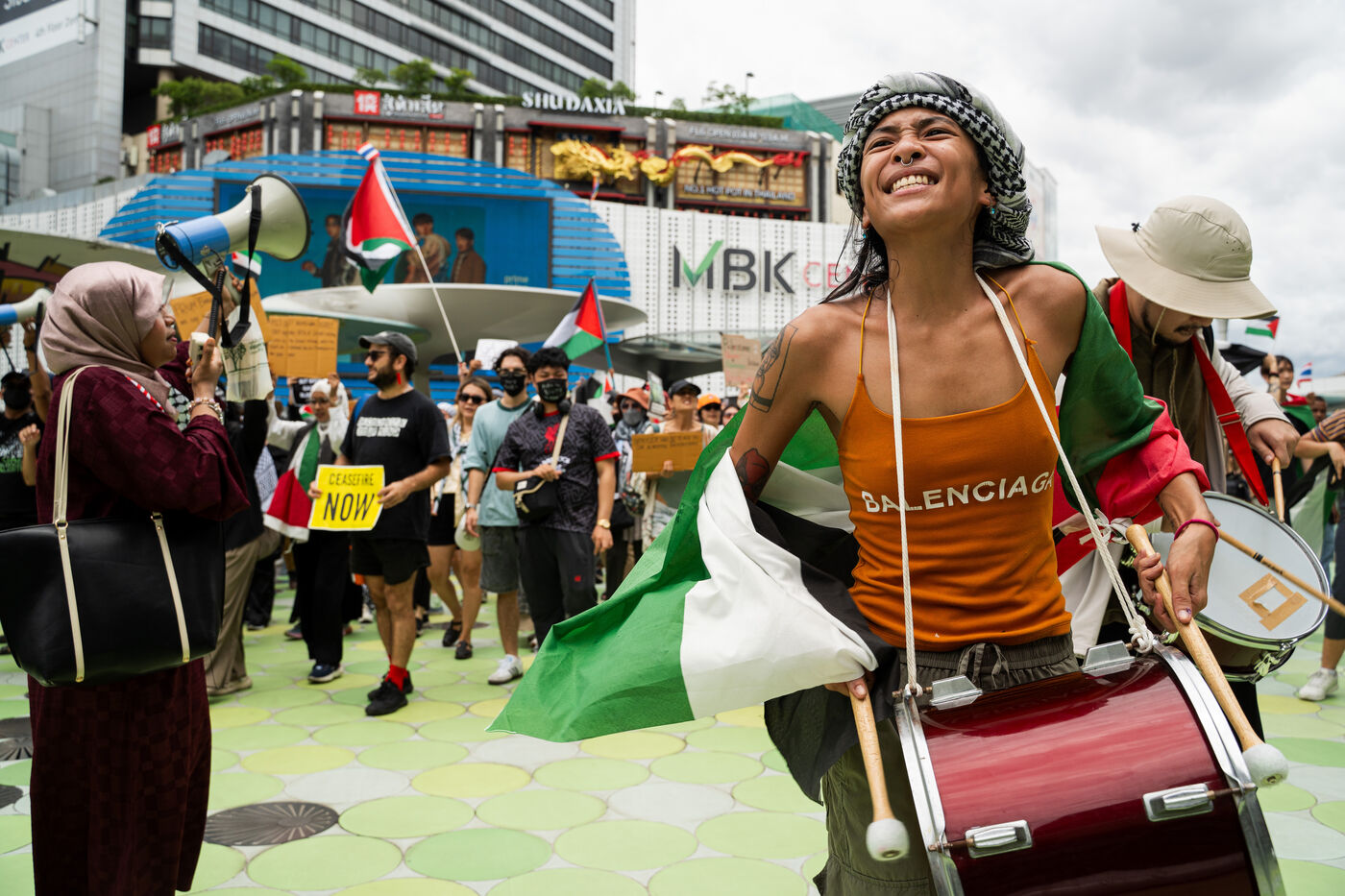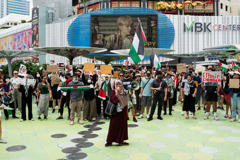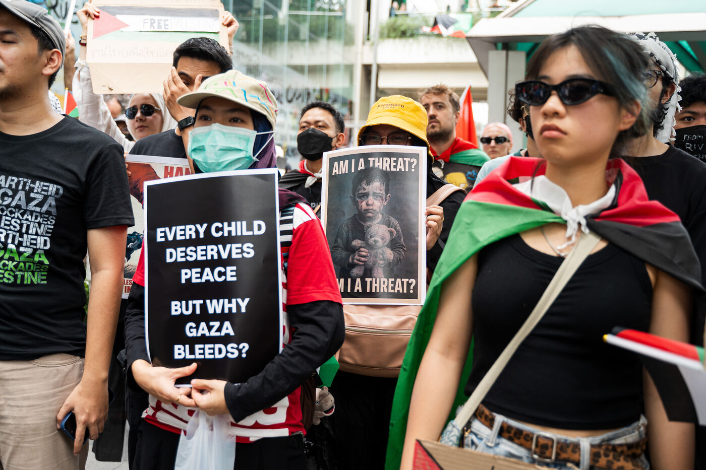 Le 15 juin 2025, une marche de solidarité s’est déroulée à Bangkok, en Thaïlande, organisée par le Palestine Solidarity Campaign (PSC). Les manifestants se sont réunis à la station BTS Chidlom avant de se diriger vers le MBK Center. La marche s’inscrivait dans un mouvement mondial de soutien à la "Global March to Gaza", arrivée le même jour à la frontière de Rafah. Les manifestants brandissaient des pancartes et scandaient des slogans appelant à la fin du génocide, de l’apartheid et de l’occupation en Palestine. Ils ont exigé un cessez-le-feu immédiat et l’entrée de l’aide humanitaire à Gaza. La manifestation pacifique visait à exprimer la solidarité internationale avec le peuple palestinien et à relayer les appels mondiaux à la justice et à l’action humanitaire.
