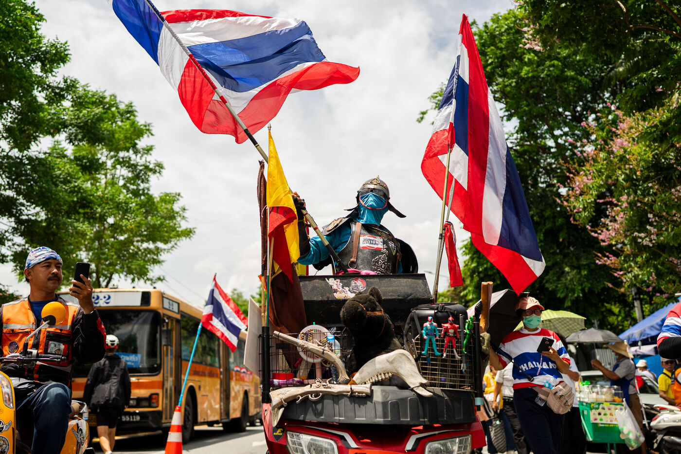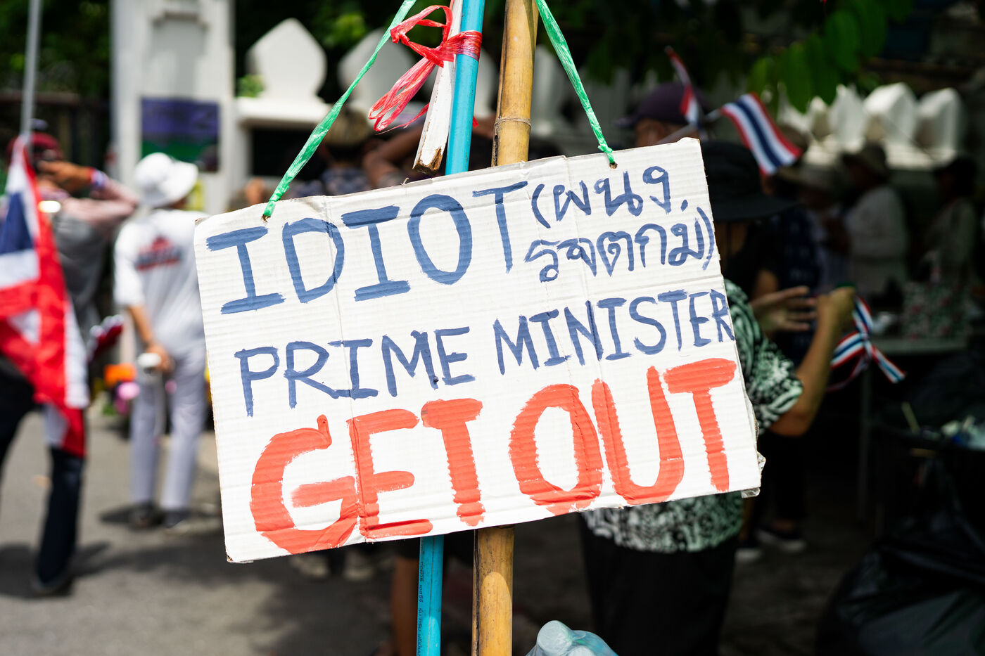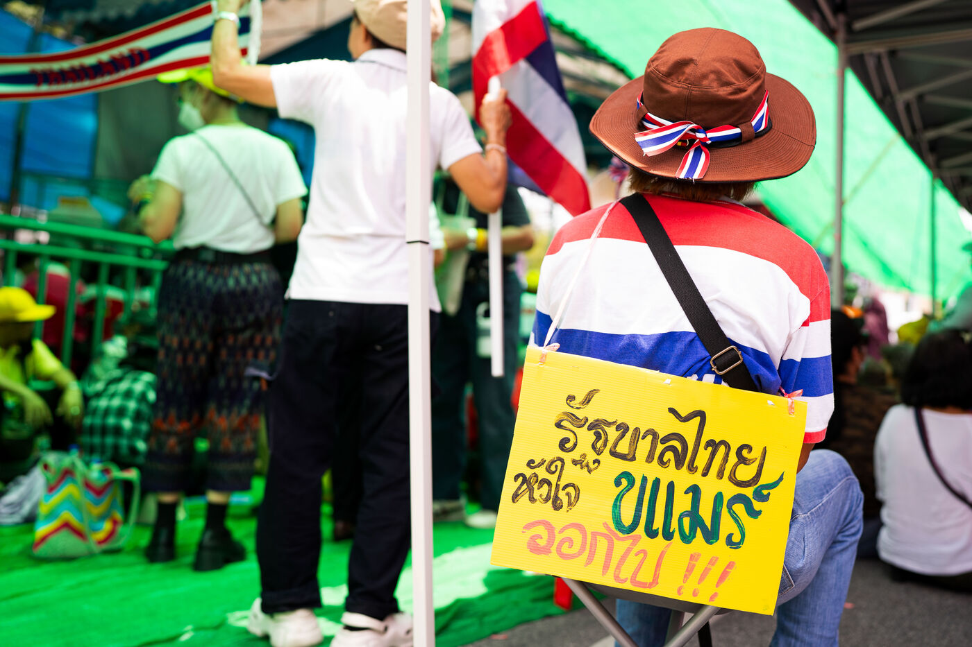 Des manifestants se sont réunis le 20 juin 2025 près du siège du gouvernement à Bangkok pour demander la démission de la Première ministre Paetongtarn Shinawatra après la fuite de son appel téléphonique avec le président du Sénat cambodgien Hun Sen. La manifestation était organisée par le Réseau du peuple et des étudiants pour la réforme de la Thaïlande. Les manifestants ont accusé Paetongtarn de compromettre la sécurité nationale, après la publication de l'enregistrement audio dans lequel elle critiquait la direction militaire thaïlandaise impliquée dans les opérations à la frontière. Le rassemblement s’est tenu alors que les tensions entre la Thaïlande et le Cambodge s’intensifient sur fond de différends territoriaux et de divergences sur les moyens de résoudre le conflit.