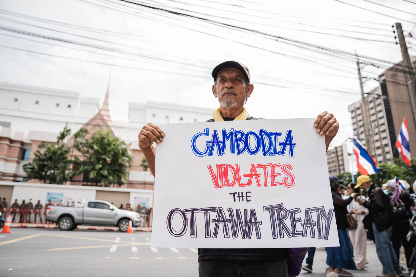 Des manifestants se sont réunis devant l’Ambassade Royale du Cambodge à Bangkok pour dénoncer l’usage présumé de mines antipersonnel récemment posées par les forces cambodgiennes le long de la frontière thaïlando-cambodgienne, notamment dans la région de Chong Bok, dans la province d’Ubon Ratchathani. Cette contestation fait suite à un incident survenu le 16 juillet, au cours duquel trois soldats thaïlandais ont été blessés, l’un d’entre eux grièvement, après avoir marché sur des mines lors d’une patrouille.