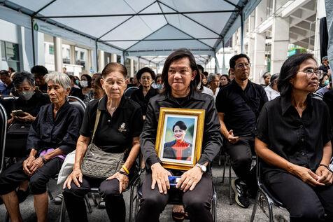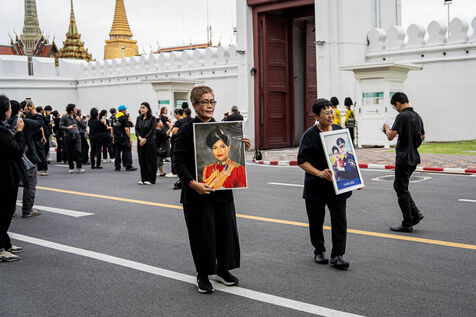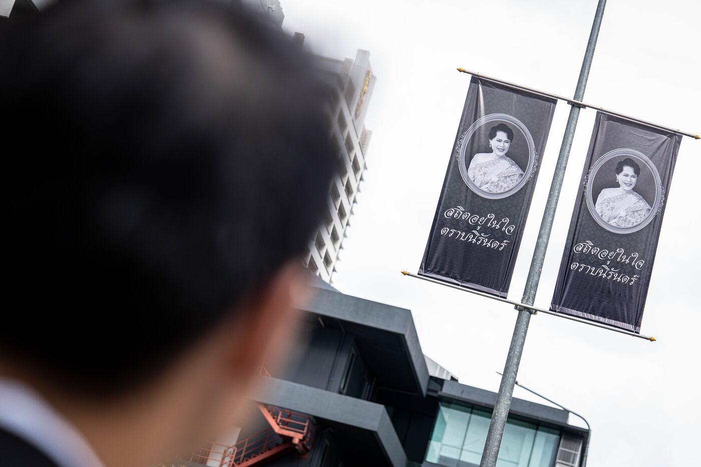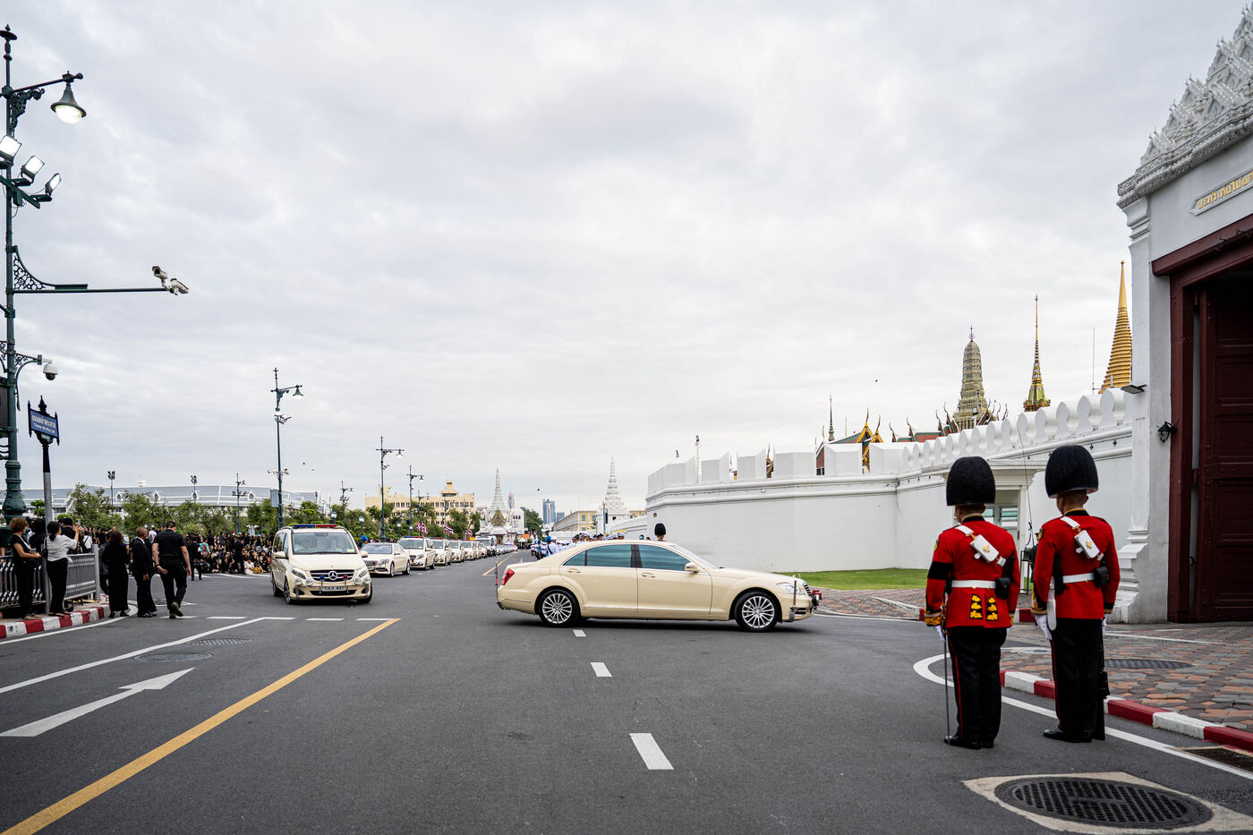 Bangkok, 26 octobre 2025, Le cortège royal transportant la défunte reine Sirikit, Reine Mère de Thaïlande, a quitté l’hôpital King Chulalongkorn Memorial à 16h pour se rendre au Grand Palais, empruntant les avenues Rama IV, Phyathai et Ratchadamnoen. Des milliers de personnes se sont rassemblées le long du parcours pour lui rendre un dernier hommage. La Reine Sirikit est décédée le 24 octobre 2025 à l’âge de 93 ans.