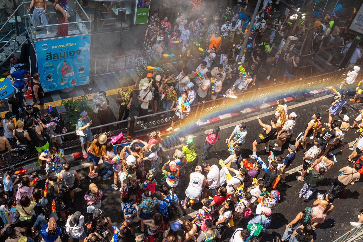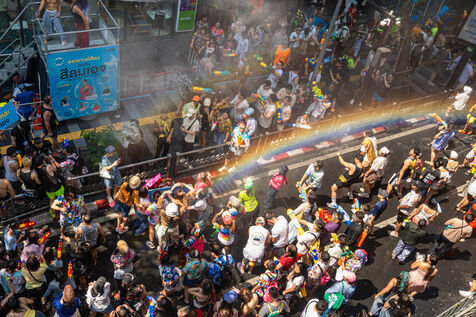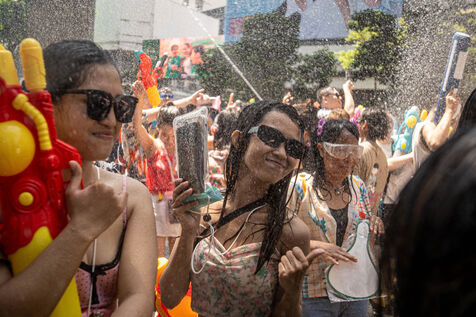 Over time, these traditions have expanded into a vibrant, large-scale public celebration. In the heart of Bangkok, Silom Road transforms into a lively pedestrian zone, where thousands gather to take part in joyful water fights, music, and shared moments of celebration. Water becomes both a playful element and a cultural symbol—washing away the past and welcoming a fresh start.