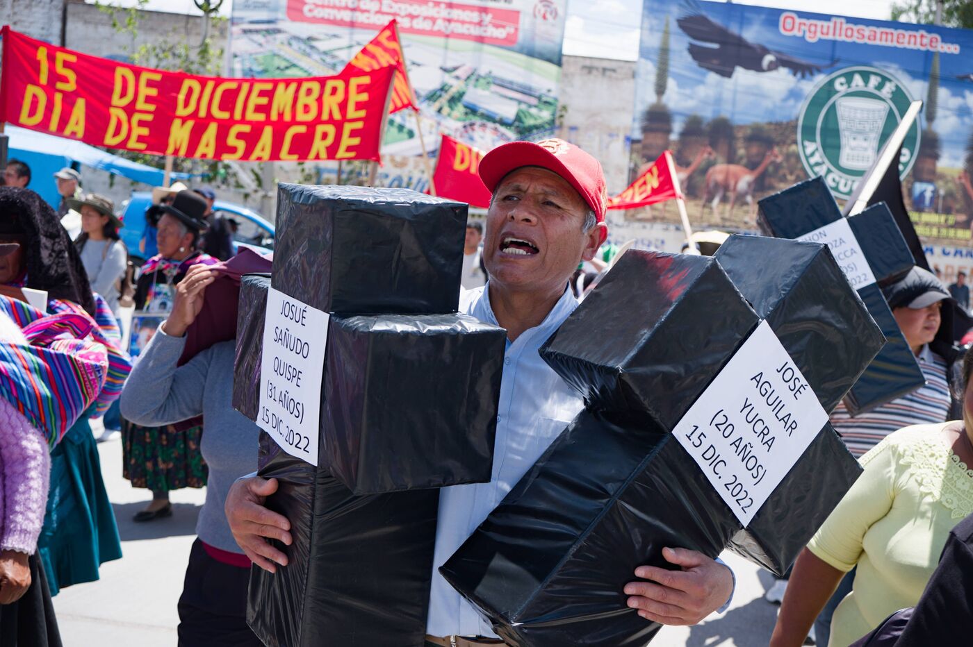 Le 15 décembre 2022, à Ayacucho, une manifestation tournait au désastre. Après une tentative pour pénétrer sur la piste de l'aéroport par certains manifestants, la police et l'armée interviennent. Dix personnes trouveront la mort ce jour là, tués par les armes de guerre de l'armée péruvienne et plus de 60 personnes sont blessées. Entre Décembre 2022 et Janvier 2023, on dénombre 49 victimes civiles au niveau national Ce drame ravive alors la mémoire douloureuse du Conflit Interne Péruvien. A l'époque, en plein conflit contre la guérilla du Sentier Lumineux, la caserne militaire d'Ayacucho « Los cabitos » était devenue un centre de torture dans lequel beaucoup sont morts ou disparus. .