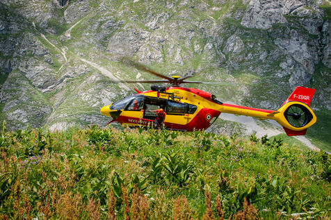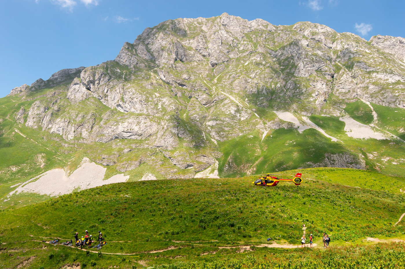 Rescue of a mountain runner by a civil security helicopter in the Chablais massif (Alps).