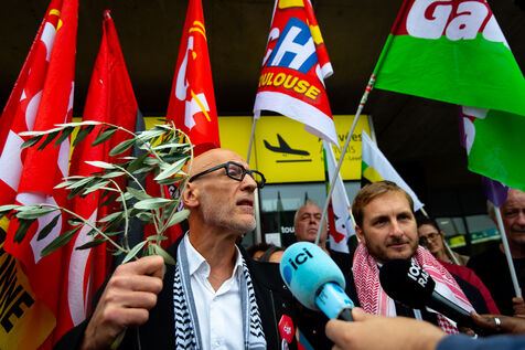 Member of Parliament François Piquemal, CGT31 Secretary General Cédric Caubère, and emergency physician Khaled Benboutrif arrived in Toulouse on October 9 after several days of detention in Israel. On the night of October 1, the Global Sumud Flotilla en route to Gaza was illegally intercepted by the Israeli army in international waters, and several of its activists were arrested.