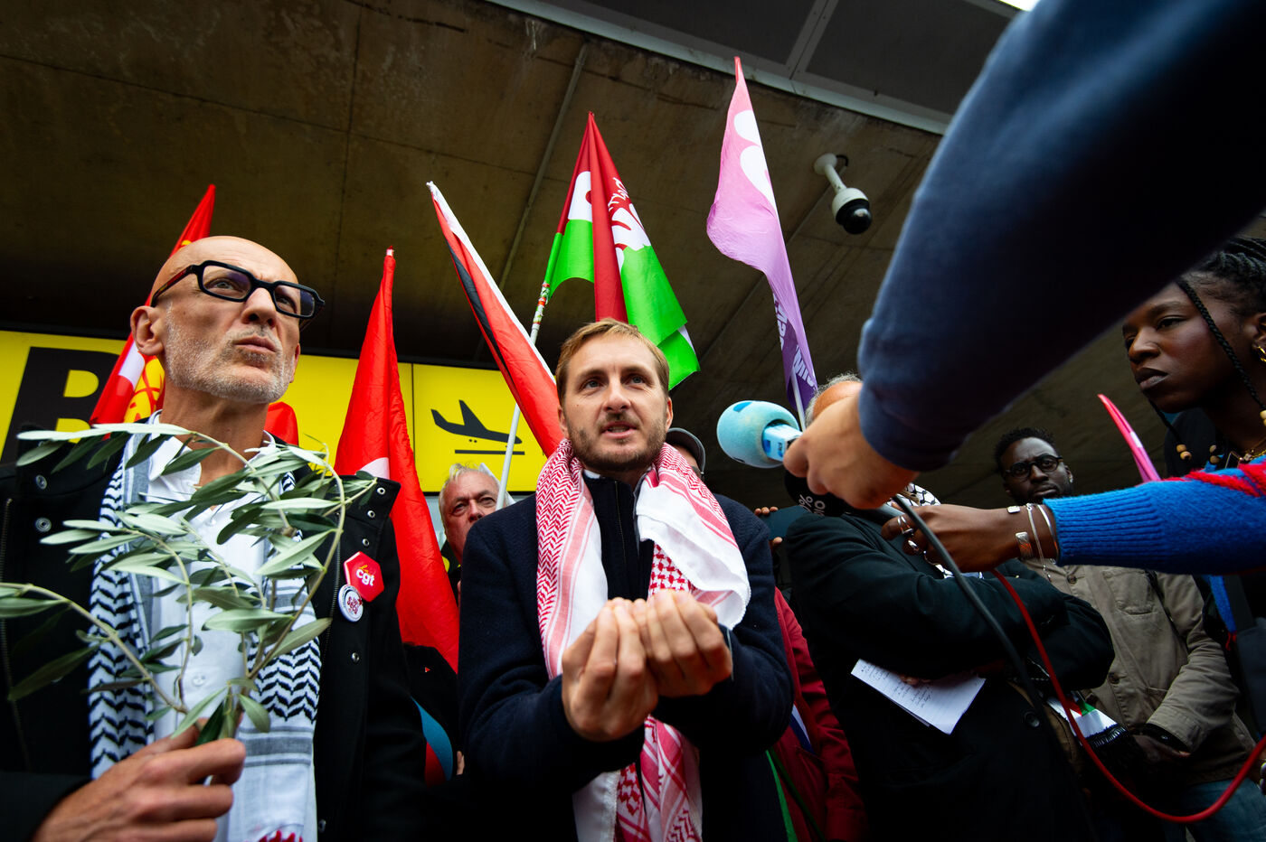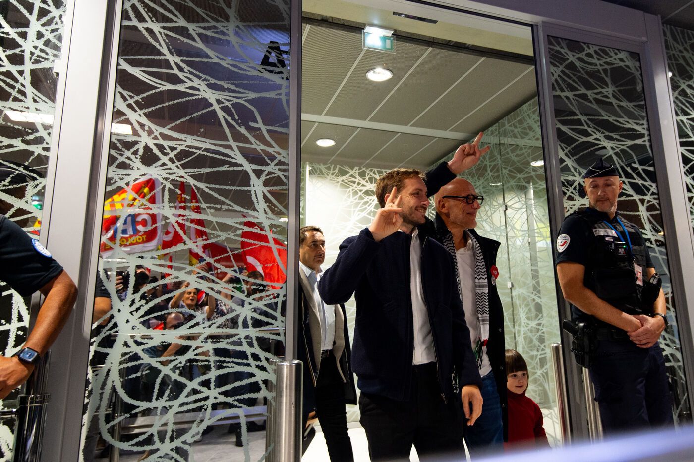 Le député François Piquemal, le secrétaire général de la CGT31 Cédric Caubère et le médecin urgentiste Khaled Benboutrif sont arrivés à Toulouse le 9 octobre après plusieurs jours de détention en Israël. Dans la nuit du 1er octobre, la Global Sumud Flotilla en route pour Gaza était interceptée illégalement par l'armée israélienne dans les eaux internationales, et plusieurs de ses militants arrêtés.