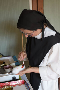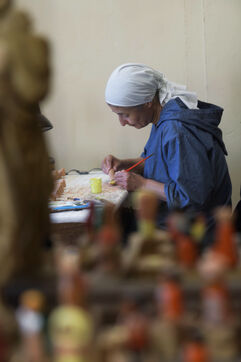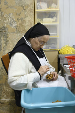 The community of Sainte-Marie du Rivet Abbey brings together fourteen Trappistine nuns of different origins and, for some, of different nationalities. Faithful to the rule of Saint Benoit "prayer and work", they pray seven times a day with a first office at 4:30 am (Vigils, early morning office) and work for monastic craftsmanship of recognized quality. Thus, since manual labor is fundamental in Cistercian spirituality and monasteries live from their small businesses, a task is assigned to each nun of the abbey. Some nuns make biscuits (cakes, shortbread, macaroons) others santons, candles and painted silk scarves.