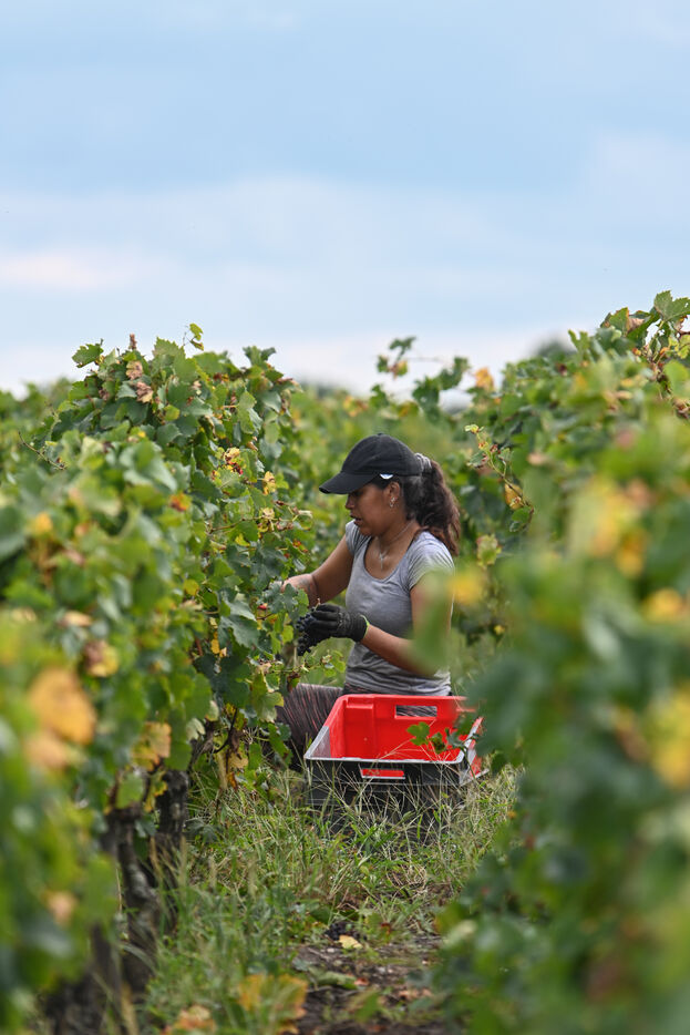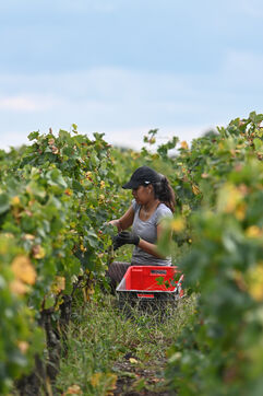Les raisins sont récoltés manuellement dans de petites cagettes pour une préservation optimale des baies, puis tries et égrappés manuellement avant de tomber par gravité dans les cuves pour une vinification parcellaire extrêmement précise.