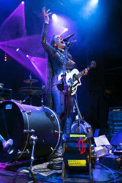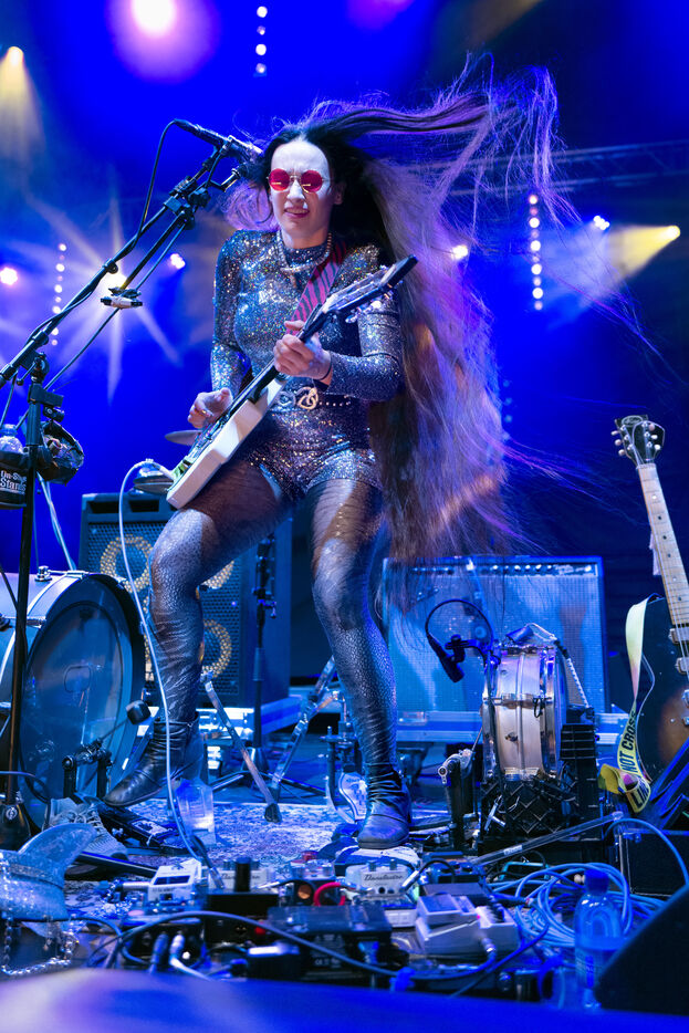 It seems to be in the air to hit the road in the form of a one-woman band - or rather a no-man band, those mythical ones that follow the trail of the Mississippi blues. The general idea is to perform solo on the streets and on stage, singing and playing guitar, drums, sometimes harmonica, all together. The instruments and sound system have to be light and portable for travel. We heard three one-woman bands at the Blues Rules Crissier Festival 2023, Rachel Ammons (US), Elli de Mon (IT) and Ghalia Volt (BE). They have strong personalities, with music ranging from blues to rock, metal and country.