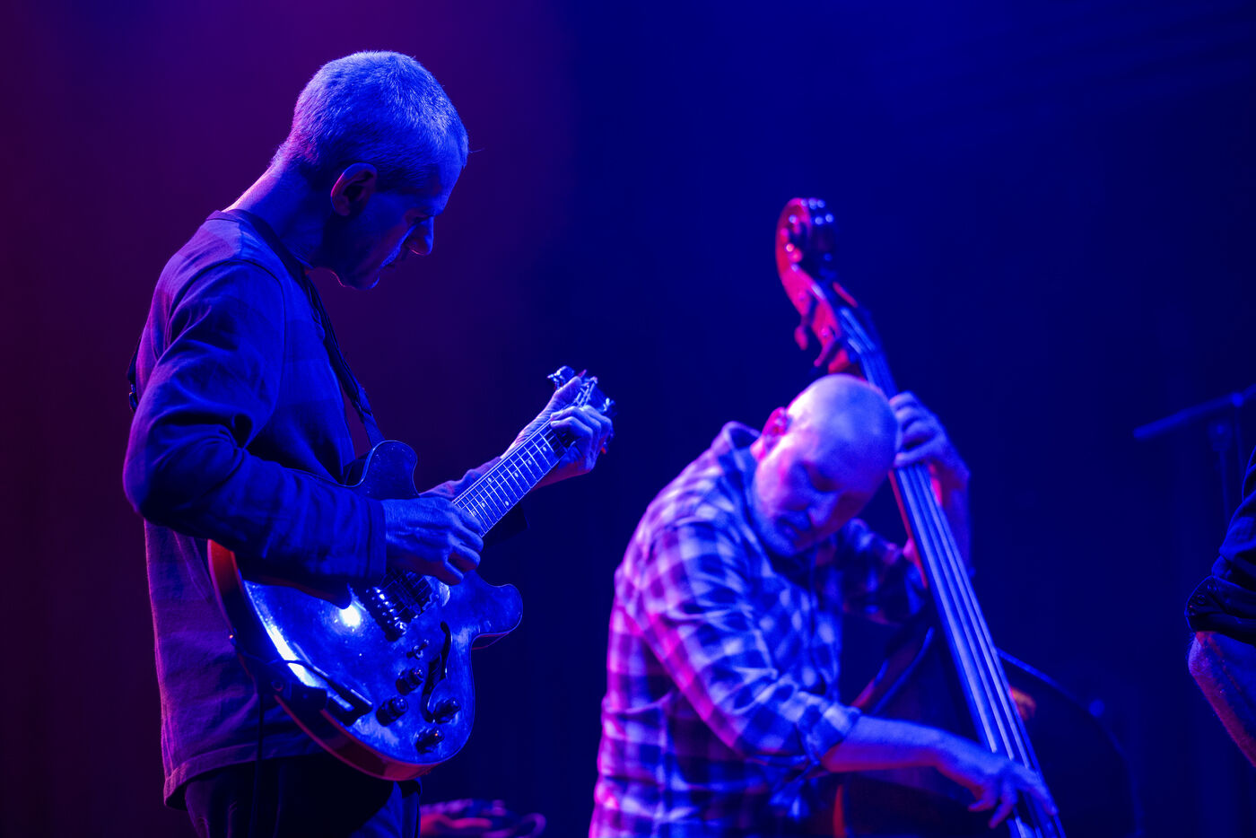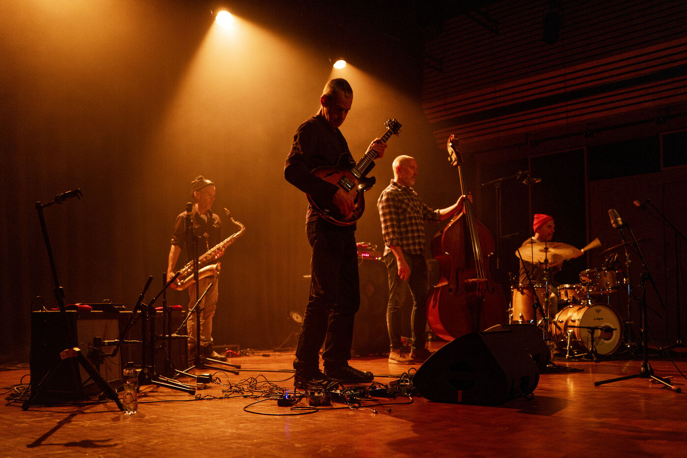 Internationally known as a trio, the New York band The Bad Plus has reformed as a 4tet, without piano but with guitar and saxophone : founders Reid Anderson (bass) and Dave King (drms) with Ben Monder (gtr) and Chris Speed (sax). The Bad Plus performed at the JazzOnzePlus Festival 2023.