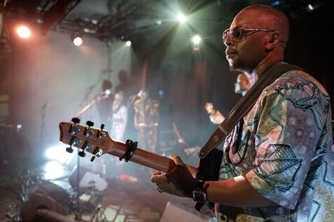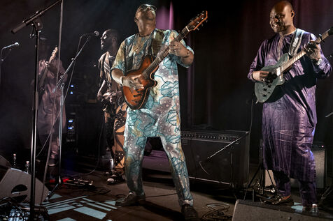 The second child of the legendary Malian musician Ali Farka Touré, the guitarist, singer and composer Vieux Farka Touré decided as a teenager to become a musician himself, which was not without difficulties in his Tuareg warrior tribe. His latest album, simply titled Ali, is a tribute to his father's compositions and spirit. Vieux Farka Touré performed in 2024 at the jazz club Les Jumeaux with Modibo Mariko (bass, voc), Souleymane Kane (oerc, voc), Adama Koné (drms, voc), Samba Diabaté (gtr) and Ousmane Dagno (ngoni).