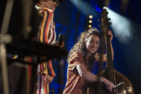 Dee Dee Bridgewater entered the world of jazz 50 years ago as a solo singer in the Thad Jones - Mel Lewis Orchestra, and went on to enjoy a long career of extraordinary collaborations. We find her after the pandemic at the Cully Jazz Festival 2022 with a 6tet of young Italian musicians, with a female drum and bass rhythm section: Claudio Filippini (pno), Mirco Rubegni (tp), Michele Polga (sax), Rosa Brunello (bass) and Evita Polidoro (drms). For her, beyond jazz, soul, R&B and music from the guts are queens.