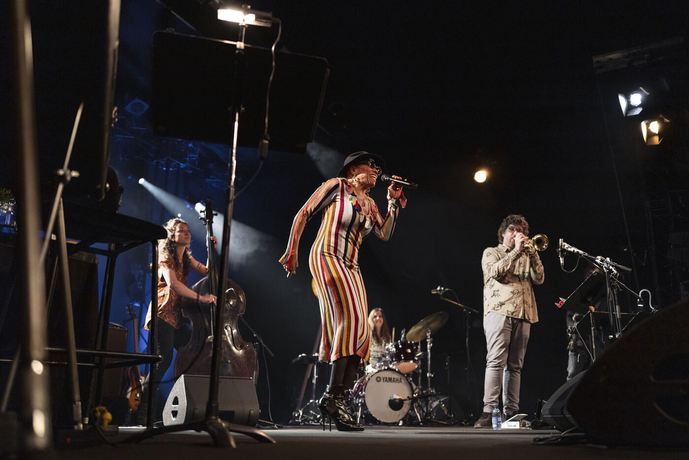 Dee Dee Bridgewater est entrée par la grande porte dans le monde du jazz il y a 50 ans comme chanteuse soliste du Thad Jones- Mel Lewis Orchestra, pour poursuivre avec une longue carrière de collaborations exceptionnelles. Nous la retrouvons après la pandémie au Cully Jazz Festival 2022 avec un 6tet de jeunes musiciens italiens avec une section rythmique féminine basse et batterie, Claudio Filippini (pno), Mirco Rubegni (tp), Michele Polga (sax), Rosa Brunello (bass) et Evita Polidoro (drms). Pour elle, au-delà du jazz, la soul, le R&B et la musique des tripes sont reines.