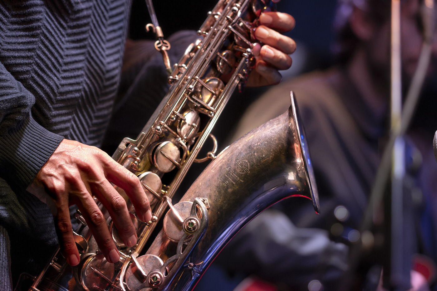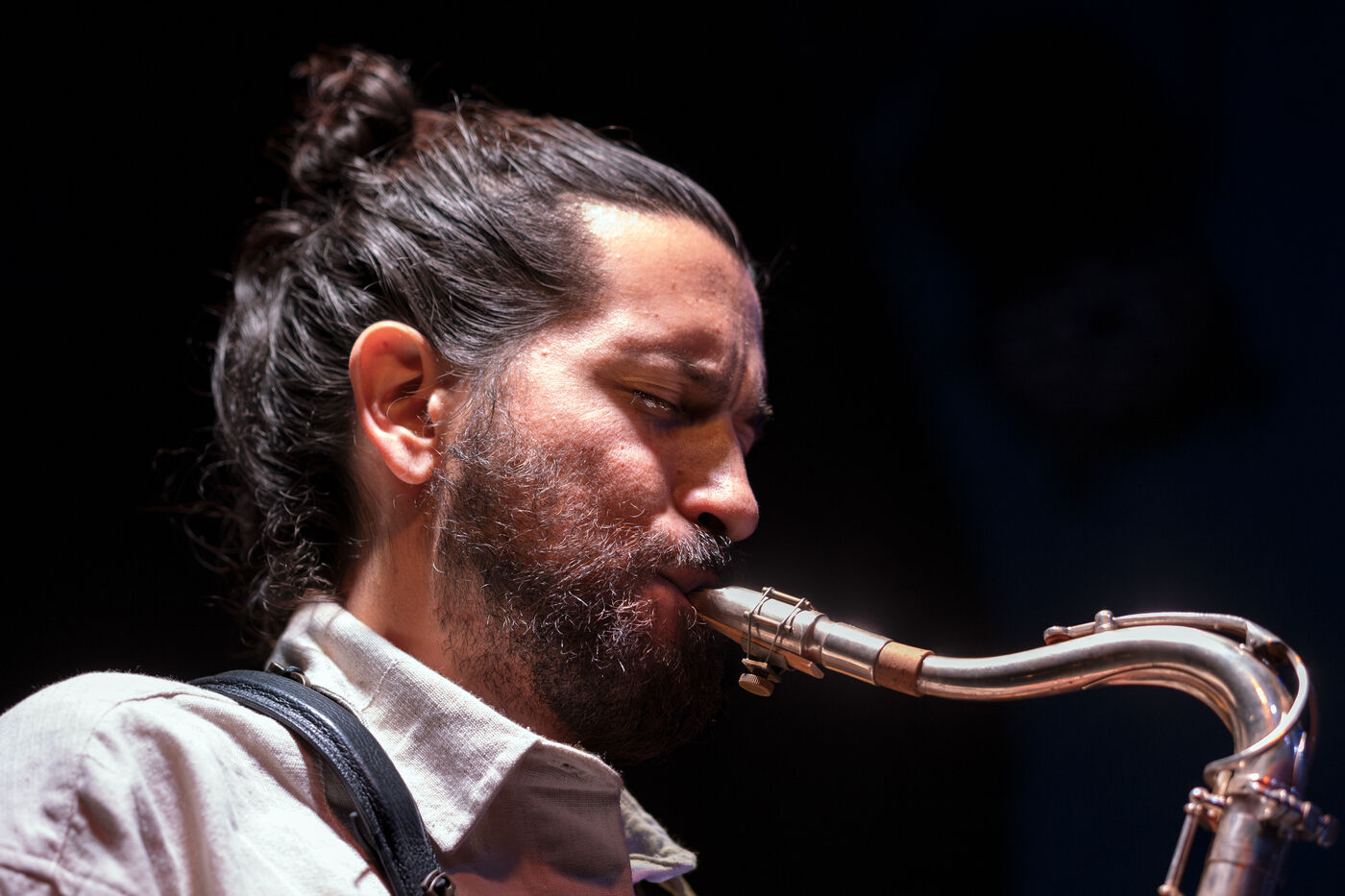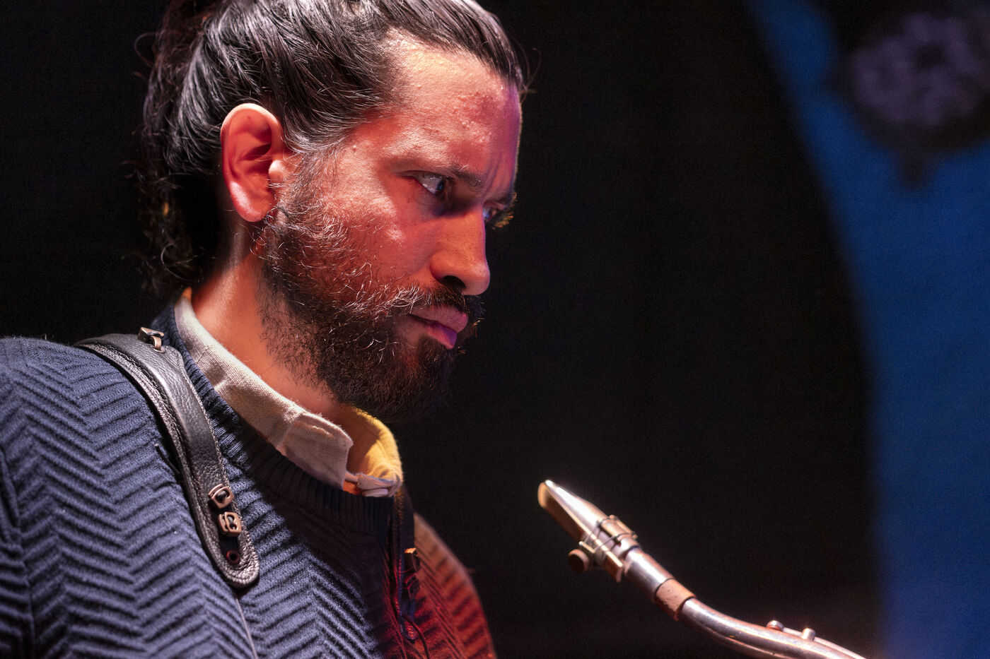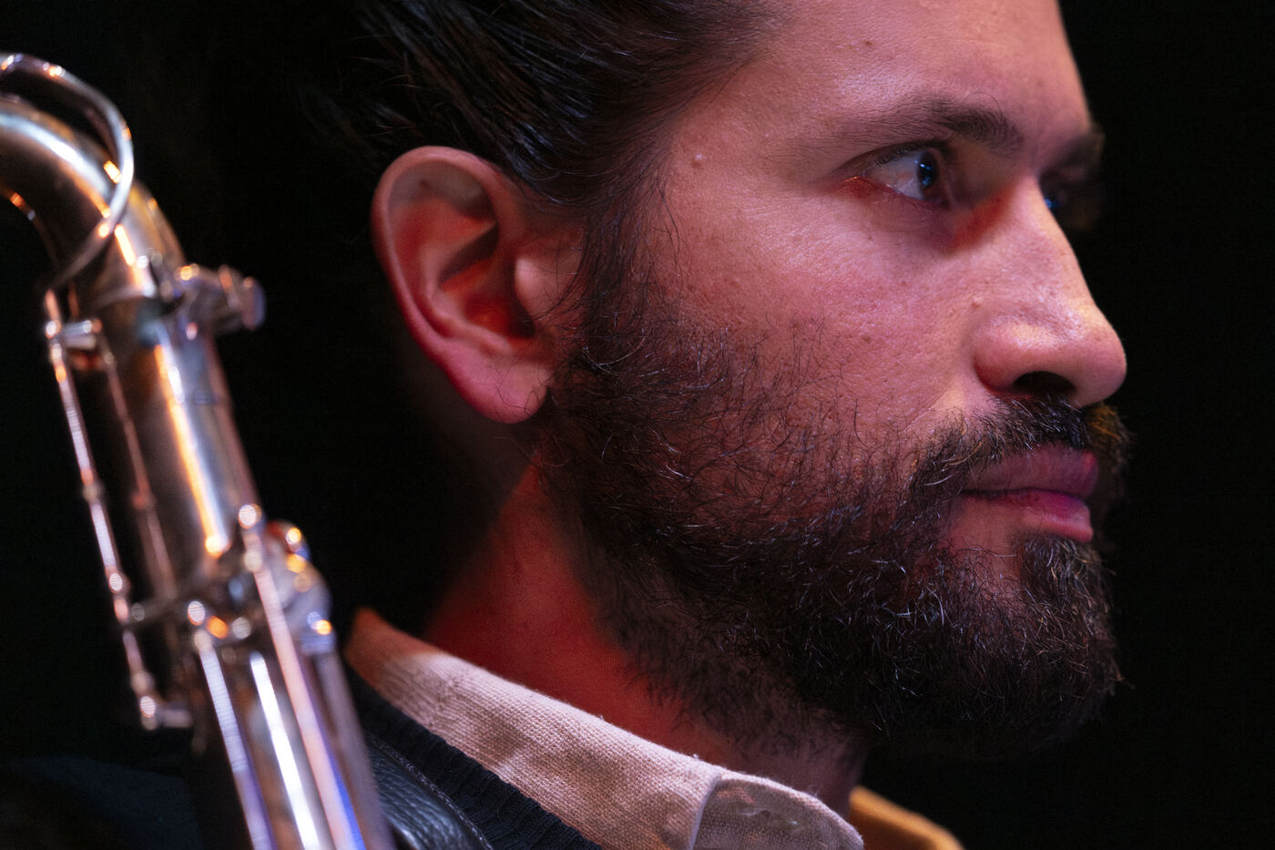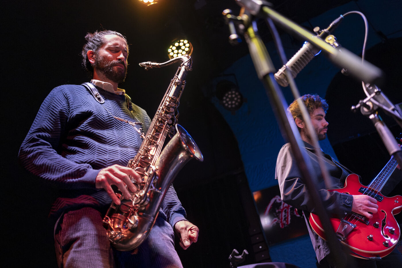 Ganesh Geymeier, winner of the 2018 Swiss Music Prize, bears the name of an Indian god of healing, an elephant with a nasal appendage that looks like his tenor saxophone. In December 2023, he performed his album L'Orage in a 4tet at Club Chorus, with Robin Girod (gtr), Fabien Iannone (bass) and Nelson Schaer (drms); Somewhere in the clouds, the music of L'Orage combines rhythms and polyrhythms with strong spiritual melodies.