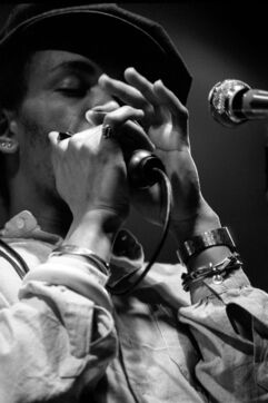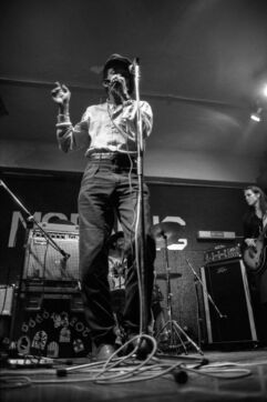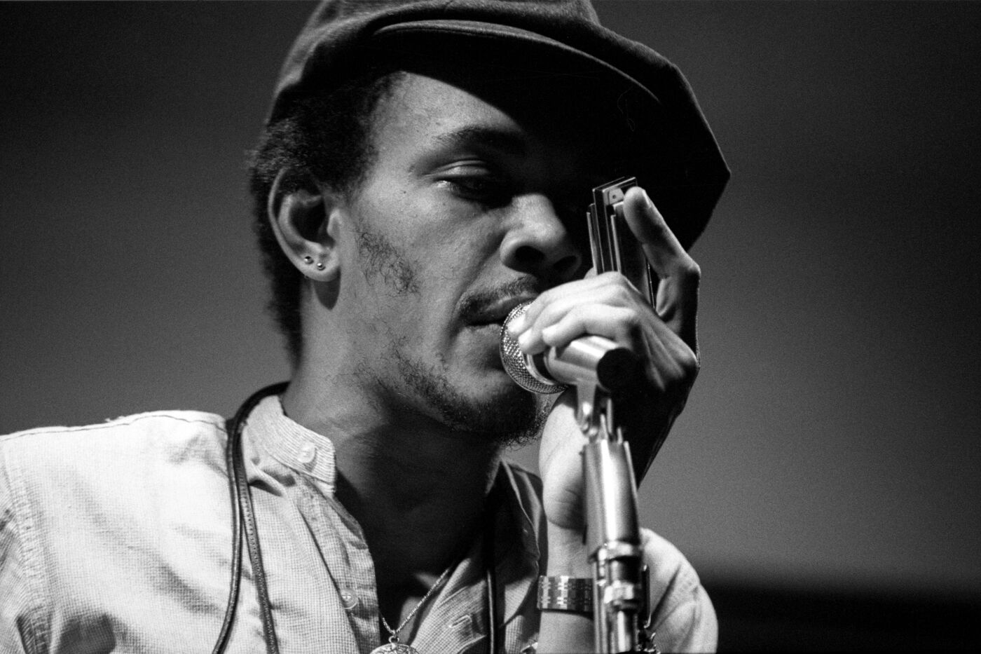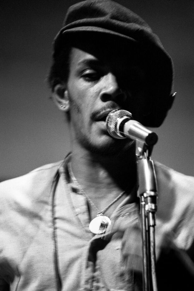 Afro-American harmonica player Sugar Blue in concert with his band at the New Morning jazz club in Geneva, Switzerland, in March 1981 (date unknown). Sugar Blue studied the blues in Chicago with Muddy Waters, Johnny Shines and Lousiana Red. He moved to France in the late 1970s on the advice of Memphis Slim, who had settled in Paris. He is best known for playing the harmonica intro to Miss You on the Rolling Stones' album Some Girls (1978).
